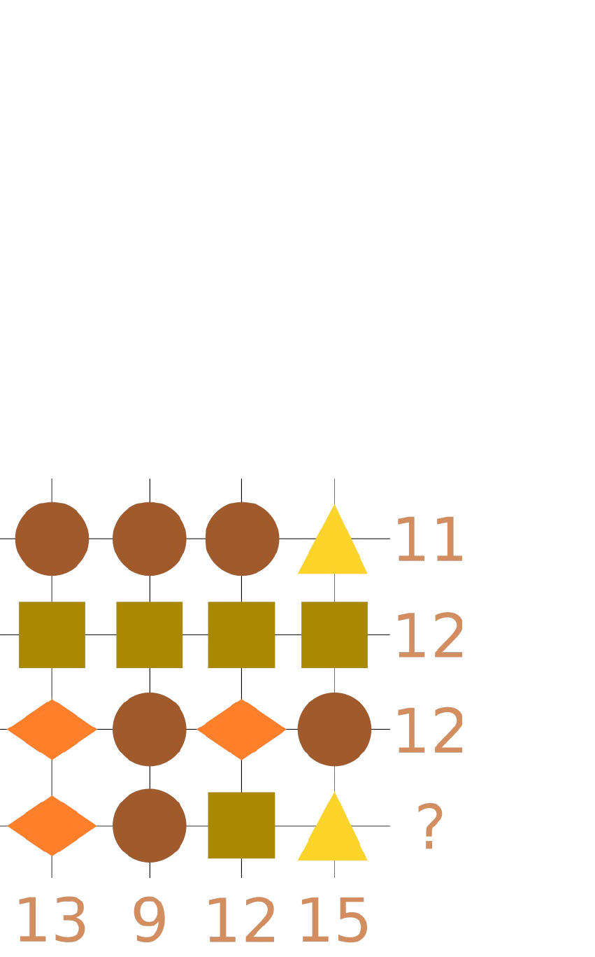 ATIVIDADES – 3° ano 04 E. E. Professora Marlene Carmo DISCPLINA: Linguagem matemática na construção da cidadania PROFESSORA: Vanderléia Ferreira Redes sociais, desafios com raciocínio, representações e álgebra. 1° desafio: Neste desafio, observe valores em linhas e em colunas que sugerem somas das formas geométricas e cada uma delas com um valor específico. Vamos apresentar alguns procedimentos para chegar à resposta deste desafio. A intenção é incentivar diferentes formas de pensar e lidar sobre o mesmo problema e ainda, de transitar entre diferentes áreas da matemática.