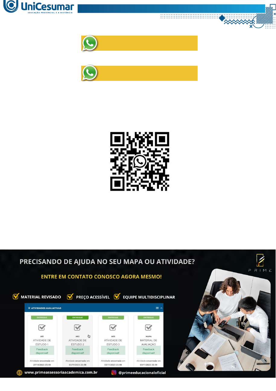 (99) 98525-8486 (99) 98525-8486 Olá, estudante! Somos a Prime Educacional e iremos te ajudar nessa atividade! MAPA - BEDU - MUSCULAÇÃO E EXERCÍCIOS RESISTIDOS - 51/2024 O músculo estriado esquelético é responsável pela movimentação do corpo humano e pela produção de força. A respeito da produção de força, ele pode manifestar diferentes tipos de força, a depender do trabalho muscular realizado. Essas manifestações podem ser na forma de força máxima, resistência de força e potência muscular (força explosiva), ou ainda, a hipertrofia muscular, que não necessariamente está ligada à força, mas ao volume muscular ocasionado por ela. Fonte: OLIVEIRA, D. V. Musculação e exercícios resistidos. Maringá: UniCesumar, 2021. Uma vez que é fundamental que o profissional de educação física compreenda as diferentes manifestações da força e saiba como estimular cada uma delas, nesta atividade MAPA suponha que você está estagiando em uma academia, e o professor responsável pela elaboração dos treinos dos alunos da musculação lhe trouxe 2 perfis de alunos diferentes. Você deverá analisar esses perfis e responder perguntas sobre eles. Estes perfis e questões estão descritos no MODELO DE MAPA – MUSCULAÇÃO E EXERCÍCIOS RESISTIDOS. Assim, siga as orientações a seguir: Orientações para a realização da atividade - Faça o download do arquivo MODELO DE MAPA – MUSCULAÇÃO E EXERCÍCIOS RESISTIDOS FÍSICA, que se encontra no Material da Disciplina. - Leia atentamente todas as informações e tire suas dúvidas com o professor mediador antes de entregar sua atividade. - Siga todas as orientações contidas no MODELO DE MAPA – MUSCULAÇÃO E EXERCÍCIOS RESISTIDOS. - Utilize o livro (PDF) da disciplina como principal fonte de apoio. - Antes de entregar a atividade, confira se o arquivo está correto (poderá ser entregue o arquivo em formato Word ou PDF). Orientações gerais - Muito importante! Você deverá entregar essa atividade, apenas, por meio do MODELO DE MAPA – MUSCULAÇÃO E EXERCÍCIOS RESISTIDOS. - Utilize o livro (PDF) da disciplina como principal fonte de apoio. - Cópias parcial ou total serão zeradas. - Todas as atividades do curso são avaliadas conforme o que está sendo solicitado e as instruções fornecidas. Assim, o descumprimento dessas orientações sempre acarreta algum desconto na nota. *Todas as informações a seguir estão descritas e organizadas no MODELO DE MAPA – MUSCULAÇÃO E EXERCÍCIOS RESISTIDOS. PERFIL 1 Aluno(a): Matheus Sexo: masculino Idade: 28 Especificações: Matheus treina musculação há 2 ano, pratica com o objetivo estético e busca de hipertrofia muscular. Em seu novo período de treino, Matheus será submetido a sessões de treinamento para estimular sua força máxima. Objetivo do treino resistido: aumentar a produção de força máxima. Nível de experiência na musculação: avançado. Alguns dados da avaliação da força muscular: - Teste submáximo para predizer o 1-RM no Leg Press. Peso utilizado no teste: 300 kg. Número de repetições: 5. - Teste submáximo para predizer o 1-RM no Supino Reto. Peso utilizado no teste: 110 kg. Número de repetições: 3. PERFIL 2 Aluno(a): Aline Sexo: feminino Idade: 63 Especificações: Aline têm osteoporose e por recomendação médica está iniciando o treino na musculação. Além desta condição, Aline não apresenta nenhuma outra morbidade que lhe impeça de realizar o exercício físico. Objetivo do treino resistido: melhorar sua condição de saúde. Nível de experiência na musculação: iniciante. Alguns dados da avaliação da força muscular: - Teste submáximo para predizer o 1-RM no Leg Press. Peso utilizado no teste: 40 kg. Número de repetições: 10. - Teste submáximo para predizer o 1-RM no Puxador Frente. Peso utilizado no teste: 20 kg. Número de repetições: 8. Com base nesse entendimento e na análise do perfil dos dois indivíduos descritos anteriormente, responda às questões que seguem. Antes de prosseguir, muita atenção: saiba que é recomendado que o treinamento resistido, na musculação, seja prescrito de acordo com objetivos e necessidades de cada pessoa, assim como que seja elaborado com base na avaliação das cargas máximas ou submáximas (utilizando percentuais) de força. QUESTÃO 1 Analisando o objetivo de Matheus (Perfil 1), o treinamento resistido será destinado ao desenvolvimento de qual tipo de força? QUESTÃO 2 Com base nas informações sobre Matheus (Perfil 1), calcule a carga predita de 1-RM para os exercícios Leg Press e Supino Reto (utilize a fórmula de Prestes et al. (2015)). Descreva todos os cálculos completos. QUESTÃO 3 Considerando as especificações, o nível de experiência, assim como o objetivo de Matheus (Perfil 1), prescreva as variáveis intensidade e volume, descrevendo a carga e as repetições, para cada um dos exercícios. Para responder a essa questão, preencha a ficha de musculação seguindo as informações a seguir: - Você planejará parte de uma sessão de treino, composta de 2 exercícios: Leg Press e Supino Reto. - Intensidade: a carga será prescrita de acordo com o resultado do 1-RM predito; ela deve ser definida dentro da faixa percentual recomenda para o desenvolvimento do tipo de força. - Volume: as repetições devem ser definidas dentro da faixa recomenda para o desenvolvimento do tipo de força (não serão admitidas repetições até a falha). - Descanso: o tempo de descanso será definido dentro da faixa percentual recomendada para o desenvolvimento do tipo de força. Ficha de Musculação Aluno: Matheus Leg Press Supino Reto % de 1RM: Carga com base no % (kg): Número de séries: Número de repetições: Descanso entre séries: QUESTÃO 4 Com base nas informações sobre Aline (Perfil 2), calcule a carga predita de 1-RM para os exercícios Leg Press e Puxador Frente (utilize a fórmula de Prestes et al. (2015)). Descreva todos os cálculos completos. QUEST