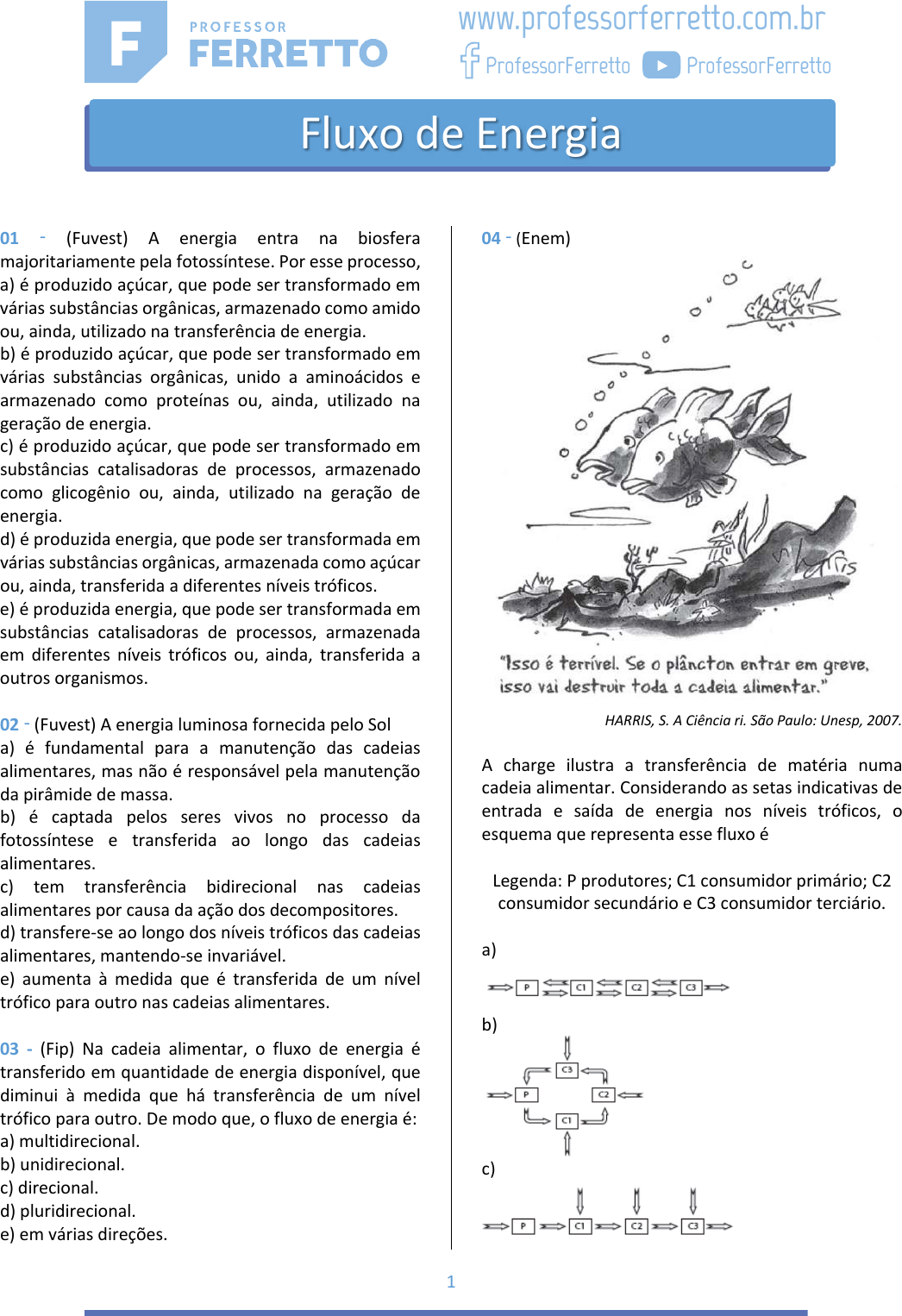 03 - (Fip) Na cadeia alimentar, o fluxo de energia é