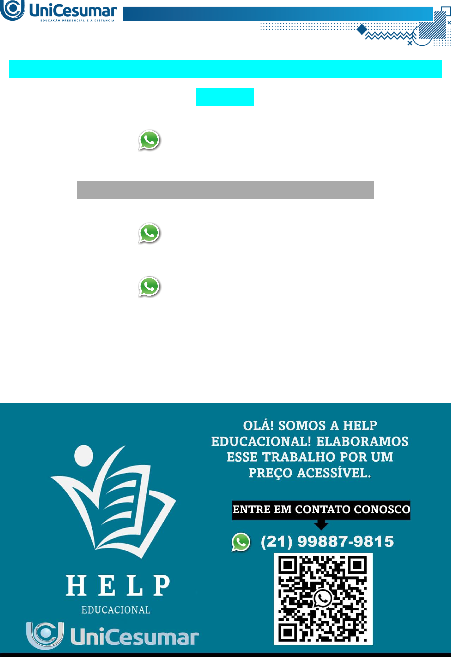 MAPA – LOG - GESTÃO DA CADEIA DE SUPRIMENTOS - 51/2024 (21) 99887-9815 ASSESSORIA NOS SEUS TRABALHOS (21) 99887-9815 (21) 99887-9815 Análise de Cadeia de Suprimentos - Estudo de Caso O objetivo desta atividade é permitir que os estudantes realizem uma análise individual da cadeia de suprimentos de uma empresa específica, aplicando, conceitos aprendidos em nossas aulas ao vivo, conceituais e estudo de caso e desenvolvendo habilidades críticas de avaliação e análise. A cadeia de suprimentos, também conhecida como supply chain, é um sistema integrado que engloba todas as etapas envolvidas na produção e distribuição de um produto, desde a obtenção da matéria-prima até a entrega final ao consumidor. Essa cadeia envolve diversos processos, organizações, pessoas, atividades logísticas e informações, sendo essencial para o funcionamento eficiente de uma empresa, por isso, é importante conhecer as suas especificidades para entender o seu funcionamento e também os desafios. Assim, vamos para a atividade. Elaborado pelo professor, 2024 Atividade: 1- Escolha da Empresa: Cada estudante escolherá uma empresa real para analisar sua cadeia de suprimentos. Pode ser uma empresa conhecida globalmente ou uma empresa local, desde que haja informações disponíveis publicamente sobre sua cadeia de suprimentos.(cite o nome, o segmento e a cidade da empresa escolhida) 2- Coleta de Informações: Os estudantes devem coletar informações sobre a cadeia de suprimentos da empresa escolhida. Isso pode incluir fornecedores, processos de produção, logística, distribuição e estratégias de gestão de estoque. Não precisa ser de todos os itens, somente as informações que você conseguir obter.(os itens devem ser em tópicos e o texto com as informações na sequência) 3- Identificação de Desafios: Analise os desafios enfrentados pela empresa em sua cadeia de suprimentos. Isso pode envolver questões como atrasos na entrega, custos elevados, riscos ambientais, grau de satisfação dos clientes entre outras inúmeras possibilidades.(identifique pelo menos 2 desafios e uma breve descrição de cada) 4- Avaliação de Eficiência: Avalie a eficiência da cadeia de suprimentos da empresa escolhida. Considere fatores como tempo de ciclo, custos totais, flexibilidade e satisfação do cliente.(no mínimo 2 fatores e uma breve descrição de cada) 5- Propostas de Melhoria: Com base na análise realizada, proponha estratégias de melhoria para a cadeia de suprimentos da empresa. Isso pode incluir recomendações para otimização de processos, redução de custos, implementação de tecnologias ou práticas mais sustentáveis.(no mínimo 3 propostas de melhorias e uma breve descrição de cada estratégia) Orientações - Utilize o Formulário Padrão para responder sua atividade, o qual se encontra no ícone Materiais > Material da Disciplina. - Evidências de cópias de materiais, incluindo de outros acadêmicos, sem as devidas referências, serão inquestionavelmente zeradas. - As citações e referências, mesmo que do livro da disciplina, devem ser realizadas conforme normas da Instituição de Ensino. Em caso de dúvidas, encaminhe uma mensagem ao seu professor mediador. Bons estudos! OLÁ! SOMOS A HELP EDUCACIONAL! ELABORAMOS ESSE TRABALHO POR UM PREÇO ACESSÍVEL. ENTRE EM CONTATO CONOSCO (21) 99887-9815