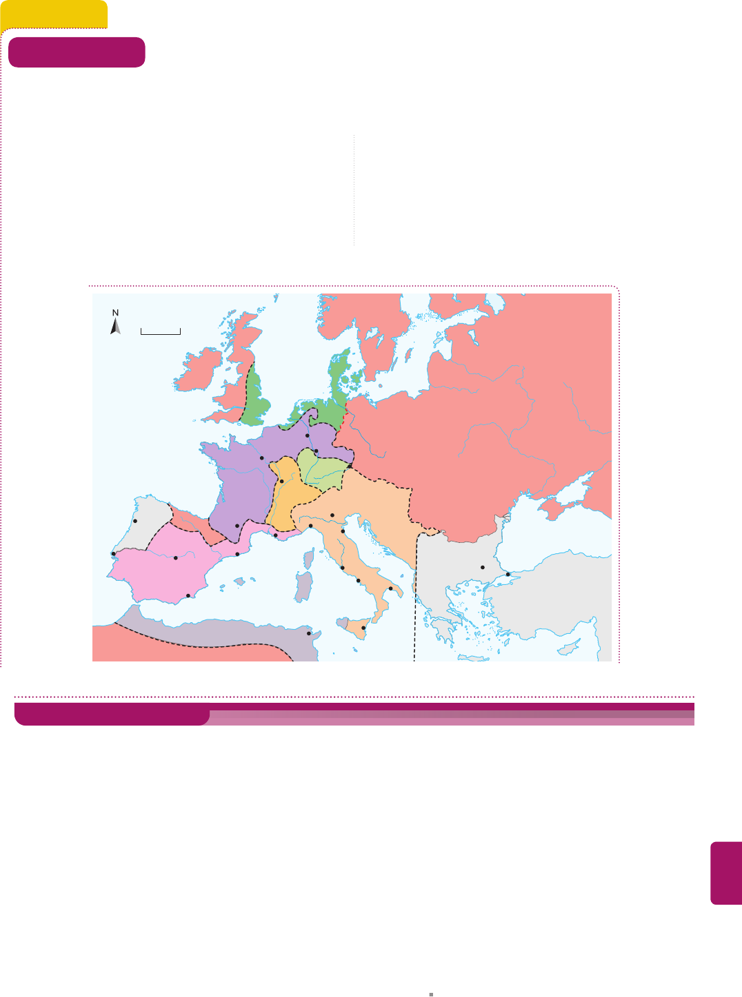 FR EN TE 2 AULA 12 Idade Média: o Reino Franco e o Império Carolíngio 259 FRENTE 2 AULA 12 Idade Média: o Reino Franco e o Império Carolíngio Esta também é uma preparação para estudo do mundo feudal. Assim, há duas questões básicas a enfatizar aqui: os vínculos entre os francos e a Igreja (fundamental para a consolidação do poder da Igreja medieval) e a fixação das relações de suserania e vassalagem, com o Império de Carlos Magno. Atente aos seguintes temas: y a aliança entre Clóvis e a Igreja Católica; y Carlos Martel e a vitória sobre os árabes; y a formação da Dinastia Carolíngia; y organização do Império Carolíngio; y Renascimento Carolíngio; y Tratado de Verdun e as origens do Sacro Império. Os reinos bárbaros – século VI REINO DOS VÂNDALOS REINO DOS VISIGODOS REINO DOS SUEVOS Braga Rio ToledoLisboa Tejo Rio Ebro Cartagena Is. Baleares Barcelona Toulouse Rio Rio Sena Loire Paris REINO FRANCO Marselha Ri o Rio Pó I. Córsega I. Sardenha Roma I. Sicília Siracusa Tarento Cartago Nápoles Gênova Ravena Verona R ód an o Dijon ALAMANOS REINO DOS OSTROGODOS Gépidas Adrianópolis Constantinopla I. de Creta CHIPRE IMPÉRIO ROMANO DO ORIENTE Mar Negro EslavosTuríngios Ratisbona Calônia Worms Rio Saxões Anglo- -Saxões Mar do Norte Reno Rio Danúbio Rio Elba REINO DOS BURGÚNDIOS OCEANO ATLÂNTICO Mar Mediterrâneo Mar Báltico Rio Tig re 0 ESCALA 320 km 1 UEM 2017 O Império Carolíngio foi a maior expressão política da Alta Idade Média Ocidental. Sobre esse Império, assinale o que for correto. 01 Ao coroar Carlos Magno, o papa almejava estabelecer uma aliança política entre a Igreja Católica e o reino, assim como restaurar a unidade do mundo ocidental sob a autoridade de um imperador cristão. 02 Com o Renascimento Carolíngio, Carlos Magno instituiu um programa de valorização da cultura germânica e a proibição das manifestações culturais greco-romanas. 04 Devido ao seu vasto território, o Império Carolíngio organizava-se em unidades político-administrativas denomi- nadas marcas, administradas por marqueses; e condados, administrados por condes. 08 Objetivando expandir o território e implantar o cristianismo em outras regiões da Europa, Carlos Magno substituiu o emprego da força militar pela catequese e pela conversão pacífica dos povos pagãos, atitude que fez dele um dos principais monarcas pacifistas da Europa medieval. 16 Na inexistência de um Estado centralizado, os laços políticos entre o poder central (representado pelo imperador) e seus administradores regionais (representados pela aristocracia) passaram a ocorrer pelo juramento de fidelidade. Soma: Exercícios de sala MED_2021_L1_HIS_F2_LA.INDD / 24-09-2020 (17:38) / GISELE.BAPTISTA / PROVA FINAL MED_2021_L1_HIS_F2_LA.INDD / 24-09-2020 (17:38) / GISELE.BAPTISTA / PROVA FINAL HISTÓRIA AULA 12 Idade Média: o Reino Franco e o Império Carolíngio260 História • Livro 1 • Frente 2 • Capítulo 4 I. Leia as páginas de 196 a 200. II. Faça o exercício 2 da seção “Revisando”. III. Faça os exercícios propostos de 11 a 15. Guia de estudos 2 UEL 2013 Embora a ideia de transformação seja uma característica da modernidade, nos períodos anteriores, na Eu- ropa, ocorreram diversas mudanças nos campos político, econômico, científico e cultural. Pode-se afirmar que, com o declínio do Império Romano na Europa Ocidental, constituíram-se novas relações sociais entre os habitantes desses territórios, momento que foi denominado pelos historiadores como Período Medieval. Com relação a esse período, considere as afirmativas a seguir. I. Carlos Magno libertou o seu império do poderio papal por intermédio de alianças militares realizadas com a nas- cente nobreza mercantil de Veneza. II. Os camponeses possuíam o direito de deixar as terras em que trabalhavam e migrar para os burgos pelo acordo consuetudinário com os suseranos. III. Os chefes guerreiros comandavam seus seguidores no Comitatus por meio de juramentos de fidelidade. Os nobres também realizavam esse pacto entre si. IV. O grande medo da população era ocasionado pelas invasões de bárbaros, pelas epidemias e pela fome. A cren- ça em milagres se propagava rapidamente entre a população. Assinale a alternativa correta. A Somente as afirmativas I e II são corretas. B Somente as afirmativas I e IV são corretas. c Somente as afirmativas III e IV são corretas. D Somente as afirmativas I, II e III são corretas. E Somente as afirmativas II, III e IV são corretas. 3 UEMG 2016 http://descobrirmaishistoria.blogspot.com.br/2014_01_01_archive.html. Acesso em: 21/9/2015. http://descobrirmaishistoria.blogspot.com.br/2014_01_01_archive.html. Acesso em: 21 set. 2015. Durante a Idade Média, no ano de 570, nascia Maomé, conhecido por ser o profeta de Alá. Desde a sua morte até o século XXI, a crença em Alá tem sido difundida pela fé islâmica que é, até hoje, predominante no norte da África e na Península Arábica. Em 711, a expansão islâmica conquistara espaço na Europa Ocidental. Quase toda a Península Ibérica fica sob o poder do Califado. O que detém o avanço islâmico é A a resistência do império franco e o processo de reconquista ligado às monarquias locais fortemente influenciadas pelo cristianismo. B a proposta, dos grupos dirigentes das Monarquias Ibéricas, de associar os preceitos islâmicos aos valores cristãos, enfraquecendo assim as frentes de batalha. c a ação da Rússia em repressão aos islâmicos, formando uma frente combativa para manter as antigas monarquias ibéricas. D a formação de um Reino Cristão que unia todas as monarquias europeias para combater os invasores. MED_2021_L1_HIS_F2_LA.INDD / 24-09-2020 (17:38) / GISELE.BAPTISTA / PROVA FINAL MED_2021_L1_HIS_F2_LA.INDD / 24-09-2020 (17:38) / GISELE.BAPTISTA / PROVA FINAL Frente 2 - História Aula 12 - Idade Média: o Reino Franco e o Império Carolíngio