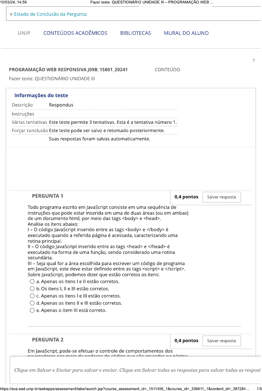 Perguntas dessa disciplina