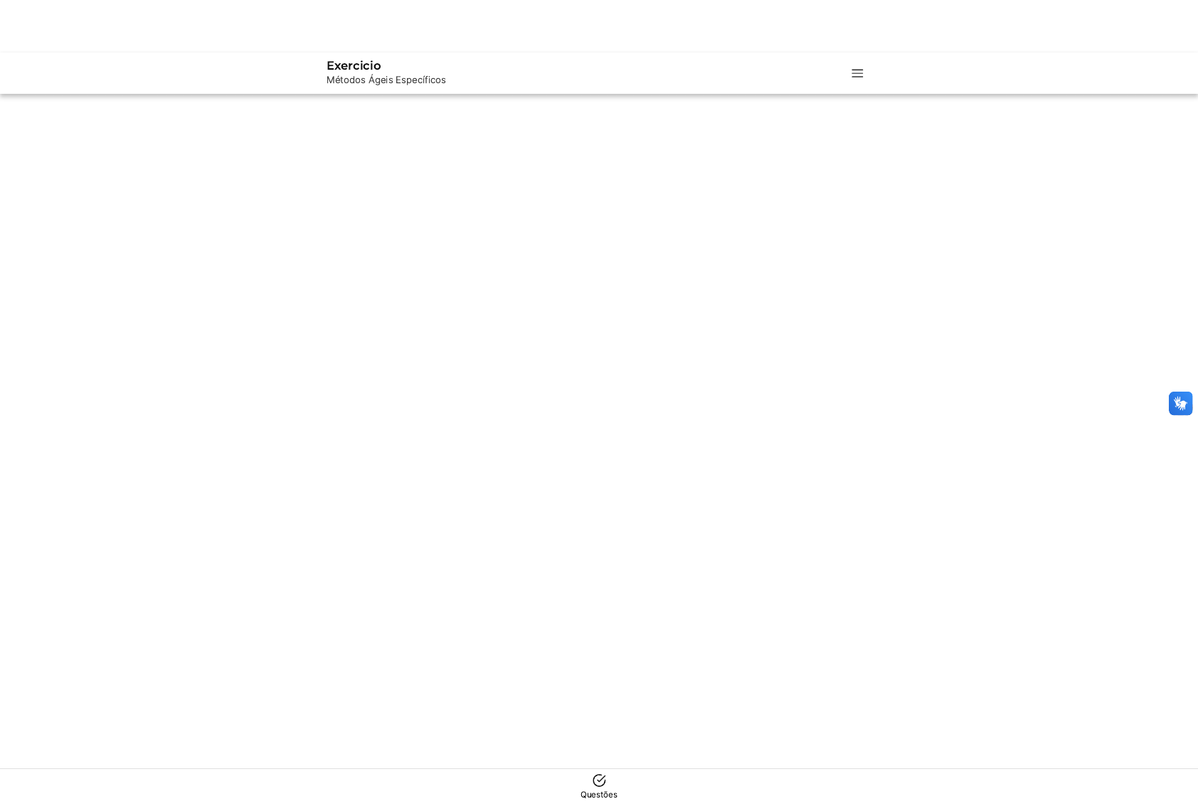 Questões Exercicio Métodos Ágeis Específicos Você acertou 10 de 10 questões Verifique o seu desempenho e continue treinando! Você pode refazer o exercício quantas vezes quiser. Verificar Desempenho A B C D E 1 Marcar para revisão Quais afirmativas abaixo NÃO são verdadeiras: I� Podemos combinar práticas de kanban e XP no fluxo de desenvolvimento de produtos de um time ágil. II� Kanban é apenas indicado para times de desenvolvimento de software. II� Agile coach é papel obrigatório quando se adota uma metodologia ágil. V� XP nasceu de uma necessidade de otimização de fluxo produtivo da indústria. I, III e IV I, II e IV I, II e III II e IV II, III e IV Resposta correta Parabéns, você selecionou a alternativa correta. Confira o gabarito comentado! Gabarito Comentado Gabarito: II, III e IV Justificativa: A primeira afirmação é verdadeira, pois é possível combinar as práticas de kanban com XP, aproveitando as características que cada um dos métodos oferece, como o uso do quadro kanban e fluxo puxado com TDD e programação em pares. A segunda afirmação é falsa, pois o método Kanban faz parte do sistema Toyota e, portanto, não é exclusivo para times de software. A terceira afirmação também é falsa, pois o Agile Coach não é um papel obrigatório para as organizações que adotam a metodologia ágil, geralmente é sugerido em contextos de múltiplos times trabalhando para a entrega de um produto ou solução. A quarta afirmação é falsa, pois XP �Extreme Programming) surgiu após um projeto crítico na Chrysler, que estava fadado ao fracasso, onde Ken Beck aplicou técnicas revolucionárias de engenharia de software para alcançar o sucesso, e não de uma necessidade de otimização de fluxo produtivo da indústria. 2 Marcar para revisão Acerca dos métodos ágeis, assinale a opção que completa corretamente a lacuna da sentença abaixo. _______________ é organizado por colunas que representam um fluxo de trabalho pelo qual passam itens ou tarefas desenvolvidas. É visual e as atividades ficarão explícitas a todos os membros de um time. A B C D E A B C D E Quadro Kanban Método Kanban Customer Kanban Kanban Kaizen Resposta correta Parabéns, você selecionou a alternativa correta. Confira o gabarito comentado! Gabarito Comentado O quadro Kanban é a resposta correta. Este é um instrumento visual que organiza o fluxo de trabalho em colunas, tornando as atividades explícitas para todos os membros de uma equipe. O método Kanban, por sua vez, é uma abordagem de gestão que utiliza o quadro Kanban como ferramenta para tornar o trabalho visível e impulsionar a melhoria contínua e a entrega de valor. O Customer Kanban, ou fluxo de ponta a ponta, também utiliza o quadro Kanban para tornar visível todo o trabalho desde a concepção de uma ideia até que seja desenvolvida e entregue ao cliente. Já o termo Kaizen refere-se à filosofia ou às práticas que incidem sobre a melhoria contínua, sejam elas grandes ou pequenas. 3 Marcar para revisão XP e Kanban são práticas de gerenciamento de projetos de software populares entre praticantes do desenvolvimento ágil. Um aspecto de divergência entre as duas práticas é: Processo incremental. Processo iterativo. Uso de quadro de tarefas. Representação do estágio de desenvolvimento de uma tarefa. Valorização de feedback. Resposta correta Parabéns, você selecionou a alternativa correta. Confira o gabarito comentado! Gabarito Comentado Gabarito: Processo iterativo. Justificativa: As práticas XP e Kanban compartilham muitos aspectos em comum como a entrega de pequenos pacotes de trabalho de forma incremental a representação do estágio de desenvolvimento de uma tarefa em um quadro de tarefas e a A B C D E A B C Justificativa: As práticas XP e Kanban compartilham muitos aspectos em comum, como a entrega de pequenos pacotes de trabalho de forma incremental, a representação do estágio de desenvolvimento de uma tarefa em um quadro de tarefas e a valorização do feedback. No entanto, uma diferença significativa entre as duas é a abordagem ao processo de desenvolvimento. Enquanto o XP utiliza um processo iterativo, com ciclos de desenvolvimento definidos, o Kanban segue um fluxo contínuo, sem a necessidade de iterações fixas. Portanto, o aspecto de divergência entre as duas práticas é o processo iterativo. 4 Marcar para revisão XP é o mais específico dos frameworks ágeis de desenvolvimento de software. Apresenta como ideia precípua produzir software de elevada qualidade, ao mesmo tempo em que promove qualidade de vida para a equipe de desenvolvimento. Nesse sentido, Diversidade, Melhoria e Responsabilidade Aceita são alguns dos _______________ definidos na XP. Conceitos Práticas Princípios Atributos da Equipe Valores Resposta correta Parabéns, você selecionou a alternativa correta. Confira o gabarito comentado! Gabarito Comentado Gabarito: Valores Justificativa: Os valores são elementos fundamentais na metodologia XP �Extreme Programming). Eles norteiam as práticas, princípios e papéis nos times XP. Toda a tomada de decisão deve revisitar esses valores para verificar se estão alinhados com eles. Diversidade, Melhoria e Responsabilidade Aceita são exemplos de valores que são enfatizados na XP. Portanto, esses são os elementos que preenchem a lacuna no enunciado da questão. 5 Marcar para revisão �FUNDATEC / 2022 � adaptada) O processo de desenvolvimento de software especificado pela Programação Extrema (eXtreme Programming � XP) começa com uma fase de planejamento, na qual são levantados e descritos requisitos para o software na forma de _______________. O projeto e desenvolvimento dos requisitos busca focar nas necessidades imediatas. Necessidades de melhoria no projeto são realizadas através de processos de _______________. Além disso, se recomenda que a atividade de codificação ocorra em _______________ e seja guiada por _______________. As