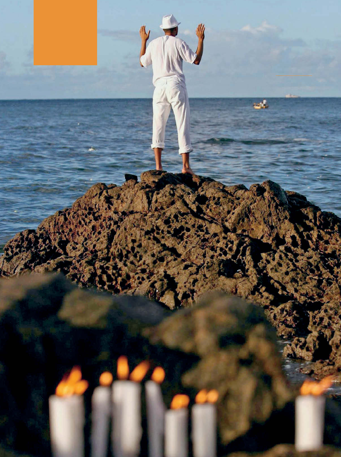 Fiel presta homenagem a Iemanjá durante festa dedicada a este orixá, em Salvador, capital da Bahia, em 2011. capítulo 24 A religião Excetuadas as atividades culturais ligadas diretamente à sobrevivência do indivíduo e da espécie, podemos dizer que a religião é a atividade cultural mais antiga. Além disso, existe em todas as culturas. Por quê? Porque descobrimos que somos humanos quando temos a experiência de que somos conscientes das coisas, dos outros e de nós mesmos. Se a consciência é a descoberta de nossa humanidade, se a descobrimos porque nos diferenciamos dos outros seres da natureza, graças à linguagem e ao trabalho, podemos atribuir ao fato de sermos dotados de consciência a condição e a causa primordial do surgimento da religiosidade. unidade Viii A experiência do sagrado R a u l S p in a s s é /A g ê n c ia A T a rd e /F u tu ra P re s s 225 INI.FILOSOFIA_FILOS_VU_PNLD15_U08_225a236_U08_C24.indd 225 5/9/13 3:40 PM A experiência do sagrado u n id a d e V I I I 226 A religiosidade Desde muito cedo os seres humanos percebem re- gularidades na natureza e sabem que não são a causa delas; percebem também que há na natureza coisas boas e ameaçadoras e reconhecem que não são os cria- dores delas. A percepção da realidade exterior como algo independente da ação humana nos conduz à cren- ça em poderes superiores ao humano e à busca de meios para nos comunicarmos com eles. Nasce, assim, a crença na(s) divindade(s). A consciência também é responsável pela desco- berta da morte. Um filósofo disse que somente os se- res humanos sabem que são mortais e outro escreveu: “O animal acaba, mas o homem morre”. O que isso quer dizer? Quando indicamos os principais traços da cultura, observamos que nela e por ela os seres humanos têm a experiência do tempo. Vimos também que outro aspecto fundamental da cultura é a atividade do tra- balho. Ora, ao trabalhar, as pessoas se relacionam com um tempo que não é o presente, e sim o futuro, pois o trabalho é feito em vista de algo que ainda não existe. Vimos também, ao estudarmos a memória, que ela é responsável pelo sentimento da identidade pessoal e da continuidade de uma vida que transcorre no tempo. A percepção do tempo, o trabalho e a memó- ria fazem com que as pessoas sejam capazes de esta- belecer relações com o ausente: o passado lembrado, o futuro esperado. Se reunirmos numa única experiência o sentimento do tempo e o da identidade pessoal, notaremos que os humanos são conscientes de que alguns seres e coisas desaparecem no tempo e outros surgem no tempo. Es- ses seres e coisas permanecem durante certo período porque os humanos são capazes de ligar passado, pre- sente e futuro, isto é, são capazes de perceber que exis- tem e que possuem identidade. Mas também são cons- cientes de que podem desaparecer um dia. Ou seja, sabem que morrem. Ora, por sermos conscientes tanto do tempo como uma presença (o presente) situada entre duas ausências (o passado e o futuro) quanto de nossa identidade e da identidade de nossos semelhantes, concebemos a per- manência dessa identidade num tempo futuro. Isto é, concebemos uma existência futura, num outro lugar ou num outro mundo, para onde vamos após a morte. A crença numa vida futura explica por que uma das primeiras manifestações religiosas em todas as culturas são os rituais fúnebres, que asseguram a entrada dos mortos na vida futura, e a busca de meios para comuni- car-se com eles. A crença em divindades e numa outra vida após a morte define o núcleo da religiosidade e se exprime na experiência do sagrado. Os atores Bengt Ekerot e Max von Sydow em cena do filme O sétimo selo, de 1957, dirigido por Ingmar Bergman. O cavaleiro joga xadrez com a morte na esperança de retardar a ação dela. R e p ro d u ç ã o /E v e re tt C o ll e c ti o n /K e y s to n e O sagrado O sagrado é a experiência da presença de uma po- tência sobrenatural que habita algum ser – planta, ani- mal, humano, coisas, ventos, águas, fogo. Essa potência é tanto um poder que pertence a determinado ser quanto algo que ele pode possuir e perder, não ter e adquirir. O sagrado é a experiência simbólica da dife- rença entre os seres, da superioridade e do poder de alguns sobre outros – sentidos como espantosos, mis- teriosos, desejados e temidos. INI.FILOSOFIA_FILOS_VU_PNLD15_U08_225a236_U08_C24.indd 226 5/9/13 3:40 PM A religião ca pí t u lo 2 4 227 A sacralidade introduz uma ruptura entre natural e sobrenatural, mesmo que os seres sagrados sejam na- turais (fogo, água, ar): é sobrenatural a força ou a po- tência para realizar aquilo que os humanos julgam impossível contando apenas com a força e a capacida- de humanas. Assim, quase todas as culturas conside- ram que um guerreiro com força, destreza e invencibi- lidade espantosas é habitado por uma potência sagrada. Por sua forma e ação misteriosas, benévolas e malévolas, o fogo é um dos principais entes sagrados. Em regiões desérticas, a sacralização concentra-se nas águas, raras e necessárias. O sagrado opera o encantamento do mundo, ha- bitado por forças e poderes admiráveis que agem ma- gicamente. Criam vínculos de simpatia-atração e de an- tipatia-repulsão entre todos os seres, agem a distância, enlaçam entes diferentes com laços secretos e eficazes. Todas as culturas possuem vocábulos para exprimir o sagrado. Nas culturas da Polinésia e da Melanésia, a palavra que designa o sagrado é mana (e suas varian- tes). Nas culturas das tribos norte-americanas fala-se em orenda (e suas variantes), referindo-se ao poder má- gico possuído por todas as coisas. Entre as culturas dos indígenas sul-americanos, o sagrado é designado por palavras como tunpa e aigres. Nas africanas, há cente- nas de termos, dependendo da língua e da relação mantida com o sobrenatural. Na cultura hebraica, dois termos designam o sagrado: qados , significando aqueles seres ou coisas