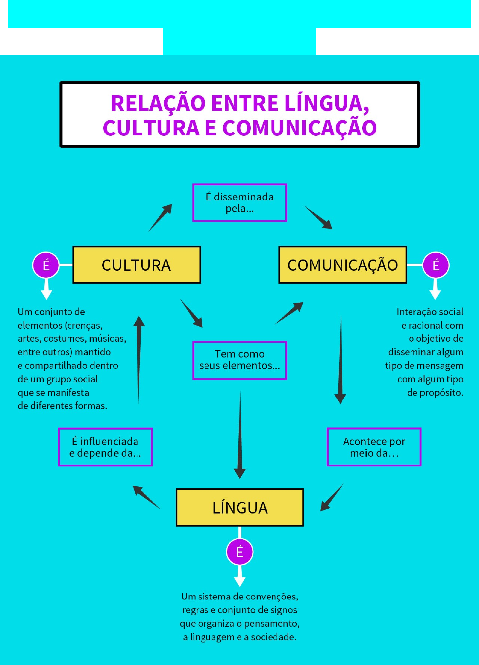 Módulo 4: Língua e cultura nos meios de comunicação A linguagem é a capacidade comunicativa intrínseca dada ao ser humano e a língua é um sistema organizacional que funciona para alcançar os fins da linguagem (comunicação) e para organizar o pensamento, a sociedade e a comunicação entre os falantes que adotam o mesmo sistema. A língua é: um produto social — por ser uma forma organizadora de comunicação entre falantes dentro de uma mesma cultura (e talvez região espacial) de forma convencional, aceita e utilizada por um determinado número de pessoas que compartilham cognitivamente, culturalmente e socialmente o mesmo sistema linguístico para a comunicação; um conjunto de convenções — sendo a língua um sistema criado e desenvolvido (proveniente de uma faculdade natural, a linguagem) que é sistematizado e convencional entre aqueles que compartilham a mesma língua. Essas convenções podem ser vistas como regras gramaticais, escolhas lexicais, formas de registro e apropriação linguística e, também, observadas em variações dentro de uma mesma língua (por diversos fatores que alteram a língua de forma que exista variações diferentes do mesmo idioma); Um idioma adotado pelo corpo social — que só tem utilização e validade se utilizada por um conjunto de pessoas, tais como as línguas que são atualmente consideradas vivas (português, inglês, espanhol, etc.). Uma vez que uma língua, quando não utilizada por um corpo social, deixa de existir como língua viva e passa a ser considerada uma língua morta (cuja evidência de uso pode se alocar em um tempo passado e cujos usos sejam restritos e não mais utilizados como forma oficial de comunicação vigente em determinados grupos, como o latim); o exercício da faculdade nos indivíduos — embora seja um produto social, cada indivíduo se apropria da língua de forma individual e internaliza cognitivamente o sistema para que, dessa forma, possa se comunicar com os seus pares, participando de uma organização da comunicação e do pensamento dentro de um conjunto de pessoas. (Já imaginou se as línguas não existissem e só pudéssemos nos comunicar por um “sistema” rudimentar não padronizado de gestos, toques e sons não identificáveis?). Em resumo, conclui-se que: linguagem é a capacidade/faculdade natural humana de se comunicar uns com os outros e as diferentes manifestações que expressem uma mensagem; língua é um produto artificial social da faculdade da linguagem, formada como um sistema de convenções utilizado por um grupo de pessoas para a comunicação. Ela também é cognitiva e cultural. De forma bem simples, sem entrar em pormenores relacionados à linguística, podemos observar que a manifestação da língua de forma “material” acontece, principalmente, de duas maneiras: auditiva e escrita. A forma auditiva é a relação entre a formação dos sons em uma determinada cadeia acústica e a capacidade dos falantes de interpretar a significação dessa cadeia sonora. A forma escrita é a transcrição da organização do pensamento e da comunicação para signos verbais escritos que são convencionais e que carregam um significado. A linguística se divide em subáreas que se estudam de forma independente (embora possam apresentar relações) de acordo com o foco do estudo, sendo as áreas: didática/docência: estudo de como ensinar um idioma; fonética: campo de estudo dos sons utilizados na linguagem; fonologia: estudo dos padrões básicos do som de uma língua; sintaxe: área de estudo das combinações de palavras para a formação de formas gramaticais; morfologia: estudo dos componentes mínimos das palavras; semântica: campo que estuda o significado; lexicologia: área de pesquisa e estudo do conjunto de palavras de uma língua; pressuposto teórico da lexicografia, que é a aplicação prática para a criação de dicionários, enciclopédias, etc.; terminologia: estudo de termos e textos especializados em diferentes campos do saber; pragmática: estudo da língua em uso nos atos comunicativos, considerando contexto, participantes. etc.; filologia: estudo histórico das línguas; estilística: área que estuda o estilo manifesto em diferentes formas de linguagem. Com base nas acepções dadas pelo dicionário, podemos observar que “cultura” pode ser considerada como um conjunto de outros fatores e que integram a esfera social. Portanto, podemos concluir – logicamente – que a cultura é composta de diversos tipos de componentes que se manifestam de diferentes formas para propósitos diferentes e que dão caracterização a um grupo social,(todo aquele complexo que inclui o conhecimento, as crenças, a arte, a moral, a lei, os costumes e todos os outros hábitos e capacidades adquiridos pelo homem como membro da sociedade). Existem diversos tipos de cultura que podem ser categorizados da seguinte forma: cultura erudita: é o tipo de cultura que é desenvolvida por intermédio de estudos e pesquisas em diferentes áreas do conhecimento. É a cultura que é restrita a apenas alguns indivíduos (não estando disponível para todo o grupo) e que cria uma certa estratificação social; cultura de massas: é o produto que se desenvolve e se manifesta para uma massa completa vinda de um certo ponto de partida (como diferentes mídias e canais de comunicação), sendo passível de ser acessada por qualquer pertencente de um grupo – diferentemente da cultura erudita. Ela geralmente é a responsável pela manipulação do comportamento e pela difusão de ideias e crenças de uma forma mais ampla (sendo a responsável pela promoção do consumismo, por exemplo); cultura material: é o tipo de cultura manifesta por produtos materiais e na sua relação com o homem, como objetos, história da criação de produtos, arquitetura, literatura, etc.; cultural popular: relaciona-se com crenças e tradições de um povo. Esse tipo de cultura surge de forma espontânea; cult