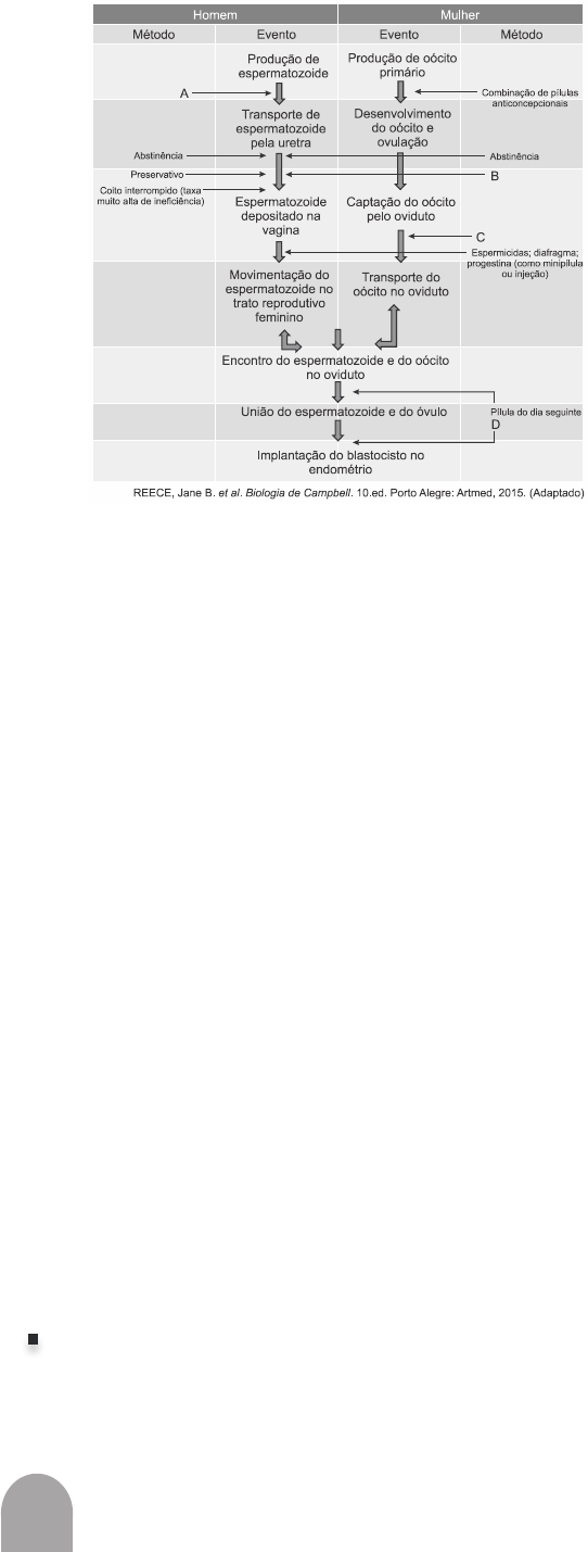 118 VO LU M E 4 C IÊ N CI A S DA N AT U RE ZA e s ua s te cn ol og ia s A partir da análise da figura, conclui-se que os métodos indicados pelas letras A, B, C e D são, respectivamente, a) camisinha; anel vaginal; DIU e laqueadura tubária. b) vasectomia; preservativo feminino; laqueadura tubária e DIU. c) vasectomia; DIU; laqueadura tubária e diafragma. d) camisinha; diafragma; anel vaginal e preservativo feminino. 13. (Ufjf-pism 3) “A sexualidade e a reprodução humana são temas apaixonantes e geram questões polêmicas, como produção de bebês de proveta, clonagem de seres humanos, liberalização do aborto e uso de métodos contraceptivos [...]. O conhecimento sobre como é e como funciona o nosso sistema reprodutor é questão de cidadania, pois garante a cada um de nós o con- trole consciente da reprodução.” Amabis e Martho (2001) Considere as afirmativas abaixo sobre métodos con- traceptivos e de reprodução. I. A utilização do diafragma e do dispositivo intraute- rino (DIU) impedem o encontro entre o espermato- zoide e o óvulo, isto é, impedem a fecundação. II. A progesterona e o estrógeno presentes na pílula anticoncepcional regulam a produção de FSH e LH pela hipófise impedindo a ovulação. III. As camisinhas, masculina ou feminina, além de eficientes na prevenção de Infecções Sexualmente Transmissíveis (ISTs) impedem a fecundação, pois inibem, respectivamente, a espermatogênese e a ovo- gênese. IV. A vasectomia e a laqueadura tubária são métodos de esterilização que atuam diretamente sobre a nida- ção, isto é, o processo de implantação do embrião no útero. V. Os hormônios da “pílula do dia seguinte”, método contraceptivo de emergência, impedem a ovulação ou, se a pílula é usada após a fecundação, impedem que o embrião se implante na parede uterina. São CORRETAS as afirmativas: a) I, II e IV b) II e III c) I, II, III e IV d) III, IV e V e) II e V 14. (Enem 2ª aplicação) Em média, a cada 28 dias ocorrem mudanças no corpo da mulher devido ao seu ciclo reprodutivo. Em cada ciclo, observam-se modificações morfológicas nas glândulas mamárias, ovários e útero, em fun- ção da liberação de inúmeros hormônios. No início do ciclo, observa-se que o hormônio liberador de gonadotrofinas (GnRH) estimula também a libera- ção de um outro hormônio (X), que proporciona o crescimento e diferenciação de um ovócito primário, a proliferação das células foliculares, a formação da zona pelúcida e o desenvolvimento de uma cápsula de tecido conjuntivo (denominada teca folicular). O hormônio X ao qual o texto se refere é o(a) a) estrogênio. b) progesterona. c) luteinizante (LH). d) folículo estimulante (FSH). e) gonadotrófico coriônico humano (HCG). 15. (Fgv 2021) O gráfico mostra a variação da concentração dos hormônios HCG (gonadotrofina coriônica humana), estrógeno e progesterona no sangue de mulheres gestantes. 119 VO LU M E 4 C IÊ N CI A S DA N AT U RE ZA e s ua s te cn ol og ia s Uma mulher grávida teve que retirar os dois ovários na vigésima oitava semana após a ovulação. A ges- tação da criança foi mantida naturalmente após o procedimento porque a) a concentração de HCG no sangue materno já estava constante. b) o estrógeno e a progesterona continuaram sendo produzidos pela placenta. c) a ausência do corpo lúteo ovariano foi compensada pela ação do HCG. d) a hipófise manteve a produção dos dois hormônios que mantêm o endométrio. e) as tubas uterinas mantiveram a produção de proges- terona e HCG. 16. (Unifesp 2023) Um estudo liderado por pesquisadores dos Institu- tos Nacionais de Saúde dos Estados Unidos aponta para a criação de um gel anticoncepcional mascu- lino. O produto é chamado de NES/T e, caso chegue ao mercado, deve ser aplicado na pele das costas e dos ombros do homem. Esse gel contém o composto progestina, derivado do hormônio progesterona, e testosterona. O papel da progestina é suprimir a produção de espermatozoides e o da testosterona é repor o hormônio produzido pelo corpo do homem, evitando a baixa de libido e a perda muscular cau- sada pelo composto feminino. (Natalia Cuminale. “Agora é a vez dele”. Veja, 19.12.2018. Adapta- do.) a) Após a aplicação do gel anticoncepcional na pele do homem, qual sistema do corpo humano transportará a progestina e a testosterona até o órgão-alvo des- ses hormônios? Que lipídio esteroide é o precursor da testosterona? b) Em um experimento médico, 10 homens saudáveis utilizaram corretamente o gel anticoncepcional por 6 semanas. Após esse período, seus hormônios FSH (folículo estimulante) e LH (luteinizante) foram analisados para verificar a eficácia do pro- duto, e os resultados desse experimento geraram um gráfico quantitativo, no qual X representa um valor de referência antes da aplicação do gel. Dos gráficos a seguir, qual representa o efeito anticoncepcional esperado? Justifique sua resposta com base na ação dos hormônios indicados nos gráficos. 17. (Fcmmg 2022) O que esperar do primeiro ano de menstruação? Apesar de ser algo natural que acontece com metade da população do planeta, a menstruação muitas vezes ainda é um tabu – especialmente para garo- tas na adolescência, que estão passando por seus primeiros ciclos. [...] A menstruação é um dos eventos da puberdade nas meninas, ou seja, é uma das etapas do amadurecimento do corpo para que a pessoa possa ter filhos. Antes da primeira menstru- ação, o corpo da menina vai apresentar os primeiros sinais da puberdade conforme o seu eixo hormonal passa a ser ativado, explica a ginecologista Marta Francis Benevides Rehme, presidente da Comissão Nacional de Ginecologia Infanto Puberal da Febrasgo (Federação Brasileira das Associações de Ginecologia e Obstetrícia). Os hormônios começam a aumentar no corpo a partir de 8 anos de idade e, por volta dos 10 anos, as meninas vão passar pelo aparecimen