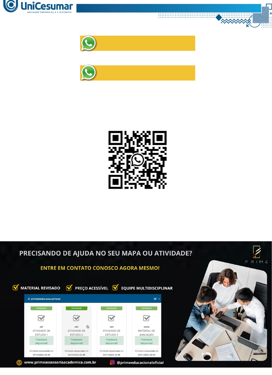 (99) 98525-8486 (99) 98525-8486 Olá, estudante! Somos a Prime Educacional e iremos te ajudar nessa atividade! MAPA - BEDU - BIOLOGIA E BIOQUÍMICA HUMANA - 51/2024 Todo ser vivo gasta energia a todo o momento para manter as diversas atividades desempenhadas pelo organismo. Nossas células estão continuamente trocando seus átomos e componentes moleculares. Grande parte das substâncias celulares é degradada para que novas possam ser sintetizadas. Esta atividade intensa de construção e desconstrução de substâncias é feita utilizando energia obtida através da degradação de nutrientes orgânicos. Essa dinâmica corporal que ocorre dentro de cada célula constitui o metabolismo. Considerando o trecho acima, nesta atividade MAPA testaremos seu conhecimento sobre o metabolismo energético, a partir de questões relacionadas a esse conteúdo. A molécula de ATP fornece energia para todas as reações que acontecem em nosso corpo. Por conta disso, essa molécula é constantemente regenerada ou ressintetisada a partir de uma reação simples conforme representado na imagem abaixo: Descrição da Imagem: No topo, o texto “ADP”, no lado direito, um hexágono unido a um pentágono, ambos verdes com o texto “adenina” em seu interior. Ao lado, tem um hexágono unido a um pentágono verdes com o texto “adenina” dentro e o pentágono está unido a outro pentágono azul escrito ribose dentro. Esse pentágono azul está unido por uma linha a um círculo laranja com um P dentro, que está ligado a outro círculo laranja com um P, e esses dois círculos estão indicados como adenosina difosfato. Ao lado do último círculo tem um sinal de mais, seguido de outro círculo alaranjado com um P dentro. Abaixo desse círculo há o texto “adição de um fostato”. Há uma flecha na cor preta sinalizando para baixo, no qual há uma outra imagem que inicia com o texto “ATP” no centro. Há um pentágono que está ligado por uma linha preta a outro pentágono azul com o texto “ribose”, que se liga a uma esfera com a letra P. Essa esfera se liga a outra esfera com a letra P, que também está ligada a outra esfera igual. Entre as esferas, a ligação é vermelha em formato de raio e uma forma estrelada amarela. Uma dessas ligações está indicada como ligação de baixa energia, e a outra como ligação de alta energia. As três esferas juntas estão indicadas como adenosina trifosfato. 01. Considerando as informações da imagem acima, explique de formas simples e objetiva como acontece a ressíntese do ATP, a partir de uma molécula de ADP. 02 – O processo de respiração celular aeróbia é dividido em três etapas: 1 – Glicólise; 2 – Ciclo do ácido Cítrico e 3 – Fosforilação oxidativa, conforme apresentado a partir da página 106 do livro da disciplina. Sobre essas etapas, responda o que se pede a seguir: a) Em que parte da célula ocorre a glicólise e qual é o produto final formado nesse processo? b) Em que parte da célula ocorre o ciclo do ácido cítrico e quantas etapas o ciclo possui? c) A fosforilação oxidativa é a etapa da respiração celular que mais produz ATP, sendo composta por dois mecanismos. Quantos ATPs, em média, esta etapa produz e quais são os mecanismos que compõem a fosforilação oxidativa? 03. A gliconeogênese é um processo que acontece principalmente no fígado, no qual há a síntese de glicose a partir de moléculas que não são carboidratos. Descreva quais são essas moléculas. 04 - Apresente as referências bibliográficas do livro da disciplina, sites ou artigos utilizados para realização desta atividade, conforme as normas ABNT. IMPORTANTE: - Acesse a parta MATERIAL DA DISCIPLINA e baixe o arquivo MODELO MAPA para responder sua atividade! - É obrigatório a utilização do Modelo Mapa. - Cópias parciais ou totais serão zeradas. - Poste seu arquivo em formato word (.doc) ou PDF. Outros formatos não serão aceitos. - Certifique-se se o arquivo enviado está correto. Em caso de problemas, envie sua dúvida para o seu professor mediador. - Todas a