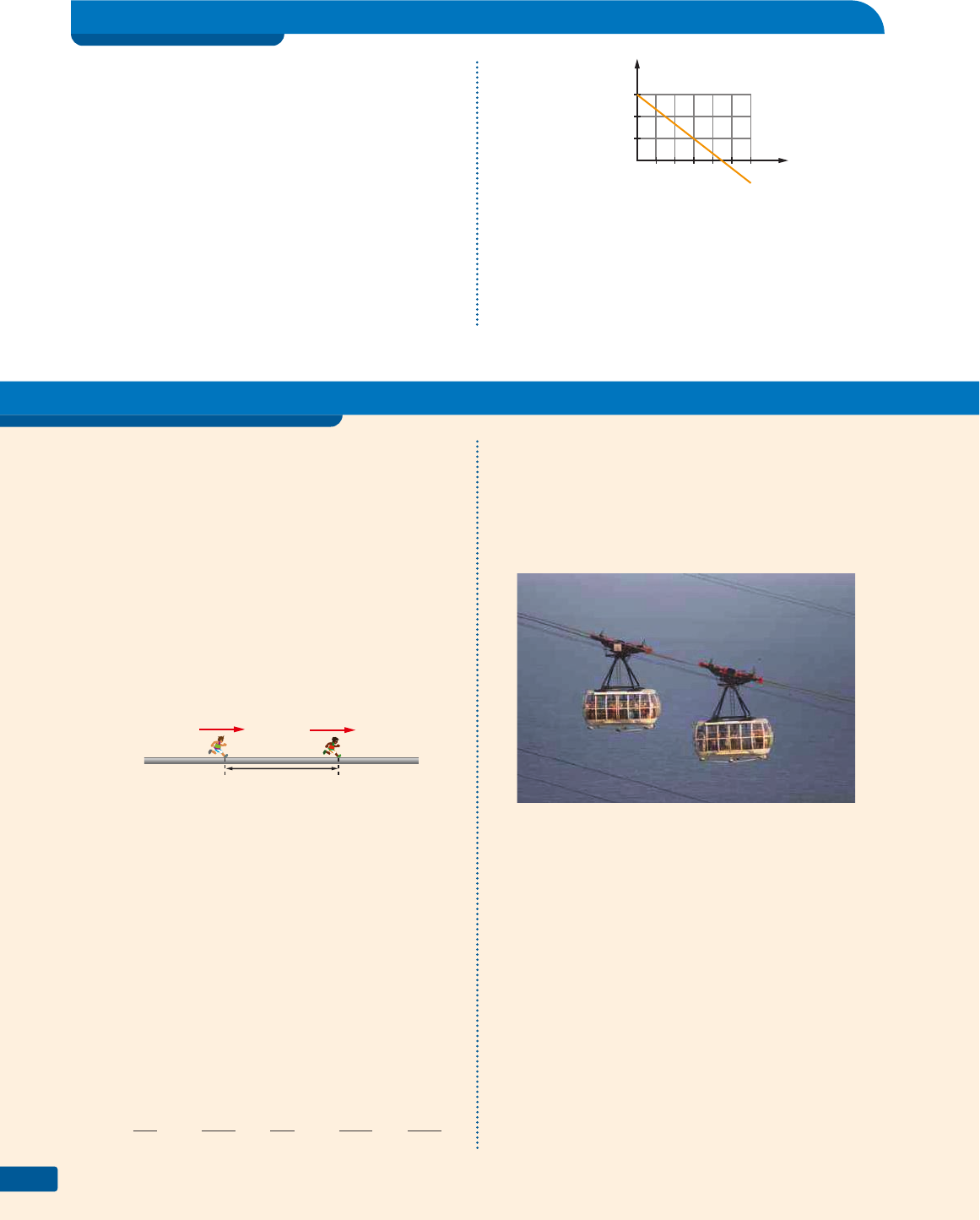 Capítulo 486 Exercícios de Aprofundamento 48. Uma partícula, dotada de velocidade escalar constante igual a 5,0 m/s, percorre uma trajetó- ria retilínea em que foram definidas duas posi- ções, A e B. Ela passou pela posição A no instante t 1 = 3,0 s e por B no instante t 2 = 9,0 s. a) Faça o diagrama horário da velocidade, anotando no eixo do tempo os valores citados. b) Usando a propriedade gráfica, determine a distância entre A e B. 49. Um ponto material tem movimento uniforme e o diagrama horário das posições é dado na figura a seguir. Exercícios de Aplicação 50. (OBF-Brasil) Numa corrida internacional de atle- tismo, o atleta brasileiro estava 25 m atrás do favorito, o queniano Paul Tergat, quando, no fim da corrida, o brasileiro reage, imprimindo uma velocidade escalar constante de 8,0 m/s, ultra- passando Tergat e vencendo a prova com uma vantagem de 75 m. Admitindo-se que a velocidade escalar de Tergat se manteve constante e igual a 5,5 m/s, calcule qual o intervalo de tempo decor- rido desde o instante em que o brasileiro reagiu até o instante em que cruzou a linha de chegada. Admita que ambos descrevem trajetórias retilí- neas e paralelas. 5,5 m/s queniano 8,0 m/s 25 m brasileiro 51. (UE-RJ) Um foguete persegue um avião, ambos com velocidades constantes e mesma direção. Enquanto o foguete percorre 4,0 km, o avião percorre apenas 1,0 km. Admita que, em um instante t 1 , a distância entre eles é de 4,0 km e que, no instante t 2 , o foguete alcança o avião. No intervalo de tempo t 2 – t 1 , a distância percorrida pelo foguete, em quilômetros, corresponde apro- ximadamente a: a) 4,7 b) 5,3 c) 6,2 d) 8,6 52. (Fuvest-SP) Dois carros percorrem uma pista circular, de raio R, no mesmo sentido, com veloci- dades de módulos constantes e iguais a V e 3V. O tempo decorrido entre encontros sucessivos vale: a) πR 3V b) 2πR 3V c) πR V d) 2πR V e) 3πR V 53. No Pão de Açúcar, Rio de Janeiro, temos o famoso bondinho suspenso que leva os turistas para o pico do morro. Dois cabos de aço paralelos correm em sentidos contrários, com uma mesma velocida- de de módulo 36 km/h. A foto mostra os bondi- nhos quando vão se cruzar no meio do caminho. Tendo cada bondinho uma largura de 6,0 m e um comprimento de 8,0 m, pergunta-se: a) Por quanto tempo um passageiro que está na janela de um dos bondinhos vê o outro à sua frente, durante o cruzamento? b) Um turista, no pico do Pão de Açúcar, assiste ao cruzamento dos dois bondinhos. Quanto tempo dura o cruzamento? 54. Um viajante perdeu o trem e correu atrás dele para tentar pegá-lo. Felizmente, a velocidade do trem era baixa. A figura mostra o instante em que o homem alcançou o trem. Nesse mesmo ins- tante um carro também o alcançou. Todos os três vão seguir suas trajetórias retilíneas e paralelas em movimento uniforme. 86 Capítulo 4 9,0 s (cm) 6,0 3,0 0 2,0 4,0 6,0 t (s) a) Calcule a velocidade escalar e esboce o gráfico velocidade × tempo. b) Usando a propriedade gráfica, determine o deslocamento escalar entre os instantes 2,0 s e 5,0 s. c) Classifique o movimento em retrógrado ou progressivo. l u Iz A u g u S t o r Ib E Ir o C á S S Io V A S C o N C E l o S /S A m b A p h o t o Movimento uniforme (MU) 87 2v v v A 2L 2L L carro 1 carro 2 (v 1 ) (v 2 )v A velocidade escalar do trem é v, a do homem 2v e a do carro v A . No instante em que o homem ultrapassa o trem, o carro também o ultrapassa. Determine, para um referencial no solo: a) A distância percorrida pelo viajante desde o ins- tante em que alcançou o trem até ultrapassá-lo. b) A velocidade escalar do automóvel. 55. Dois carros, em movimento uniforme, trafegam numa estrada retilínea horizontal em sentidos opostos. Quando estão próximos de se cruzarem, um objeto estranho, em forma de disco, voando numa altitude muito baixa, numa direção parale- la à estrada, passa sobre eles. O motorista do carro 1 rapidamente avalia a velo- cidade escalar do objeto em 6,0 m/s. No carro 2, o outro motorista também faz a avaliação da velocidade e conclui que é 20 m/s. Admitindo que ambos tenham acertado, podemos concluir que o módulo da velocidade relativa do carro 1 em relação ao carro 2 é, aproximadamente: a) 26 m/s d) 13 m/s b) 20 m/s e) 7,0 m/s c) 14 m/s 56. Os diagramas de posição × tempo abaixo refe- rem-se aos movimentos dos móveis A e B sobre uma mesma trajetória retilínea. x (m) 22 10 16 0 2,0 t (s) Figura b. Móvel B. Analisando os diagramas horários, podemos con- cluir que os móveis se deslocam: a) no mesmo sentido, sendo que o móvel A deve- rá alcançar o móvel B. b) no mesmo sentido, sendo que o móvel B deve- rá alcançar o móvel A. c) em sentidos opostos, mas, devido à posição inicial, eles não deverão se cruzar. d) em sentidos opostos e deverão se encontrar no instante t = 3,0 s na posição x = 28 m. e) em sentidos opostos e deverão se encontrar no instante t = 4,0 s na posição x = 24 m. 57. Dois móveis, A e B, deslocam-se sobre uma mesma trajetória retilínea. Suas posições são dadas pelo gráfico que se segue. O instante de encontro dos dois ocorreu em t = 4,0 s. A velocidade de A em relação a B tem módulo igual a: a) 1,0 m/s b) 2,0 m/s c) 3,0 m/s d) 4,0 m/s e) 5,0 m/s 58. (U. F. São Carlos-SP) Um navio é responsável por verificar a energia mareomotriz de determinada região da costa. Na coleta de informações, o timoneiro traça uma rota rumo ao continente. Algum tempo depois, na cabine do capitão, um alarme alerta para as leituras feitas automatica- mente pelo sonar, que mostram a rápida diminui- ção da profundidade do leito oceânico. Profundidade (m) 17 15 13 11 Instante (s) 0 15 30 45 Supondo que a inclinação do leito oceânico seja constante e sabendo que a quilha da embarcação está 3 m abaixo da linha-d’água, se nenhuma atitude for imediatamente tomada, o encalhe irá ocorrer entre os instantes: a) 1,0 minuto e 1,5 minuto. b) 1,5 minuto e 2,0 minutos. c) 2,0 minut