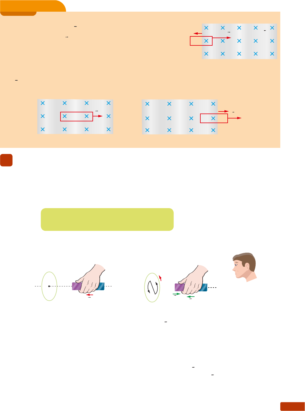 Indução eletromagnética 371 4. Lei de Lenz Já explicamos em que condições aparece a corrente induzida, mas não como deter- minar o sentido dessa corrente. embora Faraday tenha explicado como fazer, foi o físico Heinrich Friedrich Lenz, nascido na estônia (1804-1865), quem apresentou um processo mais simples para obter esse sentido. A Lei de Lenz estabelece que: O sentido da corrente induzida é tal que se opõe à variação de fluxo que a produziu. Vamos verificar, através de um exemplo, como aplicar a Lei de Lenz. Consideremos um ímã em forma de barra. Aproximemo-lo de uma espira circular fixa, como indica a figura 8, de modo que o eixo do ímã se mantenha perpendicular ao plano da espira. A figura 5 representa uma espira retangular penetrando em uma região R, onde há um campo magnético B, uniforme e perpendicular ao plano da espira. Nesse caso, o fluxo de B através da espira é dado por ϕ = B · A, em que A é a área da espira que está imersa no campo. Enquanto a espira estiver penetran- do em R, aumentará a área A e, portanto, aumentará também o fluxo ϕ. Assim, deve haver uma corrente induzida i 1 na espira, durante a penetração na região R. Quando a espira estiver totalmente dentro de R, como mostra a figura 6, o fluxo através dela permanecerá constante e não haverá corrente induzida. Enquanto a espira estiver saindo de R (fig. 7), o fluxo de B estará diminuindo e haverá novamente corrente induzida i 2 na espira. Assim que ela abandonar a região R, o fluxo será constantemente nulo e não haverá mais corrente induzida. v i = 0 Figura 6. v i 2 Figura 7. Exemplo 4 Bv i 1 R Figura 5. v O F i N S Figura 9. N S v Figura 8. De acordo com a Lei de Lenz, a corrente induzida na espira deve contrariar essa aproximação, isto é, a espira deve exercer sobre o ímã uma força F de sentido oposto ao do movimento do ímã (fig. 9). Mas, se a espira repele o ímã, concluímos que a face da espira que está voltada para o ímã deve ser um polo do mesmo nome do polo do ímã que é aproximado, isto é, um polo norte. Aplicando a regra da mão direita, concluí- mos que a corrente induzida deve ter o sentido indicado na figura 9 (anti-horário para o observador O). podemos, também, analisar esse exemplo de um modo diferente. sendo B o cam- po criado pelo ímã, à medida que este se aproxima da espira, aumenta o fluxo de B (que pode ser chamado fluxo indutor) através da espira (fig. 10). pela Lei de Lenz, a corrente induzida deve opor-se a esse aumento de fluxo. para tanto, a corrente indu- IL u st r A ç õ es : ZA pt Capítulo 19372 zida deve produzir um campo B', de modo que o fluxo de B' (que podemos chamar fluxo induzido) deve ter sinal contrário ao do fluxo de B e, para que isso ocorra, o campo B' deve ter sentido oposto ao de B (fig. 11) nos pontos interiores à espira. Aplicando a regra da mão direita, concluímos que a corrente induzida deve ter o sentido assinalado na figura 11. B v N S Figura 10. i B' v N S Figura 11. um fato importante a ser observado nesse exemplo é a troca de energia. Conforme vimos, enquanto o ímã se aproxima da espira, esta exerce sobre ele uma força de repulsão F (fig. 9). portanto, o operador que movimentou o ímã teve que aplicar sobre ele outra força de sentido oposto ao de F e assim realizou um trabalho positivo. esse trabalho é igual à energia dissipada na espira, por efeito Joule (supondo a velocidade do ímã constante). Ainda considerando o exemplo acima, suponhamos que, ao aproximar o ímã da espira, a corrente induzida tivesse sentido tal que o ímã fosse atraído pela espira (o que estaria contrariando a Lei de Lenz). Nesse caso, uma vez iniciado o movimento do ímã, poderíamos deixar de empurrá-lo, pois ele seria atraído pela espira e assim não realizaríamos mais trabalho. Mas isso contraria o princípio de Conservação da energia: teríamos energia dissipada na espira, por efeito Joule, sem que nenhum trabalho (ou energia) fosse fornecido ao sistema, o que obviamente é absurdo. Vemos, então, que a Lei de Lenz está de acordo com o princípio de Conservação da energia. Exercícios de Aplicação 8. Em cada um dos casos a seguir temos um ímã em forma de barra, o qual se move de modo a manter seu eixo perpendicular ao plano de uma espira circular fixa. Em cada caso, deter- mine o sentido da corrente induzida para o observador O. a) r O v S N b) r O v S N c) v OS N d) v OS N 9. A figura representa uma espira circular que se afasta, com velocidade v , de um ímã fixo em forma de barra. Considere o eixo do ímã perpen- dicular ao plano da espira. Determine o sentido da corrente induzida para o observador O. v OS N 10. Um ímã em forma de barra aproxima-se de um solenoide, como indica a figura, fazendo o eixo do ímã coincidir com o eixo do solenoide. Defina o sentido da corrente induzida, no trecho XY. v X Y N S IL u st r A ç õ es : ZA pt Indução eletromagnética 373 11. Uma espira retangular é colocada dentro de uma região onde há um campo de indução magnética B uniforme e perpendicular ao plano da espira, como mostra a figura. B Determine o sentido da corrente induzida na espira, nos seguintes casos: a) |B| aumenta com o tempo; b) |B| diminui com o tempo. 12. Um fio longo e retilíneo, percorrido por uma corrente i que aumenta com o tempo, é colocado no mesmo plano de uma espira retangular, como mostra a figura. i a) Qual o sentido da corrente induzida na espira? b) A espira é atraída ou repelida pelo fio? 13. Um condutor retilíneo muito longo, percorrido por uma corrente i, está no mesmo plano de uma espira retangular, como mostra a figura. A espira é puxada de maneira a se afastar do fio. Determine o sentido da corrente induzida na espira. v i 14. Considere duas espiras quadradas, M e N, com planos paralelos entre si, como indica a figura a seguir. A espira M está ligada a um resistor variável R e a um gerador G, o qual fornece a corrente i. Variando-se R, obtemos uma