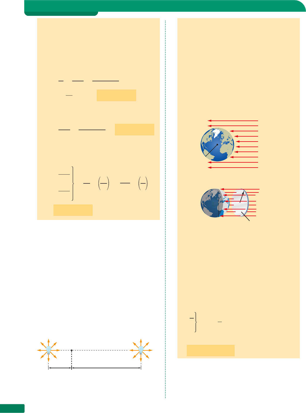 Capítulo 16440 70. Uma fonte puntiforme emite ondas com potência P = 540 W. Calcule a intensidade dessa onda: a) a 3,0 m da fonte; b) a 6,0 m da fonte. Resolução: a) P = 540 W; r 1 = 3,0 m I 1 = P S = P 4πr2 1 = 540 W 4π(3,0 m)2 ⇒ ⇒ I 1 = 15 π W/m2 ⇒ I 1 ≅ 4,8 W/m2 b) 1º. modo: P = 540 W; r 2 = 6,0 m I 2 = P 4πr2 2 = 540 W 4π(6,0 m)2 ⇒ I2 ≅ 1,2 W/m 2 2º. modo: Podemos usar o resultado do item a. r 1 = 3,0 m; r 2 = 6,0 m I 1 = P 4πr2 1 I 2 = P 4πr2 2 ⇒ I 1 I 2 = r 2 r 1 2 ⇒ 4,8 I 2 ≅ 6 3 2 ⇒ ⇒ I 2 ≅ 1,2 W/m2 71. Uma fonte puntiforme F emite ondas com potên- cia constante P = 960 W. Calcule: a) a energia emitida em 5,0 minutos; b) a intensidade da onda a uma distância de 4,0 m da fonte. 72. Uma fonte puntiforme F emite ondas com potên- cia constante. Sabe-se que, à distância de 4,0 m da fonte, a intensidade da onda é 90 W/m2. Calcule a intensidade da onda a 6,0 m da fonte. 73. Duas pequenas lâmpadas, L 1 e L 2 , emitem radia- ção de maneira uniforme em todas as direções, sendo que L 1 emite energia com potência 4,0 W. 1,5 m Y L 1 L 2 4,5 m Determine a potência da lâmpada L 2 , sabendo que as radiações das duas lâmpadas atingem o ponto Y com a mesma intensidade. Exercícios de Aplicação 74. Sabendo que o raio da Terra é R ≅ 6,37 ∙ 106 m e que a constante solar é F ≅ 1 370 W/m2, calcule o valor aproximado da potência da radiação solar sobre a Terra. Resolução: O diâmetro do Sol é cerca de 110 vezes maior que o diâmetro da Terra, isto é, a proporção entre os tamanhos da Terra e do Sol é seme- lhante à proporção que existe entre um grão de arroz e uma bola de futebol. Por isso os raios da radiação solar que atingem a Terra são prati- camente paralelos (fig. a). radiação solar Terra R Figura a. seção reta da Terra S R Figura b. Como a intensidade da onda é calculada usando uma superfície perpendicular à direção de pro- pagação da onda, para calcular a potência total incidente na Terra devemos usar o círculo S da figura b, que tem a mesma área de uma seção reta da Terra (que passa por seu centro). O raio de S é igual ao raio da Terra e sua área é: A = π R2 Portanto: I = P A I = F ⇒ F = P A ⇒ P = F · A ⇒ P = FπR2 ⇒ ⇒ P ≅ (1 370 W/m2)(3,14)(6,37 · 106 m)2 ⇒ ⇒ P ≅ 1,75 · 1017 W 75. A distância entre a Terra e o Sol é, aproximada- mente, 150 milhões de quilômetros. Sabendo que a constante solar é, aproximadamente, 1 370 W/m2, calcule o valor aproximado da potência com que o Sol emite radiação. il u sT r A ç õ es : zA PT Ondas 441 76. Uma pessoa está deitada em uma praia, tomando banho de Sol, de modo que os raios da radiação solar fazem ângulo de 30° com o solo. 30¡ Supondo que na região a intensidade da radia- ção solar seja 700 W/m2 e que a área da parte de cima do corpo da pessoa seja 0,80 m2, calcule: a) a intensidade da radiação que atinge a pessoa; b) a energia radiante que atinge a pessoa em 5,0 minutos. 77. Uma fonte puntiforme F emite ondas mecânicas esféricas. Sabe-se que a 18 m da fonte a amplitu- de é 6,0 m. Calcule a amplitude a 27 m da fonte. Resolu•‹o: r 1 = 18 m; A 1 = 6,0 m; r 2 = 27 m; A 2 = ? A 1 = γ r 1 A 2 = γ r 2 ⇒ A 1 A 2 = r 2 r 1 ⇒ 6 A 2 = 27 18 ⇒ A2 = 4,0 m 78. Uma fonte puntiforme F emite ondas de modo que no ponto M 1 situado à distância r 1 da fonte, a amplitude é A 1 , e, no ponto M 2 , situado à distância r 2 da fonte, a amplitude é A 2 . Sabendo que r 2 = 8,0 m e A 1 = 3 2 A2, determine o valor de r 1 . r 1 r 2 M 1 M 2 F 79. Apresente a equação dimensional da intensidade. 80. Em uma casca esférica de raio 2,0 metros há um pequeno orifício de área 4π cm2. No centro da casca esférica há uma pequena lâmpada acesa, cuja potência é 100 W. Em um intervalo de tempo de 20 minutos, a quantidade de energia da lâm- pada que atravessa o orifício é aproximadamente igual a: a) 1 J d) 5 J b) 3 J e) 6 J c) 4 J Exercícios de Reforço 81. (Fuvest-SP) Para a orelha humana, a mínima intensidade perceptível é 10–16 W/cm2 e a máxi- ma intensidade suportável sem dor é 10–4 W/cm2. Uma fonte sonora produz som que se propaga uniformemente em todas as direções do espaço e que começa a ser perceptível pela orelha humana a uma distância de 1 km. a) Determine a potência sonora da fonte. b) Determine a menor distância à fonte a que uma pessoa poderá chegar sem sentir dor. 82. (Mackenzie-SP) Uma fonte sonora puntiforme emite ondas em um meio homogêneo e isótropo. A 20 cm de distância da fonte, cada cm2 (disposto perpendicularmente aos raios) é atravessado em cada segundo por 1 000 J. A energia que atravessa por segundo um trecho de 1 cm2 situado a 80 cm da fonte (e disposto perpendicularmente aos raios) valerá: a) 62,5 J c) 72,5 J e) 41,3 J b) 52,5 J d) 82,5 J 83. (ITA-SP) A distância de Mercúrio ao Sol é de apro- ximadamente 1 3 daquela entre a Terra e o Sol. Superfícies planas, de mesma área, em Mercúrio e na Terra, perpendiculares aos raios solares, res- pectivamente, recebem por segundo as energias U M e U T . Pode-se afirmar que U M U T é igual a: a) 1 3 c) 9 e) um b) 3 d) 1 9 84. (FEI-SP) Duas fontes sonoras independentes, A e B, emitem sons uniformemente em todas as direções do espaço. A fonte A tem potência acústica P A = 2,0 ∙ 10–3 W. Determinar a potên- cia acústica da fonte B, sabendo que um obser- vador situado em C ouve as duas fontes com a mesma intensidade. A x 2x C B z A P Tl u iz A u G u s T O r ib e ir O Capítulo 16442 85. (UF-GO) O Brasil possui aproximadamente 27 milhões de chuveiros elétricos instalados em residências. Mesmo que apenas uma fração desses chuveiros esteja ligada ao mesmo tempo, o con- sumo de energia desses aparelhos ainda é muito grande, principalmente em horários de maior demanda de energia. Uma alternativa viável é a utilização de coletores de energia solar com o objetivo de aquecer a água. Suponha que um sistema de aquecimen