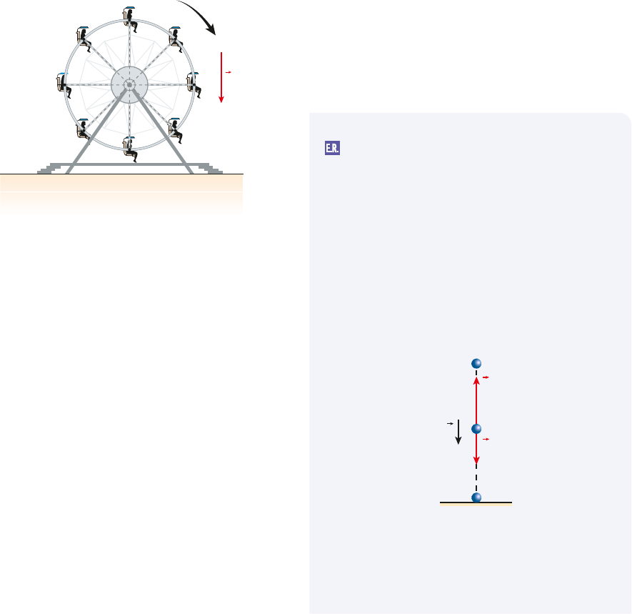 503TÓPICO 8 | QUANTIDADE DE MOVIMENTO E SUA CONSERVAÇÃO a) as energias cinética e potencial de gravidade da formiga permanecem constantes. b) a energia cinética e a quantidade de movimento da formiga permanecem constantes. c) a energia cinética da formiga permanece cons‑ tante, mas sua energia potencial de gravidade aumenta. d) a quantidade de movimento da formiga perma‑ nece constante, mas sua energia potencial de gravidade aumenta. e) a energia mecânica total da formiga permanece constante. 12. (Unip ‑SP) Considere uma roda‑gigante com mo‑ vimento de rotação uniforme e formada por oito unidades simetricamente dispostas, como indica a figura. (1) rotação uniforme (2)(8) (3)(7) (4)(6) (5) g Todas as unidades são formadas pela cadeira e por uma pessoa e têm pesos iguais. Considere um sistema de referência fixo no solo terrestre, suposto horizontal. Analise as proposições a seguir: (1) A quantidade de movimento de cada unida‑ de permanece constante. (2) A quantidade de movimento total do sistema formado pelas oito unidades permanece constante. (3) A energia mecânica de cada unidade perma‑ nece constante. (4) A energia mecânica total do sistema formado pelas oito unidades permanece constante. (5) A força resultante em cada unidade não rea‑ liza trabalho. Somente está correto o que se afirma em: a) (2) e (4). b) (4) e (5). c) (1) e (3). d) (2), (4) e (5). e) (1), (3) e (5). 13. Considere duas partículas A e B em movimento com energias cinéticas constantes e iguais. É necessariamente correto que: a) as trajetórias de A e B são retas paralelas. b) as velocidades de A e B têm módulos iguais. c) as quantidades de movimento de A e B têm módulos iguais. d) se a massa de A for o quádruplo da de B, então o módulo da quantidade de movimento de A será o quádruplo do de B. e) se a massa de A for o quádruplo da de B, então o módulo da quantidade de movimento de A será o dobro do de B. 14. A um pequeno bloco que se encontra inicialmen‑ te em repouso sobre uma mesa horizontal e lisa aplica ‑se uma força constante, paralela à mesa, que lhe comunica uma aceleração de 5,0 m/s2. Observa ‑se, então, que, 4,0 s após a aplicação da força, a quantidade de movimento do bloco vale 40 kg m/s. Calcule, desprezando o efeito do ar, o trabalho da força referida desde sua aplicação até o instante t 5 4,0 s. 15. Uma partícula de massa igual a 2,0 kg, inicial‑ mente em repouso sobre o solo, é puxada verticalmente para cima por uma força cons‑ tante F &, de intensidade 30 N, durante 3,0 s. Adotando g 5 10 m/s2 e desprezando a resis‑ tência do ar, calcule a intensidade da veloci‑ dade da partícula no fim do citado intervalo de tempo. Resolução: Apenas duas forças agem na partícula: F & e P& (peso). t 5 3,0 s v 5 ? t 0 5 0 v 0 5 0 P F g Aplicando o Teorema do Impulso, temos: I &total 5 Q& 2 Q&0 I &(F&) 1 I &(P&) 5 Q& 2 Q&0 E.R. R e p ro d u ç ã o /A rq u iv o d a e d it o ra B a n c o d e i m a g e n s /A rq u iv o d a e d it o ra 1CONECTEFis_MERC18Sa_U2_Top8_p493a551.indd 503 8/9/18 9:09 AM 504 UNIDADE 2 | DINÂMICA Algebricamente: FDt 2 mgDt 5 mv 2 mv0 Sendo F 5 30 N, Dt 5 3,0 s, m 5 2,0 kg, g 5 10 m/s2 e v0 5 0, calculemos o valor de v: 30 ? 3,0 2 2,0 ? 10 ? 3,0 5 2,0 v v 5 15 m/s Nota: • Este problema também poderia ser resol‑ vido aplicando ‑se a 2a Lei de Newton. 16. Uma bola de massa igual a 40 g, ao chegar ao local em que se encontra um tenista, tem veloci‑ dade horizontal de módulo 12 m/s. A bola é gol‑ peada pela raquete do atleta, com a qual interage durante 2,0 ? 1022 s, retornando horizontalmente em sentido oposto ao do movimento inicial. Su‑ pondo que a bola abandone a raquete com velo‑ cidade de módulo 8,0 m/s, calcule a intensidade média da força que a raquete exerce sobre a bola. 17. Mochila voadora Projetada originalmente por uma empresa de brinquedos aquáticos alemã, essa mochila pro‑ pulsionada por água permite a um homem se manter em equilíbrio pairando no ar, como se pudesse voar. Trata‑se do Jetlev, que deixa o usuário a cerca de 8,5 m de altura mediante um jato de água que circula pela mochila, produzindo uma força vertical dirigida para cima que equilibra o peso total. A água é introduzida em uma man‑ gueira gigante por meio de uma bomba existente em um pequeno barco conectado ao equipamen‑ to. Essa injeção de água ocorre em grande vazão: algo em torno de 20,0 L/s. Depois de fazer uma curva de 1808 na mochila com mudança de inten‑ sidade da velocidade, mas com conservação da vazão, o líquido provoca a sustentação da pessoa, que se mantém elevada sobre um lago ou o mar. O usuário também pode deslocar‑se horizontalmente a uma velocidade pró‑ xima de 40 km/h, bastando para isso inclinar adequada‑ mente os jatos por onde a água é ejeta‑ da, além de contro‑ lar a vazão. Considerando‑se a vazão de 20,0 L/s, citada no texto, levando‑se em conta que a densidade da água vale d 5 1,0 g/L, que g 5 10,0 m/s2 e que a água é introduzida na mochila verticalmente para cima a 20,0 m/s e ejetada verticalmente para baixo a 30,0 m/s, que massa ficaria suspensa em equi‑ líbrio nessas condições? 18. (UFSC) Nos Jogos Olímpicos Rio 2016, a seleção brasileira de vôlei obteve a medalha de ouro após doze anos da última conquista, com uma vitória por 3 sets a 0 sobre a Itália. O saque Viagem, po‑ pularizado pelos jogadores brasileiros na Olimpíada de 1984, foi de fundamental importância para o alto desempenho da equipe. Na figura abaixo, uma sequência de imagens ilustra a execução de um saque Viagem, com indicação da posição do joga‑ dor e da posição correspondente da bola em diver‑ sos instantes de tempo. O jogador lança a bola, cuja massa é de 0,3 kg, com velocidade horizontal próxima de 4,0 m/s e entra em contato novamente com ela a uma altura de 3,50 m acima do nível do solo, no instante 2,2 s. Esse contato dura apenas 0,02 s