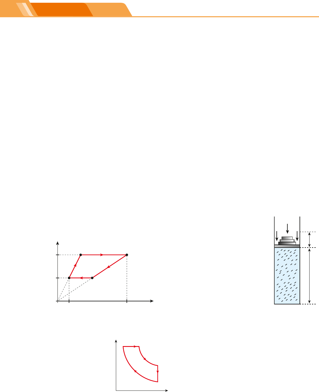 200 UNIDADE 1 | TERMOLOGIA 88. (UnB-DF) Quanto aos processos sofridos por gases ideais entre dois estados, julgue os itens a seguir: a) Num processo isotérmico, há troca de calor com o meio exterior. b) Num processo adiabático, não há transferência de calor para o meio exterior. c) Um processo adiabático é um processo lento, em que a variação de energia do gás é igual ao trabalho realizado sobre este. d) Um processo isotérmico é um processo lento, no qual há variação na energia interna do gás. e) Num processo isotérmico, a energia cinética média das moléculas é a mesma nos estados inicial e final. f) Num processo isotérmico de compressão de um gás, a pressão exercida sobre as paredes do recipiente que contém o gás aumentará. g) Num processo adiabático, a variação de ener- gia do gás é nula. h) A temperatura do gás no estado final depende do processo seguido e da natureza do gás. 89. Uma determinada amostra de gás monoatômico, que se comporta como um gás ideal, desenvolve sucessivas transformações retornando à sua si- tuação inicial, percorrendo o ciclo termodinâmico representado no diagrama a seguir. 0 200 B C D A 1200 2 4 p (Pa) T (K) Sabendo que o volume inicial do gás era 1,0 m3, de- terminar o trabalho realizado ao completar um ciclo. 90. (UFC-CE) O ciclo diesel, mostrado na figura ao lado, representa o com- portamento aproxima- do de um motor diesel. A substância de traba- lho desse motor pode ser considerada um gás ideal. O processo a → b é uma compressão adia- bática, o processo b → c é uma expansão a pres- são constante, o processo c → d é uma expansão adiabática e o processo d → a é um resfriamento a volume constante. Com relação a esses processos, a opção correta é: a) No processo a → b a energia interna do siste- ma não varia. b) No processo b → c a energia interna do siste- ma diminui. c) No processo c → d a energia interna do siste- ma diminui. d) No processo d → a a energia interna do siste- ma aumenta. e) No ciclo completo a variação da energia inter- na é positiva. 91. (IME-RJ) Um gás ideal e monoatômico contido em uma garrafa fechada com 0,1 m³ está inicial- mente a 300 K e a 100 kPa. Em seguida, esse gás é aquecido, atingindo 600 K. Nessas condições, o calor fornecido ao gás, em kJ, foi? a) 5 b) 10 c) 15 d) 30 e) 45 92. (Ufla-MG) A figura mostra, em corte, um cilindro de paredes adiabáticas (não há troca de calor), provido de um êmbolo superior móvel. No interior do cilindro, encontram-se n mols de um gás ideal. A pressão atmosférica pa local é de 1 atm e a pressão dos pesos sobre o êmbolo móvel é de 5 atm. A área da base do ci- lindro e do êmbolo móvel é de 5 ? 1023 m2. Na condição de equilíbrio mostrada, h 5 16 cm e a temperatura do gás é 300 K. Considerando 1 atm 5 1,0 ? 105 N/m2 e R 5 8 J/molK, calcule: a) o número de mols (n) contido no cilindro; b) a força em newtons que o gás realiza sobre o êmbolo móvel. Em seguida, a temperatura do gás é elevada para 420 K, mantendo-se a pressão constante. Calcule: c) o deslocamento Dh (cm) do êmbolo móvel; d) o trabalho realizado pelo gás, em joules. Nível 3Exercícios p a Dh h B a n c o d e i m a g e n s /A rq u iv o d a e d it o ra R e p ro d u ç ã o /A rq u iv o d a e d it o ra R e p ro d u ç ã o /A rq u iv o d a e d it o ra p re ss ã o volume b c d a 2CONECTEFis_MERC18Sa_U1_Top5_p160a207.indd 200 7/7/18 2:16 PM 201TÓPICO 5 | TERMODINÂMICA 93. (IF-UFRJ) Um mol de um gás ideal de capacidade térmica molar a volume constante CV 5 3 R 2 (onde R é a constante universal dos gases), descreve o ciclo ABCA esquematizado na figura abaixo no plano (p, T ). Sejam UX a energia interna do gás no estado X, WX → Y o trabalho realizado pelo gás no processo X → Y e QX → Y o calor fornecido ao gás no processo X → Y. T 0 A C B 2T 0 p 0 2p 0 p T (K) Marque a afirmativa correta. a) O processo AB é isotérmico e QA → B 5 0. b) O processo BC é isovolumétrico e QB → C 5 RT0. c) WB → C . 0 e VC 5 2VA. d) WA → B , 0 e DU no ciclo é nulo. 94. (Cesgranrio) Um cafezinho bem quente, se dei- xado em cima da mesa, cederá calor para o meio ambiente ao seu redor, até que sua temperatura se iguale à do meio. Nesse processo, há diminui- ção da temperatura do cafezinho a volume cons- tante, permanecendo sempre constante a tem- peratura do meio. Este é um exemplo de um processo irreversível onde há uma direção tem- poral permitida pelas Leis da Termodinâmica. A respeito da variação total de entropia nesse pro- cesso, é correto afirmar que a entropia: a) aumenta, considerando o café mais o ambien- te, por se tratar de processo irreversível; b) aumenta no início do processo, tendendo a se estabilizar e a permanecer constante; c) se mantém constante, sem que se observe qualquer variação nesse caso; d) diminui, considerando o café mais o ambiente, por se tratar de processo irreversível; e) diminui, por se tratar de um caso especial. 95. Em 1865, Rudolf Clausius usou pela primeira vez o conceito de entropia como sendo uma medida de desordem do sistema físico estudado. Ele es- tabeleceu a variação de entropia (DS) de um sis- tema, quando se agrega uma quantidade de calor (Q), mediante um processo reversível a uma tem- peratura absoluta (T ), como sendo a razão: S Q T D 5 Assim, considere um sistema constituído de 3,0 kg de água líquida a 100 8C. Mantendo-se a pressão constante em 1,0 atm, calcule a variação de entro- pia do sistema para transformar essa água em vapor, a 100 8C. Dado: calor de vaporização da água 5 540 cal/g 96. (PUC-SP) Um automóvel com motor 1.0 (volume de 1,0 litro), conhecido pelo seu menor consumo de combustível, opera com pressão média de 8 atm e 3 300 rpm (rotações por minuto), quando movido a gasolina. O rendimento desse motor, que conso- me, nessas condições, 4,0 g/s (gramas por segundo) de combustível, é de aproximadamente: a) 18% b) 21% 
