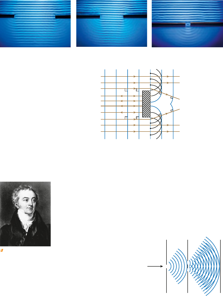 luz incidente (I) (II) (III) 334 UNIDADE 2 | ONDULATÓRIA Observe, na sequência de fotografias abaixo realizadas com ondas retas na super- fície da água, que a diminuição da largura da fenda acentua o fenômeno da difração. Se, em vez de uma fenda, essas ondas encontrassem um obstáculo, continuaríamos tendo difração. Nesse caso, as ondas se desviariam, contornando o obstáculo. A difração intensifica-se quando as dimensões da fenda ou do obstáculo são inferiores às do comprimento da onda ou pelo menos da mesma ordem de grandeza. 20. Experiência de Young Apesar de Christiaan Huygens ter publicado em 1690 o seu Tratado da luz, no qual defendia a teoria ondulatória para a luz, a teoria corpuscular idealizada por Isaac Newton permaneceu aceita pela comunidade científica. Em 1801, Thomas Young (1773-1829) demonstrou, baseado em sólidos resultados experimentais, a existência do fenômeno da interferência luminosa. Na experiência realizada por Young, foram usados três anteparos. No pri- meiro, havia um pequeno orifício, em que ocorria a primeira difração da luz monocromática. No segundo, havia dois orifícios, colocados lado a lado, em que novas difrações aconteciam com a luz já difratada no primeiro orifício. No último anteparo, eram projetadas as “manchas” de interferência e podiam ser observa- dos os máximos (regiões mais bem ilu- minadas) e os mínimos (regiões mal iluminadas) de intensidade. Quando os orifícios são substituídos por estreitas fendas, essas “manchas” tornam-se “franjas” de interferência, que são mais bem visualizadas. Thomas Young, médico e físico inglês, foi o primeiro a demonstrar a teoria ondulatória da luz com sólida base experimental. Suas descobertas reforçaram as teorias de Huygens publicadas no final do século XVII. B a n c o d e i m a g e n s /A rq u iv o d a e d it o ra B a n c o d e i m a g e n s /A rq u iv o d a e d it o ra R ic h a rd M e g n a /F u n d a m e n ta l P h o to g ra p h s S S P L /G e tt y I m a g e s 2CONECTEFIS_MERC18Sa_U2_Top2_p275a351.indd 334 7/7/18 2:27 PM x0 I anteparo III d D A B C Dx a a P y O (II) (III) 335TÓPICO 2 | ONDAS O esquema da página anterior mostra como Young obteve o espectro de interferência no anteparo III. O orifício único no primei- ro anteparo fazia com que a luz atingisse os orifícios do segundo anteparo em fase, transformando-os em “fontes” coerentes, já que pertenciam a uma mesma frente de onda. O esquema ao lado mostra a variação da intensidade da luz projetada no anteparo III. A “franja” central é o máximo de maior intensidade. Observe que para a direita e para a esquerda do máximo central temos, de forma intercalada, mínimos e máximos, sendo que os máximos apresentam intensidades decrescentes. Como as “fontes” (orifícios do segundo anteparo) são coeren- tes, isto é, estão em fase, as interferências observadas no ante- paro III dependem apenas da diferença (Dx) entre os caminhos percorridos pelos raios de luz. A luz que atravessa as fendas A e B se superpõe no anteparo III, pro- porcionando as franjas de interferência. Em O, a diferença de caminho (x) é nula. Porém, conforme a franja se distancia de O, em ambos os lados, x torna-se crescente. Na figura ao lado, para existir em P um máximo de intensidade (franja clara), é necessário que Dx contenha um número inteiro de comprimentos de onda ou um número par de meios comprimentos de onda. D 5 l x k 2 em que k 5 0, 2, 4, 6, ... Para existir em P um mínimo de intensidade (franja escura), é necessário que Dx contenha um número ímpar de meios comprimentos de onda. D 5 l x k 2 em que k 5 1, 3, 5, 7, ... Como D é da ordem de metros e d é da ordem de milímetros, AP, BP e CP são praticamente paralelos. Daí a igualdade dos ângulos a. No desenho que representa a experiência de Young, podemos observar que, sendo a distância d entre as fendas muito menor que a distância D entre os an- teparos II e III, o ângulo a é pequeno o suficiente para que seja válida a relação: sen a ù tg a. Assim, no triângulo retângulo pequeno, temos: a 5 D sen x d No triângulo retângulo CPO, temos: a 5tg y D Então, como sen a ù tg a, podemos escrever: D 5 x d y D , mas D 5 l x k 2 . Então: l 5k 2 yd D l 5 2yd kD B a n c o d e i m a g e n s /A rq u iv o d a e d it o ra B a n c o d e i m a g e n s /A rq u iv o d a e d it o ra Essa expressão pode ser usada para calcular a frequência ou o comprimento de onda da luz monocromática incidente no anteparo II. 2CONECTEFIS_MERC18Sa_U2_Top2_p275a351.indd 335 7/7/18 2:28 PM película ar ar raios que se interferem 336 UNIDADE 2 | ONDULATÓRIA Observe que y é a distância entre a franja considerada e o máximo central (a distância entre duas franjas claras ou entre duas franjas escuras consecutivas é a mesma), d é o espaçamento entre as duas fendas do anteparo II, D é a distância entre os anteparos II e III e k é um número inteiro relacionado com a ordem da franja: para k 5 0, 2, 4, ..., temos franjas claras; para k 5 1, 3, 5, ..., temos franjas escuras. 21. Interferência em películas delgadas As cores que observamos em bolhas de sabão ou em finas manchas de óleo no chão aparecem devido à interferência de raios de luz que refletem na sua superfície externa e interna. A diferença do caminho percorrido por esses dois raios e a inversão de fase na reflexão da superfície externa podem proporcionar interferências construtivas ou destrutivas entre eles. B a n c o d e i m a g e n s /A rq u iv o d a e d it o ra Procurando o sinal A telefonia celular é um dos serviços que mais crescem no mundo. No Brasil, o número de aparelhos celulares já ultrapassou o de telefones fixos. A principal característica da telefonia celular é a mobilidade, ou seja, com ela o usuário consegue estabelecer contatos telefônicos mesmo em deslocamento. Isso é possível porque a comunicação é feita sem o emprego de fios, utilizando-se ondas e
