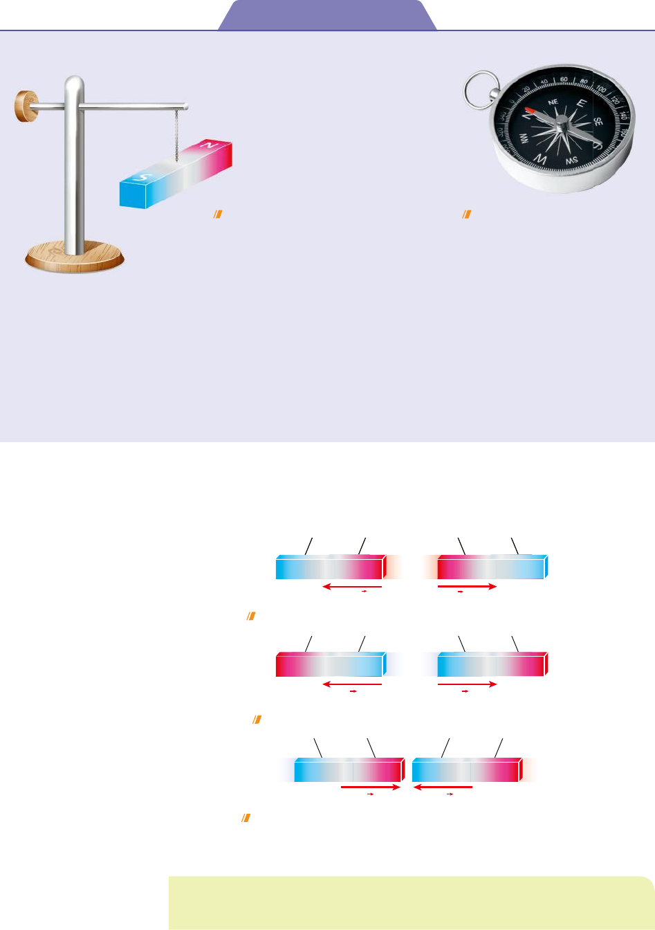 366 UNIDADE 3 | ELETROMAGNETISMO A bússola norte geográfico sul geográfico A polaridade norte de um ímã em barra, suspenso pelo seu centro de gravidade e com liberdade para girar, naturalmente aponta para uma região próxima do norte geográfico. Ao suspender um ímã pelo seu centro de gravidade, de tal modo que possa girar livremente, este, depois de ficar em equilíbrio, estará numa posição em que seus polos estarão aproximadamente alinhados à dire- ção norte-sul geográfica do local em que se encontra. Por convenção, a extremidade que aponta para o norte geográfico da Terra foi chamada de polo norte (N) do ímã, e a extremidade que aponta para o sul geográfico da Terra, de polo sul (S) do ímã. Esta propriedade dos ímãs permitiu aos chineses a invenção da bússola, que trouxe, para os povos antigos, maior precisão nos deslocamentos por terra, mares e oceanos, sendo fundamental no período das grandes navegações. Ampliando o olhar Atração e repulsão As forças magnéticas de atração e repulsão mútua que os ímãs exercem entre si são tais que: Entre dois polos magnéticos norte, há uma força de repulsão. Entre um polo magnético norte e um polo magnético sul, há uma força de atração. Portanto: Polos magnéticos de mesmo nome repelem-se e polos magnéticos de nomes diferentes atraem-se. F2F SNNS NS F2F SNNS N S Entre dois polos magnéticos sul, há uma força de repulsão. NSS F2F SNN S NS NSNS 2FF S NN NS NS B a n c o d e i m a g e n s /A rq u iv o d a e d it o ra B a n c o d e i m a g e n s / A rq u iv o d a e d it o ra B a n c o d e i m a g e n s / A rq u iv o d a e d it o ra B a n c o d e i m a g e n s / A rq u iv o d a e d it o ra As bússolas nos fornecem, de modo aproximado, a direção norte-sul geográfica das regiões em que se encontram. O lg a P o p o v a /S h u tt e rs to ck 3CONECTEFIS_MERC18Sa_U3_Top1_p362a407.indd 366 9/13/18 9:48 AM 367TÓPICO 1 | INTRODUÇÃO AO ELETROMAGNETISMO Maglev: os trens capazes de levitar! O nome Maglev é derivado do termo “Magnetic Levitation”. Maglev são trens que uti- lizam propriedades magnéticas para se mover. O sistema de trilhos é formado por dois con- juntos de fortes ímãs, um deles responsável por fazer o trem literalmente levitar, por meio da repulsão magnética, o que elimina o atrito que ocorre entre trens comuns e o solo, respon- sáveis por uma grande dissipação de energia por Efeito Joule (ou seja, gerando calor). O atri- to dos trens convencionais com os trilhos, além de desperdiçar mais energia, é um grande limitador da velocidade que tais trens conse- guem alcançar. O segundo sistema de ímãs dos Maglevs é responsável pela movimentação dos trens. Como o trem movimenta-se enquanto é levitado, ele é “empurrado” para frente por forças magnéticas, sem que haja necessidade de nenhum tipo de roda. Desse modo, além de conseguir alcançar velocidades bem maiores, em geral entre 300-600 km/h, esses trens são extremamente silenciosos e muito mais estáveis. Em geral, o que limita suas velocidades é o atrito com o próprio ar, mas, ainda assim, recordes de velocidade vêm sendo quebrados conforme a tecnologia evolui. O recorde atual de velocidade é do sistema japonês, que em 2015 conseguiu alcançar 603 km/h. Ao redor do mundo, os Maglevs ainda são minoria, quando comparados com trens convencionais. Isso ocorre em função do alto custo de implementação das linhas, já que tanto os trens quanto os trilhos utilizam uma tecnologia diferente e mais custosa do que os trens convencionais. Embora testes já tenham sido realizados em diversos países, Maglevs são utilizados comercialmente, até 2018, apenas no Japão, na Coreia do Sul e na China. Projetos de expansão das linhas existem nesses países, e lugares como Austrá- lia, Estados Unidos, Índia, Alemanha, entre outros, possuem projetos em andamento para implementação de linhas novas. JÁ PENSOU NISSO? Princípio da inseparabilidade dos polos Como já sabemos, todo ímã é sempre dotado de um polo magnético norte e um sul. Isso significa que, mesmo atualmente, não foi identificado nenhum ímã com apenas um polo magnético (também chamado de monopolo magnético). Se cor- tarmos um ímã ao meio, verifica-se que cada parte do ímã cortado se comporta como um novo ímã completo, com polos magnéticos norte e sul. Cada ímã cortado ao meio produz dois novos ímãs, cada qual dotado de um polo magnético norte e um sul. NSS NN SS SNS N S N NS B a n c o d e i m a g e n s /A rq u iv o d a e d it o ra Imagem mostra um trem Maglev percorrendo a linha de Shangai, na China. A imagem borrada da cidade ao fundo dá uma perspectiva da velocidade alcançada pelo trem magnético. c y o b o /S h u tt e rs to ck Se o corte de um ímã ocorresse indefinidamente, obteríamos, em nível micros- cópico, os ímãs elementares, mas mesmo nesse nível, os ímãs têm sempre seus dois polos magnéticos, norte e sul. 3CONECTEFIS_MERC18Sa_U3_Top1_p362a407.indd 367 9/13/18 9:48 AM 368 UNIDADE 3 | ELETROMAGNETISMO Terra, um gigantesco ’m‹ Por muito tempo, pensadores e cientistas buscaram explicações para o funcionamento das bússolas, que se orientam aproximadamente na direção norte-sul geográfica da Terra. Somente por volta do ano de 1600, na obra intitulada De Magnete, publicada pelo médico inglês Willian Gilbert, foi formulada uma teoria consistente para explicar esse fenômeno. As ideias de Gilbert apontavam para o fato de a Terra comportar-se como um ímã gigante. De acordo com Gilbert, os polos geográficos da Terra seriam também grandes polos magnéticos. A agulha magnética de uma bússola se alinha com o campo magnético resultante que interage com ela e, na ausência de outros geradores de campo magnético (como ímãs, por exemplo), o campo magné- tico resultante que irá interagir com uma bússola será o campo magnético da Terra. Em outras palavras, as bússolas, de fato, mostram a direção dos