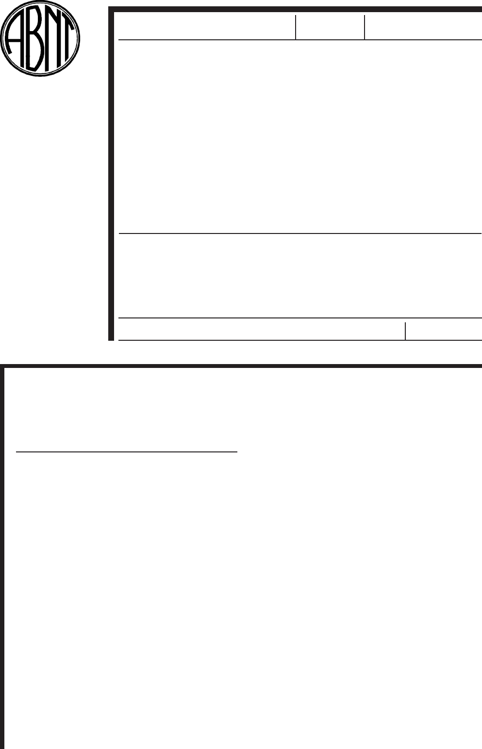 Palavra-chave: Desenho técnico 4 páginas Execução de caracter para escrita em desenho técnico NBR 8402MAR 1994 Origem: Projeto NBR 8402/1993 CB-04 - Comitê Brasileiro de Máquinas e Equipamentos Mecânicos CE-04:005.04 - Comissão de Estudo de Desenho Técnico Geral e de Mecânica NBR 8402 - Technical drawing character execution - Procedure Descriptor: Technical drawing Esta Norma substitui a NBR 8402/1984 Válida a partir de 02.05.1994 Procedimento SUMÁRIO 1 Objetivo 2 Condições gerais 3 Condições específicas ANEXO - Exemplos de escrita 1 Objetivo Esta Norma fixa as condições exigíveis para a escrita usa- da em desenhos técnicos e documentos semelhantes. 2 Condições gerais 2.1 As principais exigências na escrita em desenhos técni- cos são: a) legibilidade; b) uniformidade; c) adequação à microfilmagem e a outros processos de reprodução. 2.2 Para preencher os requisitos de 2.1, devem ser obser- vadas as regras citadas em 2.2.1 a 2.2.4. 2.2.1 Os caracteres devem ser claramente distinguíveis entre si, para evitar qualquer troca ou algum desvio míni- mo da forma ideal. 2.2.2 Para a microfilmagem e outros processos de repro- dução é necessário que a distância entre caracteres (a) corresponda, no mínimo, à duas vezes a largura da linha (d), conforme Figura 1 e Tabela. Nota: No caso de larguras de linha diferentes, a distância deve corresponder à da linha (d) mais larga. 2.2.3 Para facilitar a escrita, deve ser aplicada a mesma largura de linha para letras maiúsculas e minúsculas. 2.2.4 Os caracteres devem ser escritos de forma que as linhas se cruzem ou se toquem, aproximadamente, em ângulo reto. 2.3 A altura h possui razão 2 correspondente à razão dos formatos de papel para desenho técnico. 3 Condições específicas 3.1 A altura h das letras maiúsculas deve ser tomada co- mo base para o dimensionamento (ver Figura 1 e Tabela). 3.2 As alturas h e c não devem ser menores do que 2,5 mm (ver Figura 1). Na aplicação simultânea de letras maiús- culas e minúsculas, a altura h não deve ser menor que 3,5 mm. 3.3 A escrita pode ser vertical ou inclinada, em um ângu- lo de 15° para a direita em relação à vertical (ver Figuras 2 e 3 do Anexo). Copyright © 1994, ABNT–Associação Brasileira de Normas Técnicas Printed in Brazil/ Impresso no Brasil Todos os direitos reservados Sede: Rio de Janeiro Av. Treze de Maio, 13 - 28º andar CEP 20003-900 - Caixa Postal 1680 Rio de Janeiro - RJ Tel.: PABX (021) 210-3122 Fax: (021) 220-1762/220-6436 Endereço Telegráfico: NORMATÉCNICA ABNT-Associação Brasileira de Normas Técnicas Licença de uso exclusivo para Target Engenharia e Consultoria Ltda Cópia impressa pelo sistema GEDWEB em 22/09/2004 2 NBR 8402/1994 Tabela - Proporções e dimensões de símbolos gráficos Características Relação Dimensões (mm) Altura das letras maiúsculas h (10/10) h 2,5 3,5 5 7 10 14 20 Altura das letras minúsculas c (7/10) h - 2,5 3,5 5 7 10 14 Distância mínima entre a (2/10) h 0,5 0,7 1 1,4 2 2,8 4 caracteres (A) Distância mínima entre b (14/10) h 3,5 5 7 10 14 20 28 linhas de base Distância mínima entre e (6/10) h 1,5 2,1 3 4,2 6 8,4 12 palavras Largura da linha d (1/10) h 0,25 0,35 0,5 0,7 1 1,4 2 (A) Para melhorar o efeito visual, a distância entre dois caracteres pode ser reduzida pela metade, como por exemplo: LA, TV, ou LT, nes- te caso a distância corresponde à largura da linha “d”. Figura 1 - Características da forma de escrita /ANEXO Licença de uso exclusivo para Target Engenharia e Consultoria Ltda Cópia impressa pelo sistema GEDWEB em 22/09/2004 NBR 8402/1994 3 A.2 Acentos e outros caracteres não exemplificados de- vem ser executados com base nos princípios estabele- cidos nesta Norma. A.1 Os exemplos das Figuras 2 e 3 são válidos ape- nas como aplicação dos fundamentos definidos nesta Norma. ANEXO - Exemplos de escrita Figura 2 - Forma da escrita vertical Licença de uso exclusivo para Target Engenharia e Consultoria Ltda Cópia impressa pelo sistema GEDWEB em 22/09/2004 4 NBR 8402/1994 Figura 3 - Forma de escrita inclinada Licença de uso exclusivo para Target Engenharia e Consultoria Ltda Cópia impressa pelo sistema GEDWEB em 22/09/2004