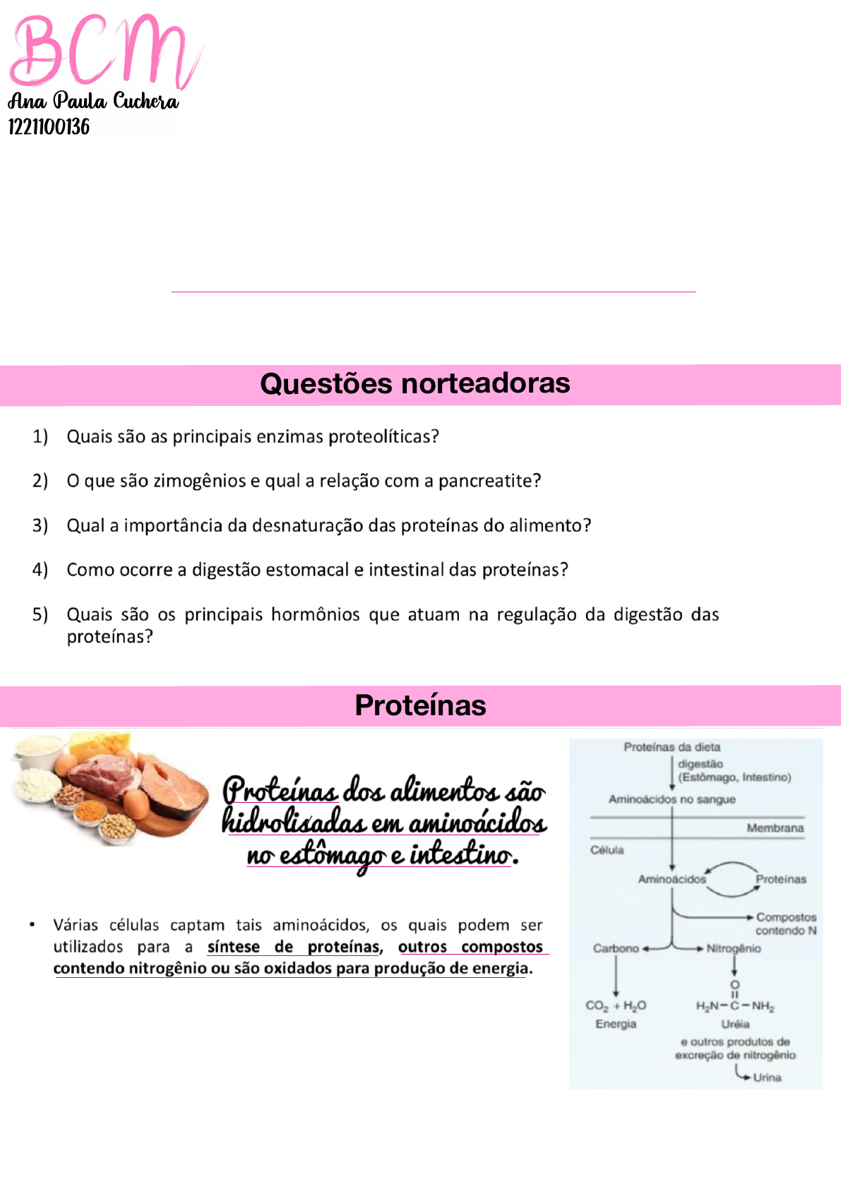 → Digestão de proteínas - o produto final serão aminoácidos ( hidrólise)
