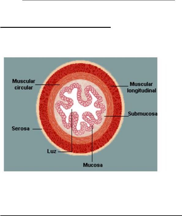 01- FUNCIÓN MOTORA Y SECRETORA RANDY MEJÍAS GONZÁLEZ Página 1 de 28 En el sistema digestivo se evidencia una estrecha relación estructura-función: la presencia de millones de glándulas en la mucosa y la submucosa relacionadas con la secreción de enzimas, electrolitos y hormonas garantizan la función digestiva y la producción de moco que entre otras funciones protege la mucosa; las especializaciones estructurales de la pared están estrechamente vinculadas con la absorción de los nutrientes; las capas musculares responsables de la motilidad, facilitan el avance de los alimentos ingeridos y su mezcla con los jugos digestivos; la existencia de abundantes células enteroendocrinas secretoras de hormonas gastroenteropancreáticas funcionan como el “mayor” órgano endocrino del organismo; la organización linfática es responsable de la más grande actividad inmunológica; y la rica vascularización sanguínea y linfática garantizan la incorporación del agua y electrolitos indispensables para la vida y el transporte de los nutrientes absorbidos al hígado donde son metabolizados. En la realización de su función digestiva intervienen varios procesos entre los que se distinguen: la ingestión, la progresión del contenido, la mezcla, la secreción, la digestión propiamente dicha y la absorción, que se llevan a cabo en las estructuras de este sistema, compuesto por el tubo digestivo o canal alimentario y las glándulas anexas: salivales, el hígado y el páncreas. La motilidad, la secreción, la digestión y la absorción conocidas como funciones básicas, establecen un orden lógico del proceso de transformación de los alimentos en nutrientes. No todas las funciones ocurren con la misma intensidad en los diferentes segmentos del sistema digestivo, éstas dependen de las características de la estructura local y los mecanismos reguladores nerviosos y hormonales. Importantes funciones del sistema digestivo: Función endocrina Función inmunológica Función de la microbiota Papel del sistema digestivo en la función de la nutrición. Ψ Aporte de nutrientes, agua, electrolitos y vitaminas. Ψ Defensa a través de la función inmunológica y la barrera protectora (se completa en el hígado). Idea rectora del sistema digestivo: La incorporación al medio interno de nutrientes, requiere transformaciones físicas y químicas de los alimentos a lo largo del tracto digestivo, en la que participan las glándulas anexas. Este es un proceso estrechamente regulado. La figura muestra un corte transversal típico de la pared intestinal, formada de fuera a dentro por las capas siguientes: 1) serosa 2) capa muscular lisa longitudinal 3) capa muscular lisa circular 4) submucosa 5) mucosa Además, la zona profunda de la mucosa contiene haces dispersos de fibras de músculo liso, la muscularis mucosae. Las funciones motoras gastrointestinales dependen de sus distintas capas de músculo liso. Mucosa --------------------- ESPECIALIZACIONES -------------------- DIGESTION y ABSORCIÓN Submucosa -------------- GLÁNDULAS --------------------------------- SECRECIÓN Muscular Longitudinal-Circular/Serosa ----------------------------- MOTILIDAD MÚSCULO LISO GASTROINTESTINAL: SU FUNCIÓN COMO SINCITIO. En la capa muscular longitudinal, los haces se extienden en sentido longitudinal por el tubo digestivo, mientras que en la capa muscular circular lo rodean. En cada haz, las fibras musculares están conectadas eléctricamente unas a otras mediante un gran número de uniones intercelulares en hendidura que permiten el paso de los iones de unas células a otras con escasa resistencia. Por tanto, las señales eléctricas que inician las contracciones musculares pueden viajar con rapidez de una fibra a otra dentro de cada haz, pero aún más deprisa en sentido longitudinal que en sentido lateral. Cada haz de fibras musculares lisas se encuentra separado en parte del siguiente por tejido conjuntivo laxo, pero los haces se fusionan entre ellos en muchos puntos, de modo que, en realidad, cada capa muscular representa una trama ramificada de haces de músculo liso. Así pues, cada capa muscular actúa como un sincitio y cuando aparece en algún punto de la masa muscular un potencial de acción, este se transmite por ella en todas las direcciones. La distancia recorrida depende de la excitabilidad del 01- FUNCIÓN MOTORA Y SECRETORA RANDY MEJÍAS GONZÁLEZ Página 2 de 28 músculo; a veces, se detiene después de sólo unos milímetros y otras, atraviesa varios centímetros o incluso toda la longitud y anchura del tubo digestivo. Además, existen unas pocas conexiones entre las capas musculares longitudinal y circular, por lo que la excitación de una de ellas suele estimular también la otra Procesos regulables en el sistema digestivo: motilidad y secreción. Funciones básicas del sistema digestivo: Motora, Secretora, Digestiva, Absortiva La actividad motora del sistema digestivo depende de tres factores fundamentales: el factor miógeno el factor neurógeno el factor humoral El factor miógeno ֍ depende de la musculatura gastrointestinal distribuida en dos capas de músculo liso: la capa interna de fibras dispuestas en forma circular es generalmente más gruesa que la capa externa longitudinal; el gran desarrollo motor cuenta además con una capa intermedia oblicua. en ambos extremos del tubo el músculo es estriado y forman el esfínter esofágico superior y el esfínter anal externo respectivamente. En el músculo liso visceral existe una particularidad estructural que facilita la transmisión de la actividad eléctrica de una célula a otra: los nexos o uniones en hendidura, que dan origen a un sincitio funcional. El tubo digestivo realiza dos tipos de movimientos: el de propulsión y el de mezcla. El movimiento de propulsión es el peristaltismo, propiedad inherente a muchas estructuras tubulares con músculo liso sincitial. La estimulación de cualquier punto del mismo origina un anillo de contracción