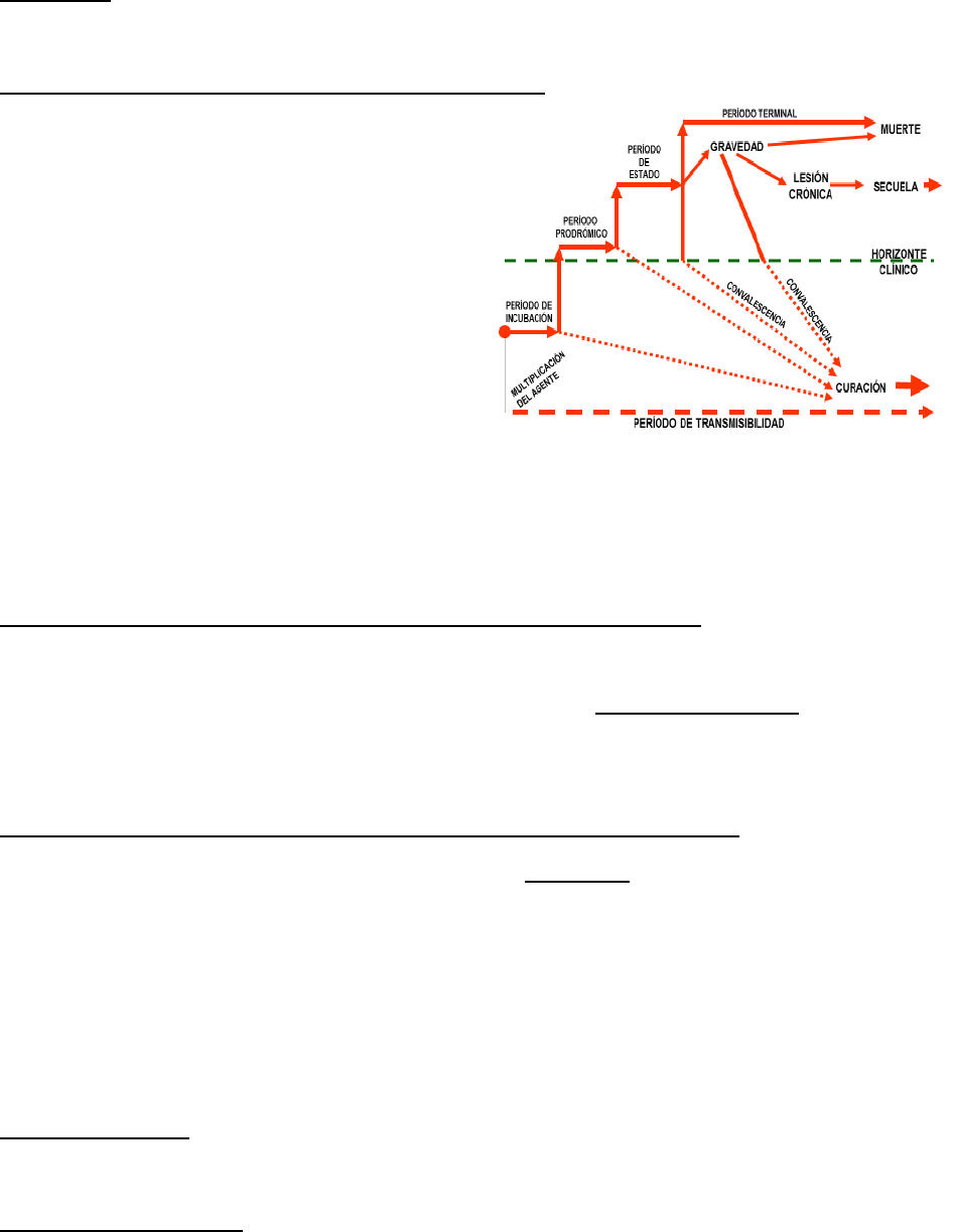 03- ENFERMEDADES TRANSMISIBLES EN LA APS. RANDY MEJÍAS GONZÁLEZ Página 1 de 8 Enfermedad transmisible Enfermedad transmisible es cualquier afección causada por un agente infeccioso específico o sus productos tóxicos, que se manifiesta por la transmisión del mismo agente o sus toxinas de una persona o animal infectado o de un reservorio inanimado a un huésped susceptible, de forma directa o indirecta, por medio de un huésped intermediario, de naturaleza vegetal o animal, de un vector o del ambiente inanimado INFECCIÓN Es la entrada y el desarrollo o multiplicación de un agente infeccioso en el organismo de una persona o de un animal, sin que generalmente haya signos ni síntomas de la enfermedad que ellos producen ETAPAS DEL PROCESO INFECCIOSO EN EL INDIVIDUO. 1. Período de incubación. El tiempo que transcurre desde que el agente biológico penetra en el huésped susceptible, hasta la aparición de los primeros síntomas y signos de la enfermedad. 2. Período prodrómico. Es el tiempo durante el cual el paciente sufre de algunos síntomas generales e inespecíficos, pero no tiene signos ni síntomas propios de la enfermedad en cuestión. 3. Período de estado. Se extiende desde que aparecen los signos y síntomas típicos de la enfermedad, hasta que estos desaparecen por la curación clínica. Durante este período se hace evidente la enfermedad. 4. Período terminal. Es cuando la enfermedad entra en su etapa final, el enfermo puede evolucionar hacia la agravación de su cuadro y puede, inclusive, fallecer por esta causa o la evolución puede ser favorable, e ir hacia la convalecencia, posconvalecencia y curación. 5. Período de transmisibilidad. Es el tiempo durante el cual las personas que padecen la enfermedad infecciosa se mantienen eliminando agentes infecciosos al medio ambiente, o sea, el tiempo en que el individuo es contagioso o infectante. CADENA EPIDEMIOLÓGICA DE LAS ENFERMEDADES TRANSMISIBLES (MODELO DE GAYLORD ANDERSON (6 ESLABONES) 1. AGENTE 2. RESERVORIO 3. PUERTA DE SALIDA 4. VÍA DE TRANSMISIÓN 5. PUERTA DE ENTRADA 6. HUÉSPED SUSCEPTIBLE CADENA EPIDEMIOLÓGICA DE LAS ENFERMEDADES TRANSMISIBLES MODELO DEL DR. GABRIEL TOLEDO (10 ESLABONES) 1. AGENTE 2. RESERVORIO 3. PUERTA DE SALIDA 4. VEHÍCULO DE SALIDA 5. FUENTE DE CONTAMINACIÓN 6. FUENTE DE INFECCIÓN 7. VÍA Y MECANISMO DE TRANSMISIÓN 8. CONTACTO EFECTIVO 9. PUERTA DE ENTRADA 10. HUÉSPED SUSCEPTIBLE Fuente de infección. Es generalmente un elemento inanimado del cual los agentes biológicos de las enfermedades pasan inmediatamente al huésped susceptible, es decir es el elemento directamente infectante para el hombre. Fuente de contaminación: Es aquel elemento del ecosistema que contamina a la fuente de infección TRIADA ECOLOGICA VIA DE TRANSMISION AGENTE HUESPED SUCEPTIBLE Reservorio Guarida natural donde habita el agente causal y de la cual depende su supervivencia, multiplicación y reproducción, está representado por el hombre, animal, y excepcionalmente por un elemento inanimado, a partir del que puede ser transmitido a un huésped susceptible. Este puede ser: 1. RESERVORIO HUMANO 2. RESERVORIO MIXTO 3. RESERVORIO ANIMAL 03- ENFERMEDADES TRANSMISIBLES EN LA APS. RANDY MEJÍAS GONZÁLEZ Página 2 de 8 Puerta de Salida Es el sitio del reservorio por donde salen al medio ambiente los agentes causales de las enfermedades transmisibles. o Digestiva: Vibrio cholerae o Respiratoria: Neisseria meningitidis. o Urinaria: Leptospirosis. o Piel y mucosas lesionadas: Neisseria gonorrhoeae. o Mecánica: Dengue, VIH. Clasificación de las enfermedades transmisibles Digestiva: Enfermedades diarreicas agudas, fiebre tifoidea, cólera, hepatitis A. Respiratoria: Infecciones respiratorias agudas, tuberculosis pulmonar, sarampión Contacto de piel y mucosas: Blenorragia, sífilis, SIDA, leptospirosis, rabia Vectores (artrópodos y roedores): Paludismo, dengue. No bien precisada o determinada: Lepra. LA VÍA DE TRANSMISIÓN • Representa la forma general regular de enlazarse la puerta de salida del reservorio con la puerta de entrada del susceptible en cualquier lugar y tiempo. • Sobre ella se diseñan las estrategias de aplicación de las medidas generales de control comunes. • Clasifica en forma práctica y operativa a las enfermedades infecciosas para su control en 4 grandes grupos: respiratorias, digestivas, por contacto y vectoriales. 03- ENFERMEDADES TRANSMISIBLES EN LA APS. RANDY MEJÍAS GONZÁLEZ Página 3 de 8 EL MECANISMO DE TRANSMISIÓN • Representa la forma singular especifica de operar la cadena de transmisión en un momento del tiempo y lugar dados. • Sobre el mecanismo de la transmisión se aplican las medidas de lucha antiepidémica o de control de foco específicas. • Clasifica operativamente a la relación témporo-espacial entre el reservorio y los susceptibles expuestos en 2 grandes grupos: Directo e indirecto VÍA DE TRANSMISIÓN RESPIRATORIA • Reservorio y susceptible tienen que encontrarse en el mismo tiempo y espacio. • Los mecanismos de transmisión son fundamentalmente directos: inmediato (contacto físico) e inmediato (contacto personal) VÍA DE TRANSMISIÓN DIGESTIVA • Reservorio y susceptible no se encuentran habitualmente en el mismo tiempo y espacio. • Los mecanismos de transmisión son fundamentalmente indirectos: manos, agua, alimentos, vectores mecánicos, fómites VÍA DE TRANSMISIÓN POR CONTACTO • Reservorio y susceptible tienen que encontrarse en el mismo tiempo y espacio en el caso de las ITS. y los lesionados por animales. • en las restantes, reservorio y susceptible se hallan en tiempos y espacios diferentes. • Los mecanismos de transmisión son fundamentalmente directos: inmediato (contacto físico) e indirecto (exposición a líquidos, fluidos y sangre contaminados). VÍA DE TRANSMISIÓN VECTORIAL • Reservorio y susceptible se hallan en tiempos y espacios diferentes. • El mecanismo de transmisión es siempre indirecto. (mediante el vector e