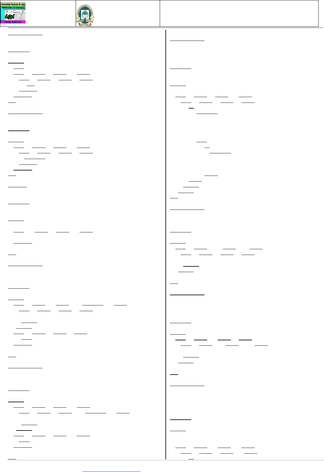 Facultad de Ingeniería de la Universidad Nacional de Jujuy Gorriti 237 - 4600 San Salvador de Jujuy - ArgentinaTel: 54-88-221577 Fax: 54-88-221579 Introducción a la informática http://virtual.unju.edu.ar pág. - 1 - INTRODUCCIÓN A LA INFORMÁTICA FACULTAD DE INGENIERÍA UNIVERSIDAD NACIONAL DE JUJUY OPERACIONES BÁSICAS CON MATRICES Procedimiento CargarMatriz (A, f, c) [Tmatriz: A parámetro por referencia] [entero: f, c parámetro por referencia] variable entero: i, j inicio leer f, c para i desde 1 hasta f hacer para j desde 1 hasta c hacer leer A(i, j) finpara finpara fin [CargarMatriz] Procedimiento MostrarMatriz (A, f, c) [Tmatriz: A parámetro por valor] [entero: f, c parámetro por valor] variable entero: i, j inicio para i desde 1 hasta f hacer para j desde 1 hasta c hacer escribir A(i, j) finpara finpara fin [MostrarMatriz] Funcion SumaFilaMatriz (A, f, c, fil): tipo base matriz [Tmatriz: A parámetro por valor] [entero: f, c, fil parámetro por valor] variable tipo base matriz: S entero: j inicio S ← 0 para j desde 1 hasta c hacer S ← S + A(fil, j) finpara SumaFilaMatriz ← S fin [SumaFilaMatriz] Procedimiento InsertarFila(A, f, c, pos) [Tmatriz: A parámetro por referencia] [entero: f parámetro por referencia] [entero: c, pos parámetro por valor] variable entero: i, j inicio para i desde f hasta pos con paso -1 hacer para j desde 1 hasta c hacer A(i+1, j) A(i, j) finpara finpara para j desde 1 hasta c hacer leer A(pos, j) finpara f f + 1 fin [InsertarFila] Procedimiento InsertarColumna(A, f, c, pos) [Tmatriz: A parámetro por referencia] [entero: c parámetro por referencia] [entero: f, pos parámetro por valor] variable entero: i, j inicio para i desde 1 hasta f hacer para j desde c hasta pos con paso -1 hacer A(i, j+1) A(i, j) finpara finpara para i desde 1 hasta f hacer leer A(i, pos) finpara c c + 1 fin [InsertarColumna] Procedimiento MaxFilCol(A, f, c, Max, maxfil, maxcol) [Tmatriz: A parámetro por valor] [entero: f, c parámetro por valor] [tipo base matriz: Max parámetro por referencia] [entero: maxfil, maxcol parámetro por referencia] variable entero: i, j lógico: band inicio band ← v para i desde 1 hasta f hacer para j desde 1 hasta c hacer si band entonces Max ← A(i, j) maxfil ← i maxcol ← j band ← f sino si A(i, j) > max entonces Max ← A(i, j) maxfil ← i maxcol ← j finsi finsi finpara finpara fin [MaxFilCol] Procedimiento EliminarFila(A, f, c, pos) [Tmatriz: A parámetro por referencia] [entero: f parámetro por referencia] [entero: c, pos parámetro por valor] variable entero: i, j inicio para i desde pos hasta f-1 hacer para j desde 1 hasta c hacer A(i, j) A(i+1, j) finpara finpara f f - 1 fin [EliminarFila] Procedimiento EliminarColumna(A, f, c, pos) [Tmatriz: A parámetro por referencia] [entero: f parámetro por valor] [entero: c parámetro por referencia] [entero: pos parámetro por valor] variable entero: i, j inicio para i desde 1 hasta f hacer para j desde pos hasta c -1 hacer A(i, j) A(i, j+1) finpara finpara c c - 1 fin [EliminarColumna] Procedimiento Buscar_X_Mat (A, f, c, X, xfil ,xcol) [Tmatriz: A parámetro por valor] [entero: f parámetro por valor] [entero: c parámetro por valor] [tipo de dato de la matriz: X parámetro por valor] [entero: xfil, xcol parámetro por referencia] variable entero: i, j inicio xfil ← 0 xcol ← 0 para i desde 1 hasta f hacer para j desde1 hasta c hacer si A(i, j) = X Facultad de Ingeniería de la Universidad Nacional de Jujuy Gorriti 237 - 4600 San Salvador de Jujuy - ArgentinaTel: 54-88-221577 Fax: 54-88-221579 Introducción a la informática http://virtual.unju.edu.ar pág. - 2 - INTRODUCCIÓN A LA INFORMÁTICA FACULTAD DE INGENIERÍA UNIVERSIDAD NACIONAL DE JUJUY OPERACIONES BÁSICAS CON MATRICES entonces xfil ← i xcol ← j finsi finpara finpara fin [Buscar_X_Mat] Procedimiento Agregar_Fila(A, f, c) [Tmatriz: A parámetro por referencia] [entero: f parámetro por referencia] [entero: c parámetro por valor] variable entero: i, j inicio para j desde 1 hasta c hacer leer A(f+1, j) finpara f f + 1 fin [Agregar_Fila] Procedimiento Agregar_Columna (A, f, c) [Tmatriz: A parámetro por referencia] [entero: f parámetro por valor] [entero: c parámetro por referencia] variable entero: i, j inicio para i desde 1 hasta f hacer leer A(i, c+1) finpara c c + 1 fin [Agregar_Columna] Procedimiento BuscarPrimoSec (A, f, c, xfil , xcol) [Tmatriz: A parámetro por valor] [entero: f parámetro por valor] [entero: c parámetro por valor] [entero: xfil, xcol parámetro por referencia] variable entero: i, j inicio xfil ← 0 xcol ← 0 para i desde 1 hasta f hacer para j desde1 hasta c hacer si Primo (A(i, j)) entonces xfil ← i xcol ← j finsi finpara finpara fin [BuscarPrimoSec] Procedimiento BuscarPrimoMejorado (A, f, c, xfil , xcol) [Tmatriz: A parámetro por valor] [entero: f, c parámetro por valor] [entero: xfil, xcol parámetro por referencia] variable entero: i, j logico: encontrado inicio xfil ← 0 xcol ← 0 i ←1 encontrado ← f mientras (i <= f) Y no encontrado hacer j ← 1 mientras (j<=c) Y no encontrado hacer si Primo (A(i, j)) entonces xfil ← i xcol ← j encontrado ← v sino j ← j +1 finsi finmientras i ← i +1 finmientras fin [BuscarPrimoMejorado]