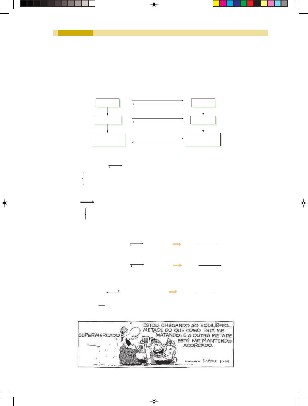 R ep ro du çã o pr oi bi da .A rt .1 84 do C ód ig o P en al e Le i9 .6 10 de 19 de fe ve re iro de 19 98 . 188 1ª Na expressão algébrica de Kc, convencionou-se escrever, no numerador, as concentrações dos produtos da reação química, e no denominador, as dos reagentes. Essa convenção é útil porque, quando uma reação “caminha” bastante para chegar ao equilíbrio (isto é, quando há bastante formação de produtos e pouca sobra de reagentes), resultarão valores elevados tanto para o grau de equilíbrio (α) como para a constante de equilíbrio (Kc) — o que é coerente com a idéia de reação de grande extensão (ou de alto rendimento). 2ª Enquanto a variação de α é limitada entre zero e um (0 ' α ' 1 ou 0 ' α% ' 100%), a variação de Kc não tem limitações, podendo ir desde valores extremamente baixos até valores extremamente elevados (veja que no último exemplo da página 186, temos Kc % 7,3 " 10 #13, e no primeiro exemplo, Kc % 4,0 " 10 31). Podemos fazer a seguinte comparação: OBSERVAÇÕES Evidentemente, uma reação reversível nunca chegará a ter α % 1 (ou α% % 100%). Mas, voltando aos exemplos da página 186, é muito importante entender que: • H2 (g) " Cl2 (g) 2 HCl (g) a 27 °C α % 0,9999 (valor muito próximo de 1) Kc % 4,0 " 10 31 (valor muito grande, ou seja, Kc é muito maior que 1) Essa reação terá, no equilíbrio, uma grande quantidade de HCl formado, sobrando quase nada de H2 e Cl2; trata-se de uma reação praticamente completa. • F2 (g) 2 F (g) a 227 °C α % 0,0000004 (valor próximo de zero) Kc % 7,3 " 10 #13 (valor muito pequeno, ou seja, Kc é muito menor que 1) Essa reação, no equilíbrio, terá produzido quase nada de F, sobrando quase todo o F2 inicial sem reagir. 3ª O valor numérico de Kc depende de como é escrita a equação química. Por exemplo: H2 (g) " Cl2 (g) 2 HCl (g) Kc 2 2 2 31[HC ] H C ] 4,0 10% %l l[ ][ " Se a equação for, por exemplo, multiplicada por 2, teremos: 2 H2 (g) " 2 Cl2 (g) 4 HCl (g) Kc 4 2 2 2 2 62’ [HC ] H C ] 16,0 10% %l l[ ] [ " Concluímos, nesse caso, que: K’c % Kc 2 Se a primeira equação fosse invertida, teríamos: 2 HCl (g) H2 (g) " Cl2 (g) K c 2 2 2 31” [H ][C ] HC ] 0,25 10% % # l l[ " Nesse caso: K Kc c ” 1% Por esse motivo, deve-se sempre escrever a equação química junto com o valor de Kc. α % 0 K c pequeno α aumenta α diminui Reação de baixo rendimento α % 1 K c grande Reação de alto rendimento Kc aumenta Kc diminui Aumenta o rendimento Diminui o rendimento 20 04 U N IT E D M E D IA / IN TE R C O N TI N E N TA L P R E S S Capitulo 05A-QF2-PNLEM 4/6/05, 17:04188 R ep ro du çã o pr oi bi da .A rt .1 84 do C ód ig o P en al e Le i 9 .6 10 de 19 de fe ve re iro de 19 98 . 189Capítulo 5 • EQUILÍBRIOS QUÍMICOS HOMOGÊNEOS 4ª Kc tem por unidade mol/L, elevado a uma potência que, dependendo da equação química, poderá ser zero ou um número inteiro ou fracionário, positivo ou negativo. Por exemplo: 2 NH3 N2 " 3 H2 Kc % (mol/L) 2 N2O4 2 NO2 Kc % mol/L CO " NO2 CO2 " NO Kc % Número puro (adimensional) H2 " 1 2 O2 H2O Kc (mol/L) 1 2% # No entanto é muito comum encontrar questões em que essas unidades não são mencionadas. 1 (Cefet-PR) Com relação ao equilíbrio químico, afirma-se: I. O equilíbrio químico só pode ser atingido em sistema fechado (onde não há troca de matéria com o meio ambiente). II. Num equilíbrio químico, as propriedades macroscópi- cas do sistema (concentração, densidade, massa e cor) permanecem constantes. III. Num equilíbrio químico, as propriedades microscópi- cas do sistema (colisões entre as moléculas, formação de complexos ativados e transformações de umas subs- tâncias em outras) permanecem em evolução, pois o equilíbrio é dinâmico. É (São) correta(s) a(s) afirmação(ões): a) Somente I e II. d) Somente I. b) Somente I e III. e) I, II e III. c) Somente II e III. 2 (UFPE) Óxidos de nitrogênio, NOx, são substâncias de interesse ambiental, pois são responsáveis pela destrui- ção de ozônio na atmosfera, e, portanto, suas reações são amplamente estudadas. Num dado experimento, em um recipiente fechado, a concentração de NO2 em fun- ção do tempo apresentou o seguinte comportamento: O papel de NO2 nesse sistema reacional é: a) reagente. c) produto. e) inerte. b) intermediário. d) catalisador. 3 (UFPE) No início do século XX, a expectativa da Primeira Guerra Mundial gerou uma grande necessidade de com- postos nitrogenados. Haber foi o pioneiro na produção de amônia, a partir do nitrogênio do ar. Se a amônia for colocada num recipiente fechado, sua decomposição ocorrerá de acordo com a seguinte equação química não- balanceada: NH3 (g) N2 (g) " H2 (g) As variações das concentrações com o tempo estão ilus- tradas na figura abaixo. C on ce nt ra çã o Tempo0 A partir da análise da figura acima, podemos afirmar que as curvas A, B e C representam a variação temporal das concentrações dos seguintes componentes da reação, respectivamente: a) H2, N2 e NH3 d) N2, H2 e NH3 b) NH3, H2 e N2 e) H2, NH3 e N2 c) NH3, N2 e H2 C on ce nt ra çã o Tempo B A C a) O que é reação reversível? b) O que é equilíbrio químico? c) Quando um equilíbrio é homogêneo e quando é heterogêneo? d) O que é grau de equilíbrio? e) Escreva a expressão da constante de equilíbrio em função das concentrações mola- res, Kc, para a reação a A " b B x X " y Y. f) Qual o valor máximo e o mínimo do grau de equilíbrio? A constante de equilíbrio possui um valor máximo e um mínimo? Ela pode ser negativa? REVISÃO Responda emseu caderno EXERCÍCIOS Registre as respostasem seu caderno Capitulo 05A-QF2-PNLEM 4/6/05, 17:04189 R ep ro du çã o pr oi bi da .A rt .1 84 do C ód ig o P en al e Le i9 .6 10 de 19 de fe ve re iro de 19 98 . 190 Exercício resolvido 4 (Fuvest-SP) Em condições industrialmente apropriadas para obter amônia, juntaram-se quantidades estequio- métricas 