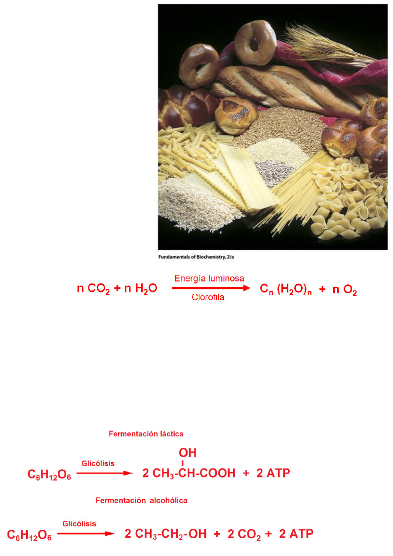 Temas Selectos de Bioquímica General Material para uso educativo y no de lucro Elaborado por: Sergio F. Moreno Salazar 28 Carbohidratos = Glúcidos = Hidratos de carbono = Azúcares Los carbohidratos son los compuestos orgánicos naturales mas ampliamente distribuidos en la tierra. Se pueden encontrar tanto en plantas como en animales, constituyéndose como las moléculas energéticas que hacen posible toda manifestación de vida sobre la tierra. Así los carbohidratos han jugado un papel clave en el establecimiento y evolución de la vida en la tierra, haciendo una liga directa entre la energía del sol y la energía de los seres vivos. Lo anterior se explica porque son producidos mediante la fotosíntesis, proceso en el cual la energía del sol es captada y convertida en energía química mediante la combinación de dióxido de carbono y agua para formar un carbohidrato y liberar oxígeno molecular. La energía almacenada en los carbohidratos es obtenida por los organismos no fotosintetizadores, o las células no fotosintéticas de los organismos fotosintetizadores, mediante los procesos conocidos como glicólisis y respiración. La actual teoría geoquímica sugiere que la concentración de oxígeno molecular en los inicios de la vida en la tierra, era muy baja. Por lo que los carbohidratos eran desdoblados únicamente a través del proceso anaeróbico de glicólisis (fermentación) para obtener energía en la forma de trifosfato de adenosina ATP, un derivado de la ribosa fosforilada y sustituido con una purina. Debido a que utilizando la glicólisis, las células solo se obtenían una pequeńa cantidad de energía (2 moléculas de ATP por cada molécula de carbohidrato), las formas de vida permanecieron simples y primitivas. Sin embargo, conforme la concentración de oxígeno molecular en la atmósfera se incrementó, como resultado de la fotosíntesis microbiana, los Temas Selectos de Bioquímica General Material para uso educativo y no de lucro Elaborado por: Sergio F. Moreno Salazar 29 mecanismos para la producción de energía evolucionaron, lográndose una completa oxidación de los carbohidratos. La oxidación completa de los carbohidratos a nivel biológico se realiza a través del proceso conocido como respiración. En esta reacción el carbohidrato se combina con oxígeno molecular para formar dióxido de carbono y agua, produciendose además una mayor cantidad de energía (hasta 32 ATP por molécula de de carbohidrato). Este incremento en la energía disponible dio origen a una explosión en el número, diversidad y complejidad de organismos. Actualmente se estima que aproximadamente se sintetizan 4X1011 toneladas de carbohidratos al ańo en la tierra por plantas y bacterias fotosintetizadoras. Los carbohidratos son un importante constituyente de la dieta humana y proveen una alta proporción de las calorías (50 a 60%) consumidas. Debido a que algunos son de sabor dulce, sobretodo los de bajo peso molecular, se les ha llamado glúcidos (del griego “glykys” que significa dulce). Por la misma razón se les ha llamado sacáridos (del latin “sákkaros” que significa azúcar o dulzura). En el siglo XIX se encontró que los carbohidratos en general tenían la formula Cn(H2O)n, por lo que se pensó que eran hidratos de carbono y entonces se les llamó carbohidratos. Este término se aplicó originalmente a los monosacáridos que son los que tienen la proporción de hidrógeno y oxígeno, como en la molécula de agua, por cada átomo de carbono. Pero poco después el nombre se generalizó y se aplicó además a oligosacáridos, polisacáridos e incluso derivados de los monosacáridos. Esto significa que hoy en día, la palabra carbohidrato es muy general y aplicable a un gran número de materiales que abarcan una amplia gama de estructuras químicas y funciones biológicas. Químicamente la definición moderna de un carbohidrato establece lo siguiente: “son moléculas polihidroxiladas (que poseen 2 o más sustituyentes hidroxilo) cuyo grupo funcional principal es un carbonilo (aldehído o cetona). También se incluyen a los compuestos derivados de ellos por alguna de las reacciones siguientes: 1) Reducción para dar alcoholes (alditoles), 2) Oxidación para dar ácidos (ácidos aldónicos, urónicos y aldáricos), 3) Sustitución de algún grupo hidroxilo por otros grupos funcionales (por ejemplo un H para dar un deoxiazúcar, o bien un amino o derivado de amino para dar azúcares aminados), 4) Esterificación de los hidroxilos con algún sustituyente por ejemplo ácido fosfórico para formar un azúcar fosfato, o ácido sulfúrico para dar un azúcar sulfato, y 5) Reacción de un grupo hidroxilo con otro grupo hidroxilo de otra molécula de azúcar para dar oligosacáridos o polisacáridos; o con el grupo hidroxilo de otra molécula que no sea azúcar para formar glicósidos”. De acuerdo con lo anterior, se agrupan en: a) monosacáridos (los azúcares simples o unidades monoméricas que ya no pueden hidrolizarse para dar origen a otros carbohidratos), b) oligosacáridos (moléculas de pocas unidades monoméricas unidas) y c) polisacáridos (moléculas con muchas, hasta miles, unidades monoméricas enlazadas covalentemente). Temas Selectos de Bioquímica General Material para uso educativo y no de lucro Elaborado por: Sergio F. Moreno Salazar 30 Los monosacáridos o azúcares simples son moléculas relativamente sencillas que se unen entre sí, para formar moléculas más grandes, como por ejemplo la glucosa que se polimeriza para formar almidón. El almidón es una molécula que le sirve de reserva de energía a las plantas. Pero también es la fuente de energía primaria en algunos alimentos, como los cereales (trigo, maíz y arroz) y sus derivados (pan, pastas y tortillas), por mencionar algunos. Un aspecto importante de los carbohidratos es que pueden estar unidos covalentemente a otro tipo de moléculas, por ejemplo pueden formar glicolípidos (cuando se unen a c