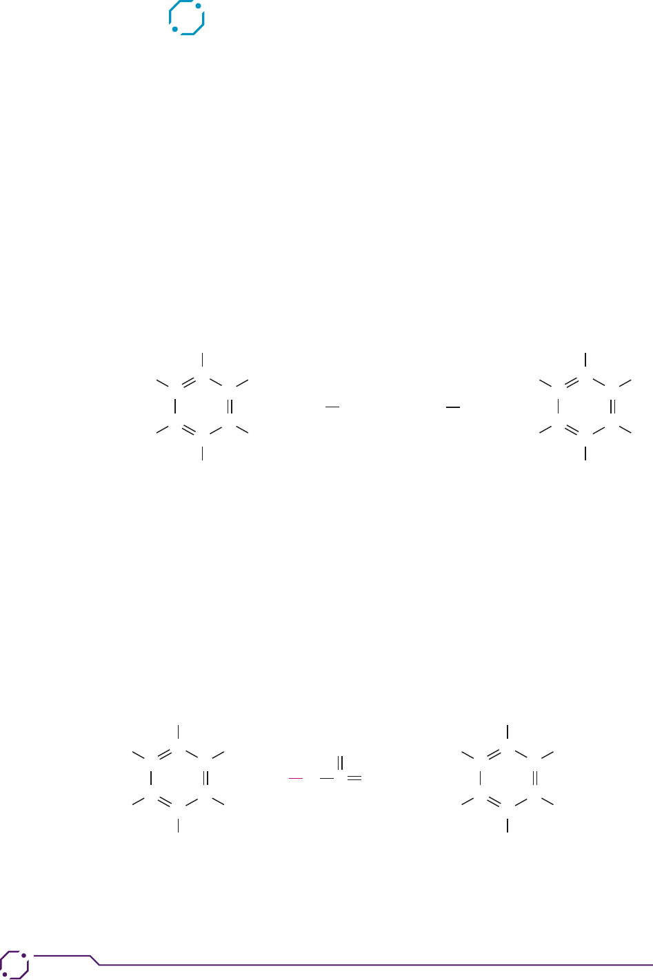 3 Substituição em aromáticos A obtenção de moléculas de benzeno substituídas tem grande importância em aplicações químicas industriais. Essas substâncias são utilizadas como inter- mediários em várias sínteses, como a de fármacos, e como solventes. Em um núcleo ou anel aromático como o do benzeno, no qual todos os áto- mos de carbono do núcleo fazem ligação com hidrogênio, será substituído o átomo de hidrogênio de qualquer carbono indiferentemente, pois todos têm o mesmo caráter parcial. Halogenação no benzeno Usando-se um catalisador adequado como o ferro metálico, Fe(s), o cloreto de ferro III, FeC, 3 , ou o cloreto de alumínio, A,C, 3 , é possível obter a substituição de um átomo de hidrogênio do anel aromático por um átomo de cloro ou de bromo. Nesse caso, formam-se os derivados halogenados aromáticos. Exemplo: monocloração do benzeno. H H CH CC CC C H H H C, C,+ FeC, 3 H C, +**( H C, CH CC CC C H H H benzeno cloro cloreto de hidrogênio monoclorobenzeno Nitração no benzeno É a substituição de um hidrogênio de um anel aromático por um grupo nitro, k NO 2 , utilizando-se uma mistura sulfonítrica, ou seja, de ácido nítrico, HNO 3 , e ácido sulfúrico, H 2 SO 4 , concentrados e a quente. Formam-se os nitrocompostos aromáticos, muitos dos quais utilizados como explosivos. Exemplo: nitração do benzeno. H 2 SO 4 ∆ + H 2 O H H CH CC CC C H H H + H NO 2 CH CC CC C H H H **(ON O OH benzeno ácido nítrico nitrobenzeno água Observe que o ácido nítrico é o agente nitrante, e o ácido sulfúrico atua como catalisador e agente desidratante. Capítulo 6156 M_Reis_Quimica_V3_PNLD2018_148a164_U3_C06.indd 156 29/04/16 17:30 Sulfonação no benzeno É a substituição de um átomo de hidrogênio do anel aromático por um grupo sulfônico, —SO 3 H. Ocorre na presença de H 2 SO 4 fumegante, ou seja, com gás trió- xido de enxofre, SO 3 (g), dissolvido e ligeiro aquecimento. Formam-se os ácidos sulfônicos aromáticos. Exemplo: sulfonação do benzeno. Alquilação no benzeno É a substituição de um hidrogênio do anel aromático por um grupo alquila. Ocorre quando um aromático reage com um haleto de alquila na presença de catalisadores como o cloreto de alumínio anidro, A,C, 3 , e aquecimento (360 °C). A reação produz hidrocarbonetos aromáticos homólogos do benzeno. Exemplo: metilação do benzeno. H H CH CC CC C H H H H 3 C C,+ A,C, 3 H C, + **( H CH 3 CH CC CC C H H H benzeno monoclorometano cloreto de hidrogênio metilbenzeno (tolueno) + H2O H H CH CC CC C H H H + H SO 3 H CH CC CC C H H H ∆ **(S OH OH O O benzeno ácido sulfúrico ácido benzenossulfônico água Acilação no benzeno É a substituição de um átomo de hidrogênio do anel aromático por um gru- po acila esquematizado ao lado. Ocorre na presença de um cloreto de ácido e de catalisadores como o cloreto de alumínio, A,C, 3 . Formam-se cetonas aromáticas, muitas das quais utilizadas em perfumaria por terem odor bastante agradável. Exemplo: reação entre benzeno e cloreto de etanoíla. H H CH CC CC C H H H + H C, + **( A,C, 3H 3 C C O C, HCH CC CC C H H H O C CH 3 benzeno cloreto de etanoíla cloreto de hidrogênio metilfenilcetona Grupo acila R C O Reações de substituição 157 M_Reis_Quimica_V3_PNLD2018_148a164_U3_C06.indd 157 29/04/16 17:30 2 As reações de alquilação e de acilação do benzeno são conhecidas por reações de Friedel-Crafts porque foram obtidas pela primeira vez em 1877 pelo químico orgânico e mineralogista francês Friedel Charles (1832- -1899) e pelo químico americano James Mason Crafts (1839-1917). Tanto a acilação como a alquilação de Friedel-Crafts envolvem a utilização do cloreto de alumínio, A,C, 3 , e mais raramente do cloreto de ferro III, FeC, 3 , como catalisador. Indique o nome do produto orgânico das seguintes rea- ções de Friedel-Crafts: a) benzeno + cloroetano. b) benzeno + cloreto de 2-metilpropanoíla. Resolução a) etilbenzeno b) isopropilfenilcetona + + + HC, A,C, 3 **( H H 3 C CH 2 C, C CH 3 H 2 A,C, 3 **( A,C, 3 **(C H 3 C + H H 3 C C C, O H + HC, C CH 3 CH 3 H C O Exercício resolvido 7 (UEL-PR) Considere a reação de substituição: + I CH 3 CH 3 + HI A,C, 3 ∆ **( Se na reação o iodeto de metila for substituído por iode- to de etila, obter-se-á: a) tolueno. b) naftaleno. c) etilbenzeno. d) o-etiltolueno. e) p-etiltolueno. 8 (FCMSCSP) Quantos compostos diferentes, monos- substituídos, podem ser obtidos quando se reage o naf- taleno com cloreto de metila? a) 2 b) 4 c) 6 d) 8 e) 10 9 (UPM-SP) No sistema de equações a seguir, as subs- tâncias A e B são, respectivamente: A + +Br2 λ B HBr *( + C CH 3 HBrH2 A,C, 3 B + **( a) metano e bromometano. b) etano e bromoetano. c) eteno e bromoetano. d) propeno e 2-bromopropeno. e) eteno e etino. 10 (UFU-MG) O benzeno, embora seja um excelente solvente orgânico, o seu emprego é desaconselhável co- mo tal por ser cancerígeno. Por isso, usam-se com mais frequência seus derivados, por serem menos agressivos e, além disso, poderem servir como matéria-prima para outras sínteses. O esquema de reação abaixo mostra um caminho para a síntese de um desses derivados. + X A,C, 3C C, H CH 3 H 3 C H **( Assinale a alternativa correta. a) A equação representa um processo de preparação de ácidos carboxílicos com aumento da cadeia carbônica. b) O composto X é um hidrocarboneto aromático. c) Temos um exemplo típico de acilação de Friedel- -Crafts. d) O composto X é um cloreto de alquila. e) O composto X é um fenol. 11 (Cesgranrio-RJ) Se, pela síntese de Friedel-Crafts, se deseja obter etilfenilcetona, deve-se reagir benzeno com cloreto de: a) propanoíla. b) fenila. c) propila. d) benzoíla. e) etanoíla. X X X X X Exercícios ATENÇÃO! Não escreva no seu livro! Capítulo 6158 M_Reis_Quimica_V3_PNLD2018_148a164_U3_C06.indd 158 29/04/16 17:30
