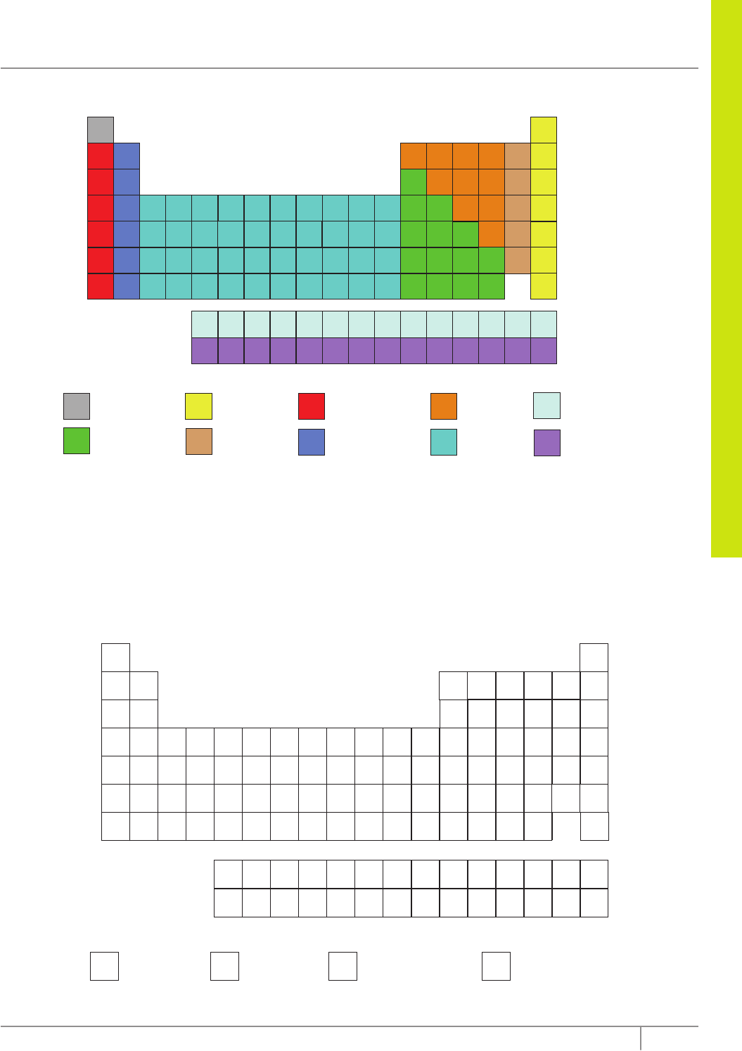 Q U ÍM IC A 43Editora Bernoulli 4 He 2 Pt 1 2 15 16 17 18 13 141 2 3 4 5 6 7 6 7 H Li Be B C N O F Ne Na Mg A� Si P S �C Ar K Ca Sc Ti V Cr Mn Fe Co Ni Cu Zn Ga Ge As Se Br Kr Rb Sr Y Zr Nb Mo Tc Ru Rh Pd Ag Cd In Sn Sb Te I Xe Cs Ba * Hf Ta W Re Os Ir Hg T� Pb Bi Po At Rn Fr Ra ** Rf Db Sg Bh Hs Mt Ce Pr Nd Pm Sm Eu Gd Tb Dy Ho Er Tm Yb Lu Th Pa U Np Pu Am Cm Bk Cf Es Fm Md No Lr He Au Ds Rg LEGENDA *La Ac ** UuoUub Uut Uuq Uup Uuh 3 4 7 85 6 9 10 11 12 He Gases nobres C� Halogênios H Hidrogênio Nd Lantanídeos U ActinídeosA� Outros metais representativos Ca Metais alcalinoterrosos Na Metais alcalinos O Outros ametais Fe Metais de transição Tabela mostrando os agrupamentos mais importantes dos elementos químicos. ESTADOS FÍSICOS DOS ELEMENTOS Alguns elementos são gasosos nas condições ambiente de temperatura e pressão, entre eles o nitrogênio e o oxigênio – gases mais abundantes da atmosfera terrestre. Somente dois elementos são líquidos em tais condições: o bromo e o mercúrio. A maioria dos elementos se encontra no estado sólido e, entre esses elementos, alguns não são encontrados na natureza, sendo obtidos por transmutação artificial. Pt 1 2 3 4 5 6 7 8 9 11 12 15 16 17 18 10 13 14 1 2 3 4 5 6 7 6 7 H Li Be B C N O F Ne Na Mg A� Si P S �C Ar K Ca Sc Ti V Cr Mn Fe Co Ni Cu Zn Ga Ge As Se Br Kr Rb Sr Y Zr Nb Mo Tc Ru Rh Pd Ag Cd In Sn Sb Te I Xe Cs Ba * Hf Ta W Re Os Ir Hg T� Pb Bi Po At Rn Fr Ra ** Rf Db Sg Bh Hs Mt Ce Pr Nd Pm Sm Eu Gd Tb Dy Ho Er Tm Yb Lu Th Pa U Np Pu Am Cm Bk Cf Es Fm Md No Lr He Au Ds Rg H Gasosos Br Líquidos Fe Sólidos naturais Tc Sólidos artificiais LEGENDA * La Ac ** UuoUub Uut Uuq Uup Uuh Os estados físicos dos elementos nas condições ambiente de temperatura e pressão Classificação periódica 44 Coleção Estudo ALGUMAS FAMÍLIAS IMPORTANTES Metais alcalinos Os elementos da coluna 1 apresentam-se na forma de substâncias simples metálicas de baixa densidade, com pontos de fusão igualmente baixos, principalmente se comparados com os dos metais de transição como o ferro. Além disso, apresentam condutividade elétrica elevada, como seria de se esperar para um metal, embora não tão elevada como a da prata e a do cobre. Alguns deles são moles como cera e podem ser espetados facilmente por um palito de dentes. Os metais alcalinos reagem vigorosamente com água, produzindo gás hidrogênio e o hidróxido correspondente, como esquematizado, a seguir, para o sódio. Na(s) + H2O() → NaOH(aq) + 1 2H2(g) Os metais alcalinos sempre apresentam o estado de oxidação +1 nos compostos. Quando eles se combinam com oxigênio e hidrogênio, originam, respectivamente, óxidos e hidretos de caráter fortemente iônico. 2Li(s) + 1 2O2(g) → Li2O(s) K(s) + 1 2H2(g) → KH(s) Considera-se que esses sólidos iônicos têm caráter fortemente básico, pois, ao se “dissolverem” em água, originam soluções fortemente básicas dos hidróxidos alcalinos. Li2O(s) + H2O() → 2LiOH(aq) KH(s) + H2O() → KOH(aq) + H2(g) Muitos compostos formados por metais alcalinos são bastante solúveis em água. Metais alcalinoterrosos Os metais alcalinoterrosos são mais densos, mais duros e têm pontos de fusão mais elevados em relação aos metais alcalinos. Com exceção do berílio, reagem com água para formarem os hidróxidos respectivos e gás hidrogênio. Ca(s) + 2H2O( ) → Ca(OH)2(aq) + H2(g) Nos compostos, os elementos da coluna 2 sempre assumem o estado de oxidação +2 e formam também óxidos e hidretos que reagem com água para formar soluções básicas. CaO(s) + H2O( ) → Ca(OH)2(aq) BaH2(s) + 2H2O( ) → Ba(OH)2(aq) + 2H2(g) Quando comparados com os compostos de metais alcalinos, os compostos de metais alcalinoterrosos tendem a ter menor caráter básico e / ou menor caráter iônico, apesar da acidez e da basicidade desses compostos ainda serem muito pronunciadas. Halogênios O termo “halogênio” vem do grego e significa “formador de sal”. Os elementos da coluna 17 aparecem com muita frequência na constituição de sais, muitas vezes no estado de oxidação –1. Formam substâncias simples diatômicas que, ao se combinarem com o hidrogênio, originam hidretos de caráter molecular. Estes últimos, por sua vez, quando dissolvidos em água, formam soluções ácidas como mostrado a seguir. C2(g) + H2(g) → 2HC(g) HC(aq) + H2O( ) → H3O + (aq) + C – (aq) EXERCÍCIOS DE FIXAÇÃO 01. Na edição de dezembro de 1986, foi publicado na revista Chemical Engineering News que a substância “HPA-23” (21-tungsto-9-antimonato de amônio) [(NH4)18 (NaW21Sb9O86)17 ] foi aplicada no ator Rock Hudson, em caráter experimental, para o tratamento da AIDS. Sobre essa substância e os elementos que a constituem, assinale a alternativa CORRETA. A) O elemento tungstênio (W) é dúctil, maleável, bom condutor de calor e eletricidade e na temperatura ambiente é sólido. B) O HPA-23 é um composto iônico, que tem como cátion (NH4 +), e é formado por ligações iônicas entre nitrogênio e hidrogênio. C) Na fórmula do HPA-23, existem somente átomos de elementos pertencentes ao segundo período das famílias 1, 15 e 16 da classificação periódica moderna. D) O tungstênio (W) é um elemento de transição externa e possui como subnível mais energético, no estado fundamental, 5d5. 02. (UFJF-MG) Localize na tabela periódica o elemento químico de número atômico 16. Sobre esse elemento, considere as afirmativas a seguir: I. Possui 16 prótons, 15 nêutrons e 16 elétrons. II. No estado fundamental, a sua configuração eletrônica é 1s2 2s2 2p6 3s2 3p4. III. Seu nome é silício. IV. É um halogênio. V. Está localizado no terceiro período da tabela periódica. Frente C Módulo 05 Q U ÍM IC A 45Editora Bernoulli Assinale a alternativa que contém somente afirmativas CORRETAS. A) I, II e III B) II, IV e V C) II e V D) IV e V E) I, III e IV 03. (UFVJM-MG–2008) A tabela periódica é um instrumento importantís