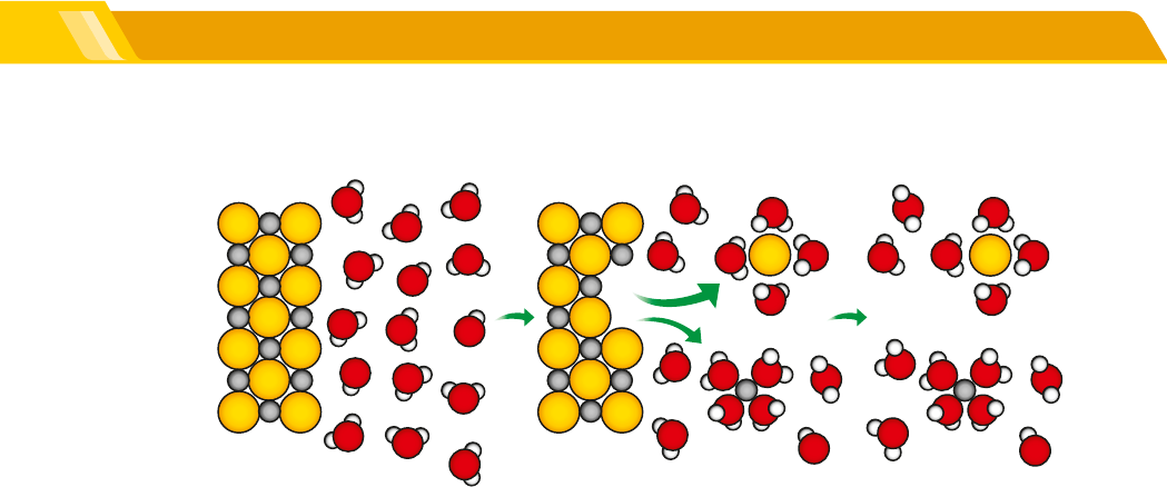 356 UNIDADE 6 | FUNÇÕES INORGÂNICAS 8. A fórmula do hidróxido de sódio (NaOH), conhe- cido também por soda cáustica, permite concluir que ele é um composto iônico ou molecular? Jus- tifique sua resposta. 9. Por que o NaOH sólido não conduz corrente elétrica? 10. Quando o NaOH (s), que é uma base solúvel, é dissolvido em água, ocorre dissociação iônica, ionização ou nenhum desses processos? 11. Crie uma explicação para justificar a condução de corrente elétrica por uma solução aquosa NaOH. 12. A solução aquosa de NaOH é classificada como eletrolítica ou não eletrolítica? 13. O gás clorídrico (HC,) é um composto molecular ou iônico? 14. Esse composto conduzirá corrente elétrica quan- do for liquefeito por aumento de pressão e dimi- nuição de temperatura? 15. Crie uma explicação para justificar a condução de corrente elétrica por uma solução aquosa de HC,. 16. Qual é a diferença entre os fenômenos da ioniza- ção e da dissociação iônica? 17. (Enem) As misturas efervescentes, em pó ou em comprimidos, são comuns para a administração de vitamina C ou de medicamentos para azia. Essa forma farmacêutica sólida foi desenvolvida para facilitar o transporte, aumentar a estabilidade de substâncias e, quando em solução, acelerar a ab- sorção do fármaco pelo organismo. As matérias- -primas que atuam na efervescência são, em geral, o ácido tartárico ou o ácido cítrico que reagem com um sal de caráter básico, como o bicarbonato de sódio (NaHCO 3 ), quando em contato com a água. A partir do contato da mistura efervescente com a água, ocorre uma série de reações químicas si- multâneas: liberação de íons, formação de ácido e liberação do gás carbônico — gerando a eferves- cência. As equações a seguir representam as eta- pas da reação da mistura efervescente na água, em que foram omitidos os estados de agregação dos reagentes, e H 3 A representa o ácido cítrico. I. NaHCO 3 → Na1 1 HCO 3 2 II. H 2 CO 3 � H 2 O 1 CO 2 III. HCO 3 2 1 H1 � H 2 CO 3 IV. H 3 A � 3H1 1 A2 A ionização, a dissociação iônica, a formação do ácido e a liberação do gás ocorrem, respectiva- mente, nas seguintes etapas: a) IV, I, II e III. b) I, IV, III e II. c) IV, III, I e II. d) I, IV, II e III. e) IV, I, III e II.X Desafiando seus conhecimentos 1. (Univag-MT) A figura mostra um processo que ocorre quando determinados compostos são colocados em água tornando a solução condutora de eletricidade. + − − − − − − − − − − − + + + + − − − + + + + − − ++ ++ ++ − − − − + + + − − − + + + Assinale a alternativa que indica corretamente o nome do processo representado pela figura e o nome da ligação formada entre as moléculas de água e as partículas dissolvidas. a) Dissociação molecular – ligação de hidrogênio b) Dissociação iônica – ligação íon-dipolo c) Dissociação iônica – ligação iônica d) Ionização – ligação de hidrogênio e) Diluição – ligação íon-dipoloX (qnesc.sbq.org.br) R e p ro d u ç ã o /U N IV A G , 2 0 1 6 . 1CONECTEQuim_MERC18Sa_U6_Cap21_p347a360.indd 356 7/2/18 1:44 PM 357CAPÍTULO 21 | DISSOCIAÇÃO E IONIZAÇÃO 2. (PUC-RS) Analise o texto a seguir. Durante o verão, verificam-se habitualmente tem- pestades em muitas regiões do Brasil. São chuvas intensas e de curta duração, acompanhadas mui- tas vezes de raios. No litoral, essas tempestades constituem um risco para os banhistas, pois a água salgada é eletricamente condutora. Isso se explica pelo fato de a água salgada conter grande quantidade de , como Na1 e C,2 livres para transportar carga elétrica no meio. Uma maneira de liberar essas partículas é dissolver sal de cozinha em um copo de água. Nesse pro- cesso, os existentes no sal sofrem . As expressões que completam corretamente o texto são, respectivamente: a) átomos – cátions e ânions – ionização b) átomos – átomos e moléculas – dissociação c) íons – elétrons livres – hidrólise d) íons – cátions e ânions – dissociação e) moléculas – átomos e moléculas – ionização 3. (Unicamp-SP) À temperatura ambiente, o cloreto de sódio (NaC,) é sólido e o cloreto de hidrogênio (HC,) é um gás. Essas duas substâncias podem ser líquidas em temperaturas adequadas. a) Por que, no estado líquido, o NaC, é um bom condutor de eletricidade, enquanto no estado sólido não é? b) Por que, no estado líquido, o HC, é um mau condutor de eletricidade? c) Por que, em solução aquosa, ambos são bons condutores de eletricidade? 4. (UFMG) Observe a figura. Ela representa um cir- cuito elétrico. béquer bateria lâmpada fios de cobre água X O béquer contém água pura, à qual se adiciona uma das seguintes substâncias: KOH (s), C6H6 (,), HC, (g), Fe (s), NaC, (s) Após essa adição, a lâmpada pode ou não acen- der. Indique quantas dessas substâncias fariam a lâmpada acender. a) 5 b) 4 c) 3 d) 2 e) 1 5. (Uerj) A experiência a seguir é largamente utili- zada para diferenciar soluções eletrolíticas de soluções não eletrolíticas. O teste está baseado na condutividade elétrica e tem como consequência o acendimento da lâmpada. solução recipiente G2 1 A lâmpada acenderá quando, no recipiente, esti- ver presente a seguinte solução: a) O2 (,). b) H2O (,). c) HC, (aq). d) C6H12O6 (aq). 6. (Ufscar-SP) Sal de cozinha (cloreto de sódio) e açúcar (sacarose) são sólidos brancos solúveis em água. Suas soluções aquosas apresentam comportamentos completamente diferentes quanto à condução de corrente elétrica. É corre- to afirmar que: a) o cloreto de sódio é um composto iônico e sua solução aquosa conduz corrente elétrica devi- do à presença de moléculas de NaC,. A saca- rose é um composto covalente e sua solução aquosa tem viscosidade muito alta, diminuindo a condutividade da água. b) uma substância como o cloreto de sódio, que em sol