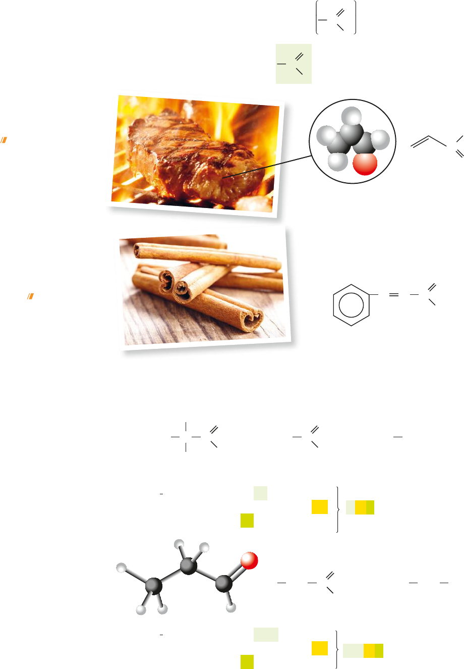 182 UNIDADE 3 | OUTRAS FUNÇÕES ORGÂNICAS Aldeídos Os aldeídos apresentam o grupo carbonila C O na extremidade da cadeia, isto é, em um carbono primário. H C O A acroleína é um aldeído volátil que se forma quando as gorduras existentes na carne se decompõem pela ação do calor. Seu cheiro característico é associado ao cheiro de churrasco. Muitos aldeídos são responsáveis pelo aroma de vegetais. O aldeído cinâmico é encontrado na canela, casca da árvore Cinnamomum zeylanicum. F o to s : T h in k s to ck /G e tt y I m a g e s O C H C H C H C H O O grupo funcional dos aldeídos sempre estará localizado em uma extremidade da cadeia. De acordo com as regras da IUPAC, seus nomes recebem o sufixo -al. Veja alguns exemplos: Prefixo: no de carbonos 2 ⇒ et Intermediário: tipo de ligação simples ⇒ an Sufixo: função aldeído ⇒ al etanal Prefixo: no de carbonos 3 ⇒ prop Intermediário: tipo de ligação simples ⇒ an Sufixo: função aldeído ⇒ al propanal fórmulas estruturais H C O CH 2 H 3 C CH 2 CHOH 3 Cou fórmulas estruturais H C O C H C O H 3 Cou ou CHOH 3 C H H H B a n c o d e i m a g e n s /A rq u iv o d a e d it o ra 3CONECTEQuim_MERC18Sa_U3_Cap08_p163a214.indd 182 8/24/18 12:52 PM 183CAPÍTULO 8 | FUNÇÕES ORGÂNICAS OXIGENADAS Os dois aldeídos mais simples apresentam nomes formados pelos prefixos form- e acet-, seguidos da palavra aldeído. metanal (formaldeído) H C O H etanal (acetaldeído) H C O H 3 C Caso existam dois grupos aldeído, o sufixo usado é -dial. propanodial H O H C O CH 2 C Os aldeídos ramificados e/ou insaturados seguem as regras já vistas. Como o grupo funcional está sempre na extremidade, esse carbono sempre será o núme- ro 1, portanto, sua posição não precisa ser indicada. C CH 3 H C O CH 2 C H H 3 C 5 4 3 2 1 Prefixo: no de carbonos 5 ⇒ pent Intermediário: tipo de ligação 1 dupla ⇒ en Sufixo: função aldeído ⇒ al Localização da dupla ⇒ 3 Grupo: metil Localização do grupo ⇒ 3 pent-3-enal 3-metil 3-metilpent-3-enal Um aldeído importante O metanal O metanal é o principal aldeído, sendo conhecido também por aldeído fórmico, formaldeído ou formol. Ele apresenta a seguinte fórmula estrutural: H C O H Nas condições ambientes, ele é um gás incolor extremamente irritante para as mucosas. Quando dissolvido em água, forma-se uma solução cuja concentração pode ser no máximo de 40% em massa, conhecida por formol ou formalina. O formol tem a propriedade de desnaturar proteínas, tornando-as resis- tentes à decomposição por bactérias. Por essa razão, é usado como fluido de embalsamamento, na conservação de espécies biológicas e também como antisséptico. Durante a defumação doméstica, as carnes são submetidas à fumaça proveniente da queima de madeira, que contém o aldeído fórmico, um dos responsáveis pela conservação da carne defumada. Atualmente, o metanal é usado em escala industrial como matéria-prima na produção de muitos plásticos e resinas. S P L /F o to a re n a O formol é usado na conservação de partes do corpo humano e de animais, como esta estrela-do-mar representada na fotografia, que podem ajudar em pesquisas, por exemplo. Ilustrações: Banco de imagens/Arquivo da editora 3CONECTEQuim_MERC18Sa_U3_Cap08_p163a214.indd 183 8/24/18 12:52 PM 184 UNIDADE 3 | OUTRAS FUNÇÕES ORGÂNICAS 1. Dê as fórmulas estruturais planas dos compostos: I. 2-etil-3-metil-hexanal; II. 3-metilbut-3-enal. 2. Dê o nome dos aldeídos cujas moléculas apare- cem representadas pelos modelos: Fundamentando seus conhecimentos 3. Existe no mercado um produto utilizado para tornar as unhas mais duras e “resistentes”; um dos seus componentes é o aldeído de menor massa molar. Qual o nome e qual a fórmula estrutural desse aldeído? Com base na informação abaixo, responda às questões 4 a 6. A reação de hidrogenação (redução) de um aldeí- do pode ser representada por: C OH H HC 1 H 2 O H 4. Equacione a hidrogenação do etanal. 5. Equacione a redução do butanal. 6. Dê o nome de X que completa a reação: 3-metilbutan-1-ol CCH 2 H 3 C CH OH HCH 3 H1 H 2 X Desenvolvendo seus conhecimentos 1. Dê o nome dos aldeídos: O I. H O HH O II. H O III. 2. Dê o nome dos compostos: CH CHH 3 C CHO CH 2 CH 3 CHO CHH 2 C CHO 3. (Uece) O metanal é extremamente importante e pode ter inúmeros usos, como: desinfetante na preserva- ção de cadáveres, madeiras e peles de animais; na fabricação de polímeros, como a baquelite, e de resinas empregadas na fórmica; na obtenção de urotropina, usada como medicamento das vias urinárias, e na obtenção de explosivos. Identifique o metanal na reação: metal O H C H H OH 1 1 2 O 2 (ar) 1 H 2 OH CH e assinale a alternativa que mostra corretamente sua função. a) aldeído. b) cetona. c) álcool. d) éter.X Il u s tr a ç õ e s : B a n c o d e im a g e n s /A rq u iv o d a e d it o ra I II 3CONECTEQuim_MERC18Sa_U3_Cap08_p163a214.indd 184 8/24/18 12:52 PM
