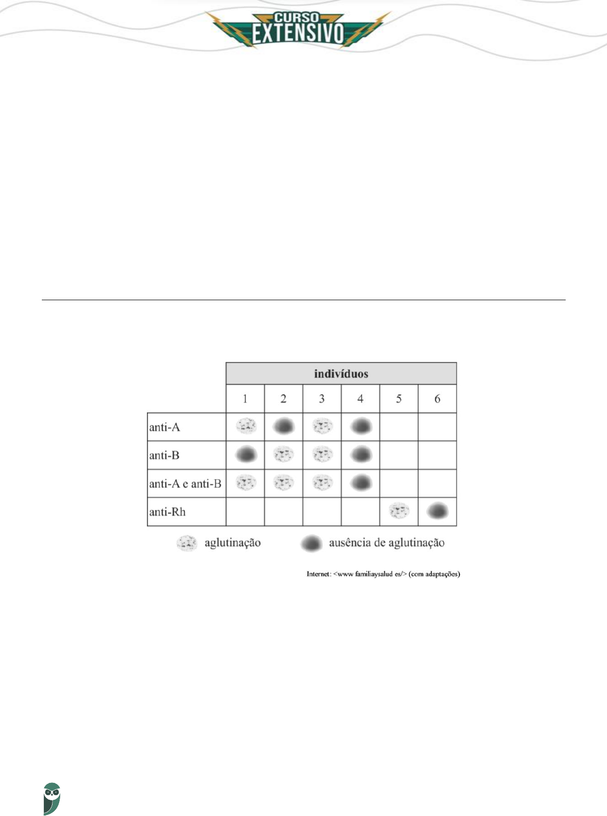 AULA 2 – FISIOLOGIA HUMANA 46 Prof. Daniel Reis (D) “A” / univitelinos / dois / 23. (E) “B” / bivitelinos / dois / 46. Comentários A melhor forma de resolver essa questão é começar pelo fim. Cada gameta apresenta 23 cromossomos. Logo, isso nos deixa apenas as alternativas C e D como possibilidades. Gêmeos univitelinos são idênticos e formados a partir da divisão de um zigoto originado pela união de 2 gametas. Isso corresponde à Situação A e a resposta correta é a letra D. Gabarito: “d” 15. (Estratégia Militares 2021 – Inédita – Prof. Daniel Reis) O quadro abaixo indica o resultado da tipagem sanguínea de seis indivíduos. Considerando que cada amostra foi submetida a diferentes soros contendo aglutininas anti- A, anti-B e anti-RH, marque a alternativa correta. a) O indivíduo 1 tem sangue tipo O por ter apenas aglutinogênios A em suas hemácias. b) O indivíduo 2 tem sangue tipo AB por ter aglutinogênios A e B em suas hemácias. c) O indivíduo 3 tem sangue tipo O por ter aglutinogênios A e B em suas hemácias. d) O indivíduo 4 tem sangue tipo O por não ter aglutinogênios em suas hemácias. e) O indivíduo 2 tem sangue tipo B por ter aglutinogênios A em suas hemácias. Comentários: AULA 2 – FISIOLOGIA HUMANA 47 Prof. Daniel Reis A letra A está errada pois o indivíduo 1 tem sangue do tipo A, por ter apenas aglutinogênios A em suas hemácias. A letra B está errada pois o indivíduo 2 não tem aglutinogênio A em suas hemácias. A letra C está errada pois o indivíduo 3 tem sangue tipo AB por ter aglutinogênios A e B em suas hemácias. A letra D está correta. A letra E está errada pois o indivíduo 2 tem sangue do tipo B por ter aglutinogênios B em suas hemácias. Gabarito: “d” 16. (Estratégia Militares 2021 – Inédita – Prof. Daniel Reis) Os métodos contraceptivos podem apresentar diferentes graus de eficácia na prevenção da gravidez. Dentre os métodos citados abaixo, qual pode ser identificado como o que tem mais riscos de não prevenir uma gravidez indesejada? a) Preservativo masculino b) Coito interrompido c) Diafragma d) Dispositivo intrauterino e) Pílula anticoncepcional Comentários: A letra A está errada pois a camisinha oferece alto grau de eficácia como contraceptivo. A letra B está correta pois pode haver liberação de esperma antes da ejaculação. A letra C está errada pois o diafragma oferece alto grau de eficácia como contraceptivo. A letra D está errada pois o DIU oferece alto grau de eficácia como contraceptivo. A letra E está errada pois a pílula oferece alto grau de eficácia como contraceptivo. Gabarito: “b” 17. (Estratégia Militares 2021 – Inédita – Prof. Daniel Reis) Julgue as afirmativas abaixo sobre o sistema endócrino e marque a alternativa correta. I – Os hormônios atuam apenas em órgãos próximos ao seu local de liberação. II – O pâncreas produz insulina, que promove a entrada de glicose nas células. III – O aumento da concentração de tiroxina no sangue inibe a liberação de TSH pela tireoide. IV – O hormônio antidiurético promove a reabsorção de água nos túbulos renais. Estão corretas apenas AULA 2 – FISIOLOGIA HUMANA 48 Prof. Daniel Reis (A) I e II. (B) II e III. (C) III e IV. (D) I e III. (E) II e IV. Comentários: A primeira afirmativa está errada pois os hormônios podem ter ação em órgãos-alvo bem distantes do seu local de liberação. A segunda afirmativa está correta. A terceira afirmativa está errada pois o TSH é produzido pela hipófise e não pela tireoide. A quarta afirmativa está correta. Estão corretas II e IV. Gabarito: “e” 18. (Estratégia Militares 2021 – Inédita – Prof. Daniel Reis) Suponha que um indivíduo, após sofrer um acidente, tenha perdido o controle voluntário dos movimentos dos membros superiores e inferiores. A lesão causadora desse efeito ocorreu em que local? (A) Em um nervo do sistema nervoso central. (B) Em um nervo do sistema nervoso periférico somático. (C) Em um nervo do sistema nervoso periférico autônomo. (D) Na região lombar da medula espinhal. (E) Na região cervical (pescoço) da medula espinhal. Comentários: A letra A está errada pois o sistema nervoso central é composto pelo encéfalo e pela medula espinhal. A letra B está errada pois a lesão em apenas um nervo do SNP Somático não seria capaz de impedir o controle voluntário dos membros superiores e inferiores. A letra C está errada pois o SNP Autônomo não é responsável pelo controle voluntário dos movimentos. A letra D está errada pois uma lesão na região lombar da medula espinhal causaria a perda de movimentos apenas da cintura para baixo. A letra E está correta. Gabarito: “e”