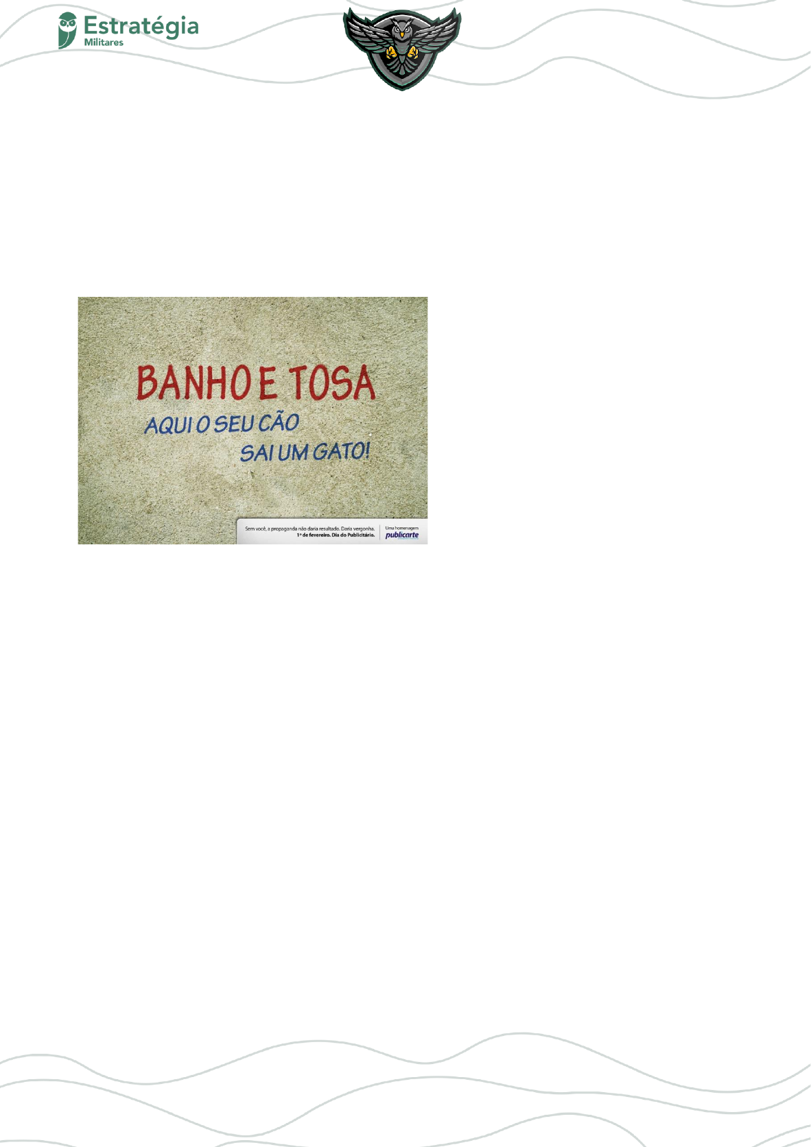43 Prof. ª Fabíola Soares A) água é comparada com Wi-fi porque ambos são importantes hoje em dia B) o comportamento das pessoas mudou totalmente com a chegada do Wi-fi, C) atualmente, as pessoas têm vergonha de pedir água na casa dos outros. D) pedir água indica intimidade; pedir a senha do Wi-fi indica modernidade. E) água significa manutenção da vida; Wi-fi, adaptação ao mundo moderno. 49. (Col. Naval – 2018) No texto apresentado, o autor: A) não tem intenção de se comunicar com o leitor. B) gera ambiguidade na articulação dos vocábulos. C) explora a polissemia como recurso para gerar humor. D) divulga determinado produto para venda. E) articula palavras contrárias, comprometendo o sentido a ser veiculado. 50. (EAM – 2014) ÔNIBUS LOTADO O ônibus aguardava no ponto final, no alto de uma ladeira. Após os passageiros entrarem, seguiu ladeira abaixo. Eis que um homem de bigode, de meia-idade, começou a correr atrás do ônibus. Da janela, um passageiro gritou: - Esquece, cara! O busão já tá lotado. E o senhor, ofegante: - Não posso. Sou o motorista! 44 Prof. ª Fabíola Soares Almanaque Brasil, 02\07\2009 (adaptado). O homem de bigode corria ofegante porque A) ele era um passageiro atrasado. B) o ônibus já estava lotado. C) ele era o motorista do ônibus. D) o ônibus já estava com a saída atrasada. E) um passageiro não quis pagar a passagem. 51. (EAM – 2009) O pronome demonstrativo usado em ". . . sou eu sentado nesta caixa" se justifica porque o falante. A) situa a caixa perto de si. B) pretende tomar a caixa de seu ouvinte. C) refere-se à caixa utilizada por seu ouvinte. D) dá ênfase ao objeto utilizado por seu interlocutor. 45 Prof. ª Fabíola Soares E) retoma o termo "caixa" empregado no quadrinho anterior. Texto para as próximas questões TEXTO II Descobri aos 13 anos que o que me dava prazer nas leituras não era a beleza das frases, mas a doença delas. Comuniquei ao Padre Ezequiel, um meu Preceptor, esse gosto esquisito. Eu pensava que fosse um sujeito escaleno. - Gostar de fazer defeitos na frase é muito saudável, o Padre me disse. Ele fez um limpamento em meus receios. O Padre falou ainda: Manoel, isso não é doença, pode muito que você carregue para o resto da vida um certo gosto por nadas. . . E se riu. Você não é de bugre? - ele continuou. Que sim, eu respondi. Veja que bugre só pega por desvios, não anda em estradas - Pois é nos desvios que encontra as melhores surpresas e os ariticuns maduros. Há que saber apenas errar bem o seu idioma. Esse Padre Ezequiel foi o meu primeiro professor de agramática. BARROS, Manoel de. O livro das ignorãças. 9 ed. Rio de Janeiro: Record, 2000. 52. (EAM – 2009) O narrador sofreu um "limpamento" em seus receios. O que ocasionou isso? A) O desejo do garoto de ser um "sujeito escaleno". B) A insatisfação do garoto em relação ao seu gosto esquisito. C) O medo do preceptor de que o garoto sofresse um desgosto. D) A dúvida do padre quanto ao caminho que o garoto seguiria. E) A declaração do padre de que "gostar de fazer defeitos na frase é muito saudável". 53. (EAM – 2009) "Comuniquei ao Padre Ezequiel, um meu Preceptor, / esse gosto esquisito." (versos 4 e 5). Esse gosto é considerado esquisito porque; A) é algo fora do comum. B) elogia os gramáticos. C) define o caráter do narrador.