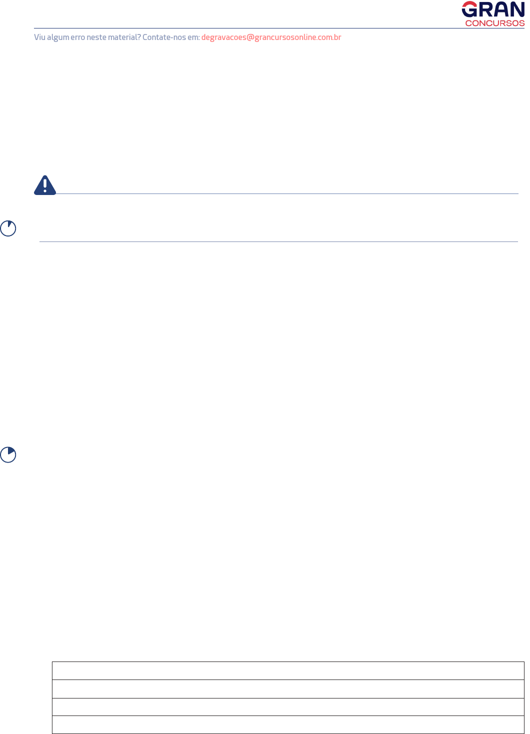 1www.grancursosonline.com.br Viu algum erro neste material? Contate-nos em: degravacoes@grancursosonline.com.br A N O TA ÇÕ E S Tipologia da Frase Portuguesa INTERPRETAÇÃO DE TEXTO TIPOLOGIA DA FRASE PORTUGUESA Entender a tipologia da frase portuguesa depende do domínio da gramática, especial- mente da sintaxe do período simples e do período composto, das relações de coordenação e de subordinação entre os termos e entras as orações para que a frase seja estruturada com cuidado. ATENÇÃO A tipologia da frase portuguesa é diferente de tipologia textual (narrativo, descritivo, disser- tativo, preditivo ou divinatório, injuntivo ou instrucional e lírico). Tipologia da frase portuguesa a. Frases interrogativas: são aquelas que denotam perguntas. Ex.: Você fará o concurso do STJ? A frase acima se trata de uma interrogação direta. Ex.: Desejo saber se você fará o concurso do STJ. No entanto, a conjunção integrante “se” também pode denotar a uma pergunta. Com isso, tem-se uma oração subordinada substantiva objetiva direta, desse modo, forma-se uma interrogação indireta. Ex.: Não sabemos por que ele age dessa maneira. A conjunção interrogativa “por que” foi deslocada para o começo frase, por isso, também se trata de um caso de interrogação indireta. b. Frases imperativas: são aquelas que denotam ordem, pedido, súplica, conselho, alerta, admoestação. Além disso, no imperativo afirmativo, retira-se a segunda do singular e do plural do presente do indicativo, menos a letra “e”, em caso de alteração gráfico-fonética. Ex.: Faça-o falar a verdade! A frase está no imperativo afirmativo. Ex.: Não atravesse a faixa. A frase está no imperativo negativo. Ex.: Sede atentos aos problemas sociais. 5m 10m 2www.grancursosonline.com.br Viu algum erro neste material? Contate-nos em: degravacoes@grancursosonline.com.br A N O TA ÇÕ E S Tipologia da Frase Portuguesa INTERPRETAÇÃO DE TEXTO O “sede” está dando comando a “vós”, porque o imperativo afirmativo do verbo “ser” é retirado do presente do indicativo e presente do subjuntivo. No entanto, o verbo “ser” na for- mação do imperativo passa por um processo de alomorfia, ou seja, uma variação na forma, assim a forma “sois” se torna “sede”. c. Frases exclamativas: estão associadas ao estado emotivo-psíquico. Ex.: As provas da FGV são muito fáceis! Nota-se a presença do ponto de exclamação. d. Frases declarativas: denotam constatações, teses, certezas. Ex.: Obrigaram o rapaz a sair. (Afirmativa) Ex.: Ela não está em casa. (Negativa) e. Frases optativas: são aquelas que exprimem desejo. Ex.: Deus te abençoe! Deve-se sempre trabalhar com a próclise, ou seja, o pronome antes do verbo. Ex.: Bons ventos o levem, Gudesteu! Deve-se sempre trabalhar com a próclise, ou seja, o pronome antes do verbo. f) Frases nominais: quando não há verbo. Ex.: Silêncio! Ex.: Cuidado! Ex.: Cada macaco no seu galho! Obs.: as frases nominais não necessariamente devem ser exclamativas. g) Frases verbais: quando há verbo. Ex.: O sol ilumina a cidade e aquece os dias. Há dois verbos, então, duas orações. Ex.: Nós é que merecemos respeito! Há apenas um verbo, portanto, há apenas uma oração. O “é”, nesse contexto, não é conside- rado verbo, pois não está sendo conjugado, logo, trata-se de uma partícula expletiva ou de realce. 15m 20m 25m 3www.grancursosonline.com.br Viu algum erro neste material? Contate-nos em: degravacoes@grancursosonline.com.br A N O TA ÇÕ E S Tipologia da Frase Portuguesa INTERPRETAÇÃO DE TEXTO DIRETO DO CONCURSO 1. (FGV) Entre os diversos tipos de frases há as interrogativas e, entre essas, há aquelas que são chamadas de interrogações retóricas; a pergunta retórica abaixo cuja resposta está contida na pergunta é: a. Você pode fechar a janela, por favor? b. Esse político está falando a verdade? c. O senhor poderia falar mais alto? d. Eu já não tinha dito isso? e. Quem nunca sentiu medo? COMENTÁRIO Uma interrogação retórica é uma interrogação desnecessária, porque se está diante do óbvio. 2. (FGV) “Nunca serei juiz. Neste grande vale onde a espécie humana nasce, vive, morre, se reproduz, se cansa, e depois volta a morrer, sem saber como nem por quê, distingo apenas felizardos e desventurados”. Nesse pensamento, os termos “como” e “por quê” indicam, respectivamente: a. modo e causa; b. meio e explicação; c. meio e causa; d. causa e explicação; e. modo e explicação. COMENTÁRIO “Como” é um advérbio interrogativo e o “por quê” está em uma interrogação indireta. Logo, trata-se de interrogações indiretas por meio de dois advérbios interrogativos. Desse modo, tem-se modo e causa. 30m 35m 4www.grancursosonline.com.br Viu algum erro neste material? Contate-nos em: degravacoes@grancursosonline.com.br A N O TA ÇÕ E S Tipologia da Frase Portuguesa INTERPRETAÇÃO DE TEXTO 3. (FGV) Um pensamento célebre diz: “Conhece-te a ti mesmo.” Assinale a opção que mostra a variação formal de pessoa dessa frase imperativa que está gramaticalmente errada. a. Conheçamo-nos a nós mesmos. b. Conheçam-se a vocês mesmos. c. Conhecei-vos a vós mesmos. d. Conheça-se a você mesmo. e. Conheço-me a mim mesmo. COMENTÁRIO Não existe a primeira pessoa do imperativo afirmativo ou a primeira pessoa do imperativo negativo, logo, em “Conheço-me a mim mesmo”, há uma declaração e não ordem. GABARITO 1. e 2. a 3. e 40m ��Este material foi elaborado pela equipe pedagógica do Gran Concursos, de acordo com a aula pre- parada e ministrada pelo professor Fernando Moura. A presente degravação tem como objetivo auxiliar no acompanhamento e na revisão do conteúdo ministrado na videoaula. Não recomendamos a substituição do estudo em vídeo pela leitura exclu- siva deste material.