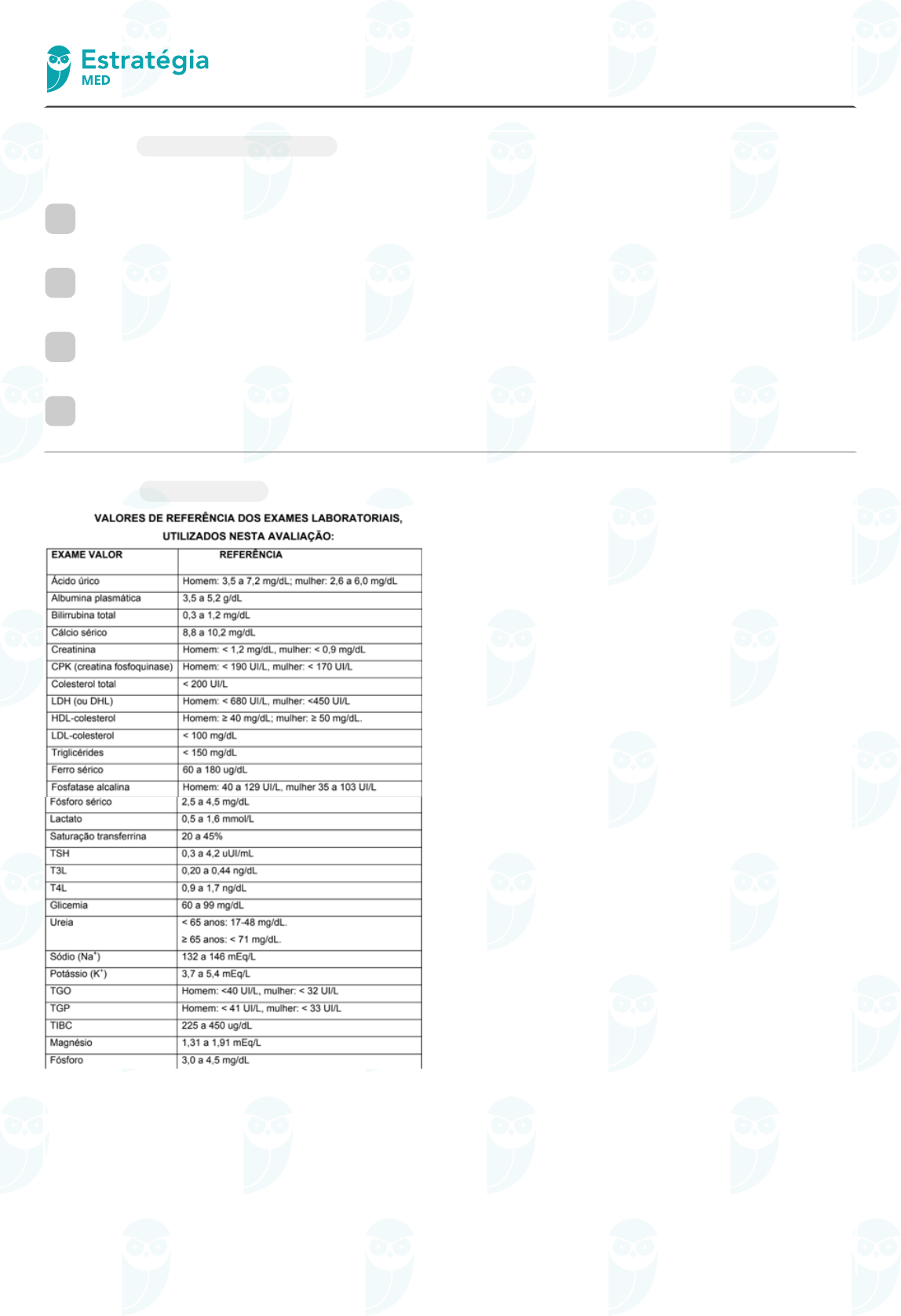 Síndromes aórticas agudas vinicius martins - 500.237.318-69 Acessar Lista Questão 1 Classif icação e f isiopatologia De acordo com a classificação de Stanford: A as Síndromes Aórticas Agudas SAA são divididas em tipo A, que envolve a aorta ascendente, e tipo C, que não envolve esse segmento. B as Síndromes Aórticas Agudas SAA são divididas em tipo A, que envolve a aorta ascendente, e tipo B, que não envolve esse segmento. C as Síndromes Aórticas Agudas SAA são divididas em tipo A, que envolve a aorta descendente, e tipo B, que envolve todo esse segmento. D as Síndromes Aórticas Agudas SAA são divididas em tipos, sem relação com a parte da aorta envolvida. 4000211405 Questão 2 Exames de imagem https://med.estrategia.com/cadernos-e-simulados/cadernos/21cfcc48-69fc-4672-9a78-64fdae01cc69 Homem, 44a, deu entrada no Pronto-Socorro com queixa de dor torácica em região precordial de forte intensidade com irradiação para o dorso há oito horas, acompanhada de sudorese fria. Antecedente pessoal: hipertensão arterial em uso de nifedipina 40mg/dia. Exame físico: PA=212/142mmHg; FC=111bpm; estase jugular; pulsos arteriais periféricos com amplitude diminuída no membro superior esquerdo; coração: bulhas hipofonéticas e sopro diastólico suave em foco aórtico acessório; pulmões: estertores crepitantes em bases; abdome: exame normal. As dosagens de CK-mb e troponina estavam normais. Eletrocardiograma: sobrecarga de câmaras esquerdas. Radiograma de tórax: O EXAME COMPLEMENTAR QUE CONFIRMA A HIPÓTESE DIAGNÓSTICA É: 4000209523 Questão 3 Clínica Médica Tratamento Você está ne emergência do HCTCO, quando adentra um paciente com dor torácica aguda, lancinante, irradiada para dorso, hipertenso, sudoreico. Após realizar ECG e afastar infarto agudo do miocárdio, você realiza uma tomogra a computadorizada de tórax e já evidencia uma dissecção aórtica. Baseado em seus conhecimentos podemos AFIRMAR que: A O controle da dor não é uma das prioridades, sendo pouco importante B A progressão da dissecção é mais ligada ao aumento da PA, não sendo afetada pelo aumento da FC C Medicamentos betabloqueadores devem ser administrados para redução da FC a 60bpm D Nunca devemos utilizar nitroprussiato de sódio. E O exame padrão ouro é indispensável para se iniciar o tratamento clínico 4000207458 Questão 4 Tratamento Paciente feminino, 55 anos, dá entrada no pronto-socorro com dor torácica de forte intensidade há 1 hora. Antecedentes pessoais de hipertensão arterial sistêmica, e tabagismo. Ao exame físico: PA: 200 x 100 mmHg, pulso: 110 bpm, SatO₂: 99% em ar ambiente. Pulsos em MMSS e MMII todos presentes. Radiogra a e tomogra a de tórax abaixo: Dentre os tratamentos abaixo, o melhor para este caso é: A Internação hospitalar para drenagem de tórax de emergência. B Internação em UTI para controle de dor, pressão arterial e frequência cardíaca. C Internação em UTI e anticoagulação plena. D Correção cirúrgica de emergência com toracotomia exploradora. 4000205898 Questão 5 Tratamento da dissecção aórtica tipo A Def inição e classif icação Homem, 47 anos, previamente hipertenso em uso irregular das medicações, foi admitido no pronto atendimento com quadro de dor torácica intensa com irradiação para dorso. Alega parestesia de membro superior esquerdo associada. A dor teve início no momento em que trabalhava como mecânico. Apresentava PA em MSE de 185 x 120 mmHg e em MSD de 225 x 135 mmHg. Realizado Ultrassom à beira leito, sendo notada linha de dissecção intimal em aorta ascendente e arco aórtico. Sobre o caso clínico acima, diagnóstico e tratamento, assinale a alternativa correta. A A dissecção de aorta é uma emergência hipertensiva e o seu tratamento inicial é idealmente realizado com medicação endovenosa como nitroglicerina. A queda da PA deve ser gradual, de até 25% na primeira hora. B A dissecção de aorta é uma urgência hipertensiva, o seu tratamento inicial é idealmente realizado com Nitroglicerina. A queda da PA deve ser gradual, de até 20 mmHg na primeira hora. C A dissecção de aorta é uma emergência hipertensiva e o seu tratamento inicial é idealmente realizado com nitroprussiato de sódio e betabloqueador endovenosos. A queda da PA deve ser mais rápida, tendo como objetivo PAS<120 mmHg em 20 minutos. D A dissecção de aorta é considerada uma pseudocrise hipertensiva, com o aumento da PA decorrente da dor torácica. A PA deve ser controlada a partir do controle da dor, podendo utilizar morfina como tratamento. E A dissecção de aorta é uma urgência hipertensiva, podendo a PA ser controlada com medicamentos orais, como anlodipino. A queda da PA deve ser gradual, de até 25% na primeira hora. 4000193946 Questão 6 Tratamento Manif estações clínicas e complicações Homem de 59 anos de idade é admitido na unidade de emergência devido a dor retroesternal de início súbito, de forte intensidade e sem irradiação, há cerca de uma hora. Relata ainda que não consegue sentir ou movimentar sua perna esquerda. Tem antecedente de hipertensão arterial sistémica mal controlada e tabagismo. Ao exame, tem pressão arterial de 210x130mmHg, frequência cardíaca de 110bpm, frequência respiratória de 22irpm, estando afebril. Apresenta sopro aórtico diastólico, aspirativo, de intensidade 4/6 e com irradiação para foco mitral. O membro inferior esquerdo apresenta pulsos ausentes, com força muscular grau 2/5 e com sensibilidade reduzida Sem outras alterações. Glicemia capilar de 122mg/dL. Foi realizado o eletrocardiograma que pode ser visto na imagem a seguir: Não há serviço de hemodinâmica na unidade e o mais próximo ca a três horas de distância. Considerando a hipótese diagnóstica mais provável, qual é a conduta neste momento? A Iniciar ácido acetilsalicílico e clopidogrel em dose de ataque, anticoagulação endovenosa com heparina de baixo peso molecular e proceder à t