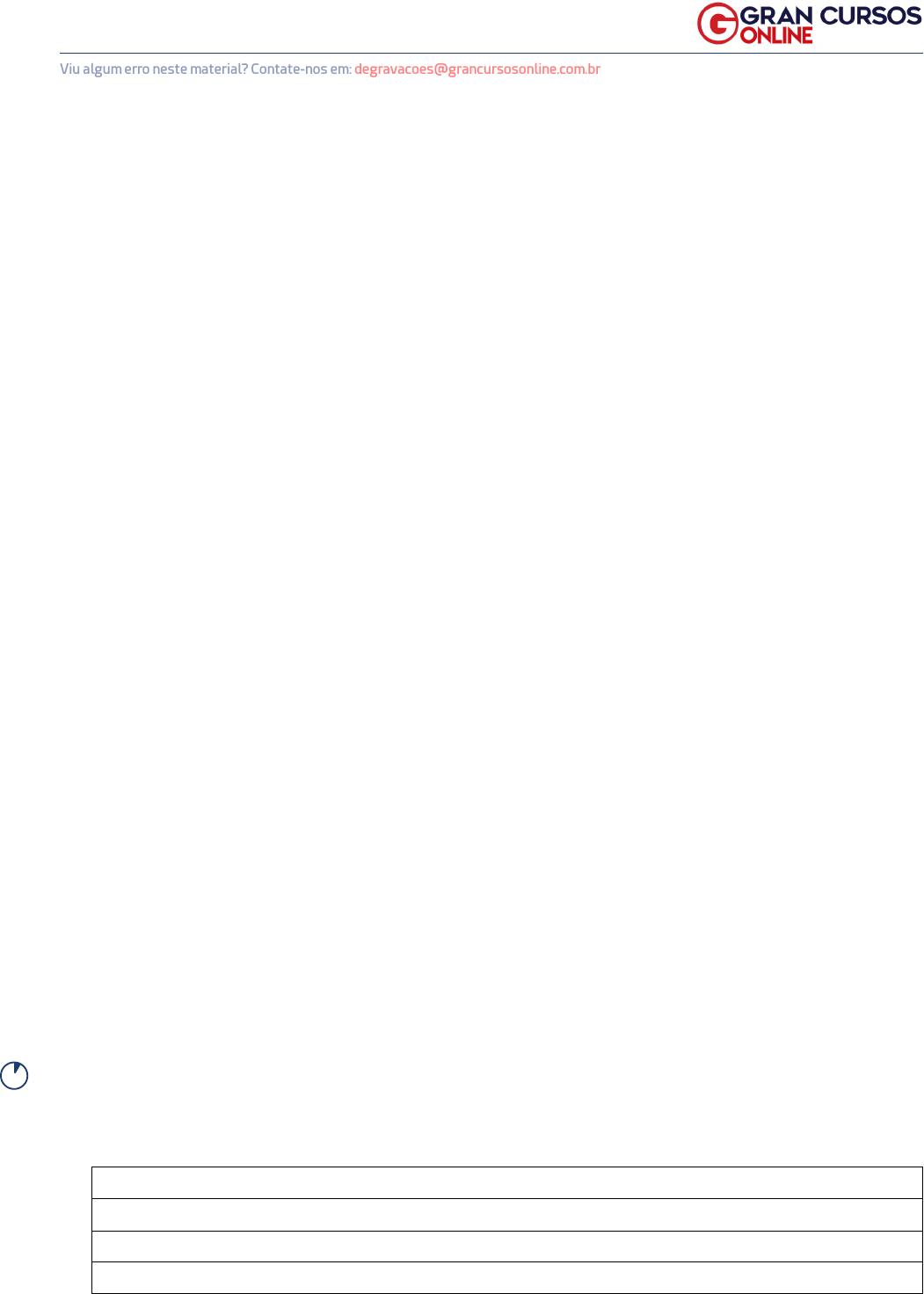 1www.grancursosonline.com.br Viu algum erro neste material? Contate-nos em: degravacoes@grancursosonline.com.br A N O TA ÇÕ E S Lógica de Programação: Tipos de Dados - Teoria LÓGICA DE DADOS LÓGICA DE PROGRAMAÇÃO: TIPOS DE DADOS - TEORIA TIPOS DE DADOS Tipos de dados são conjuntos de valores que podem pertencer ou a uma variável, ou a uma constante, além de serem gerados por uma expressão ou por uma função. Classificações de tipos de dados: • Classificação 1: – tipos derivados – tipos primitivos Obs.: os tipos derivados podem ser derivados tanto dos tipos primitivos, quanto de outros tipos derivados. Alguns exemplos de tipos primitivos são os tipos inteiros, pontos flutuantes, caractere, string (conjunto de caracteres), • Classificação 2: – tipos simples – tipos estruturados. Obs.: este tipo de classificação é cobrado, principalmente, pelo CESPE. Obs.: esta classificação segue o mesmo esquema de entendimento da classificação 1. • Tipos primitivos: – inteiros – pontos flutuantes – caracteres – strings (conjunto de caracteres). Os tipos primitivos equivalem a tipos simples, e tipos derivados equivalem a tipos estru- turados. . 5m www.grancursosonline.com.br 2www.grancursosonline.com.br Viu algum erro neste material? Contate-nos em: degravacoes@grancursosonline.com.br A N O TA ÇÕ E S Lógica de Programação: Tipos de Dados - Teoria LÓGICA DE DADOS CLASSIFICAÇÃO 1: • Primitivos Os termos primitivos não são definidos em termos de outros tipos de dados. Exemplo: o valor 15. Ele é inteiro, ou seja, é primitivo. • Derivados: Os termos derivados são definidos em termos de outros tipos de dados. Exemplo: um array de três posições que é formado por valores inteiros. Exemplo: é possível haver uma rede de inteiros, havendo o armazenamento de 15, 12, 53. CLASSIFICAÇÃO 2 • Valor simples (o qual pode ser reconhecido também por elementar ou escalar) Os valores simples são caracterizados por um domínio de valor e são indivisíveis. Exemplo: 15 é indivisível. • Valor estruturado (o qual pode ser reconhecido também por complexo ou completo). Os valores estruturados definem: • Uma coleção homogênea (de mesmo tipo) de valores elementares ou estruturados. Exemplo: um array de valores inteiros. • Um agregado de valores de tipos diferentes. Exemplo: os registros, que podem ser compostos por valores diferentes. www.grancursosonline.com.br 3www.grancursosonline.com.br Viu algum erro neste material? Contate-nos em: degravacoes@grancursosonline.com.br A N O TA ÇÕ E S Lógica de Programação: Tipos de Dados - Teoria LÓGICA DE DADOS COMPARAÇÃO ENTRE AS CLASSIFICAÇÕES Os tipos que serão importantes para a prova são: • Inteiro; • Lógico; • Caractere; • Vetor ou array; • Registro; • Cadeia ou string. TIPOS DE DADOS PRIMITIVOS • Inteiro: -19, -6, -2, 0, 3, 7, 256. Os valores possíveis para esse tipo são os números inteiros (o 0, os negativos e os posi- tivos inteiros). 10m www.grancursosonline.com.br 4www.grancursosonline.com.br Viu algum erro neste material? Contate-nos em: degravacoes@grancursosonline.com.br A N O TA ÇÕ E S Lógica de Programação: Tipos de Dados - Teoria LÓGICA DE DADOS • Real: -90.42, -32.87, 0, 2, 4.89. Tais dados se encontram neste tipo porque os tipos inteiros são englobados pelos reais. Contudo, o contrário não é possível. Exemplo: a variável do tipo inteiro “reconhece” apenas, do valor 4.89, o número 4. Neste caso, há perda de informação. • Lógico: V ou F. Uma variável do tipo lógico só pode receber um desses dois valores. • Caractere: A, a, B, b, C, c,!,?, /. TIPO INTEIRO Se há uma variável do tipo inteiro que pode receber até 1 byte de informação, significa que tal variável pode receber os valores -128 até 127. Lembrando que: 1 byte = 1 byte (8 bits); 1 short = 2 bytes (16 bits); 1 int = 4 bytes (32 bits); 1 long = 8 bytes (64 bits). 15m www.grancursosonline.com.br 5www.grancursosonline.com.br Viu algum erro neste material? Contate-nos em: degravacoes@grancursosonline.com.br A N O TA ÇÕ E S Lógica de Programação: Tipos de Dados - Teoria LÓGICA DE DADOS Sendo assim, uma variável do tipo inteiro que pode receber 4 bytes de informação (1 int), pode receber de -2.147.483.648 a 2.147.483.647. E assim por diante. ATENÇÃO Juntando todas as iniciais dessas nomenclaturas, forma-se o nome “BSIL”. Para fins de memorização, vale, também, ressaltar o seguinte número: 1329. Este núme- ro faz referência às nomenclaturas referenciadas em “BSIL”. Cada número de “1329” é o mesmo dos números iniciais das capacidades de armazenamento de valores que cada dado do tipo inteiro possui. Exemplo: -128 a 127 do byte. É fundamental que se memorize a metade esquerda da tabela acima. TIPO REAL Os valores possíveis para esse tipo são os números racionais, ou seja, que possuem casas decimais. São normalmente representados por uma parte inteira junta de uma parte fracionária. Exemplo: 15,7. 20m www.grancursosonline.com.br 6www.grancursosonline.com.br Viu algum erro neste material? Contate-nos em: degravacoes@grancursosonline.com.br A N O TA ÇÕ E S Lógica de Programação: Tipos de Dados - Teoria LÓGICA DE DADOS TIPO LÓGICO Uma variável do tipo lógico pode receber apenas dois valores: V (verdadeiro) ou F (falso). TIPO CARACTERE O tipo caractere consiste de: • Letras; • Números; • Sinais especiais; • Espaço em branco; • Sinais de pontuação; • Entre outros. A diferença entre caracteres e strings é que os caracteres podem receber caracteres específicos. Já strings recebem um conjunto de caracteres. É possível encontrar várias ques- tões que citam o tipo de caractere como se fosse uma string. Na linguagem de programação JAVA, por exemplo, há um tipo especial, chamado char, o qual representa apenas 1 carac- tere. Porém, se for utilizado uma cadeia de caracteres, o que deve ser utilizado é o tipo string. 25m
