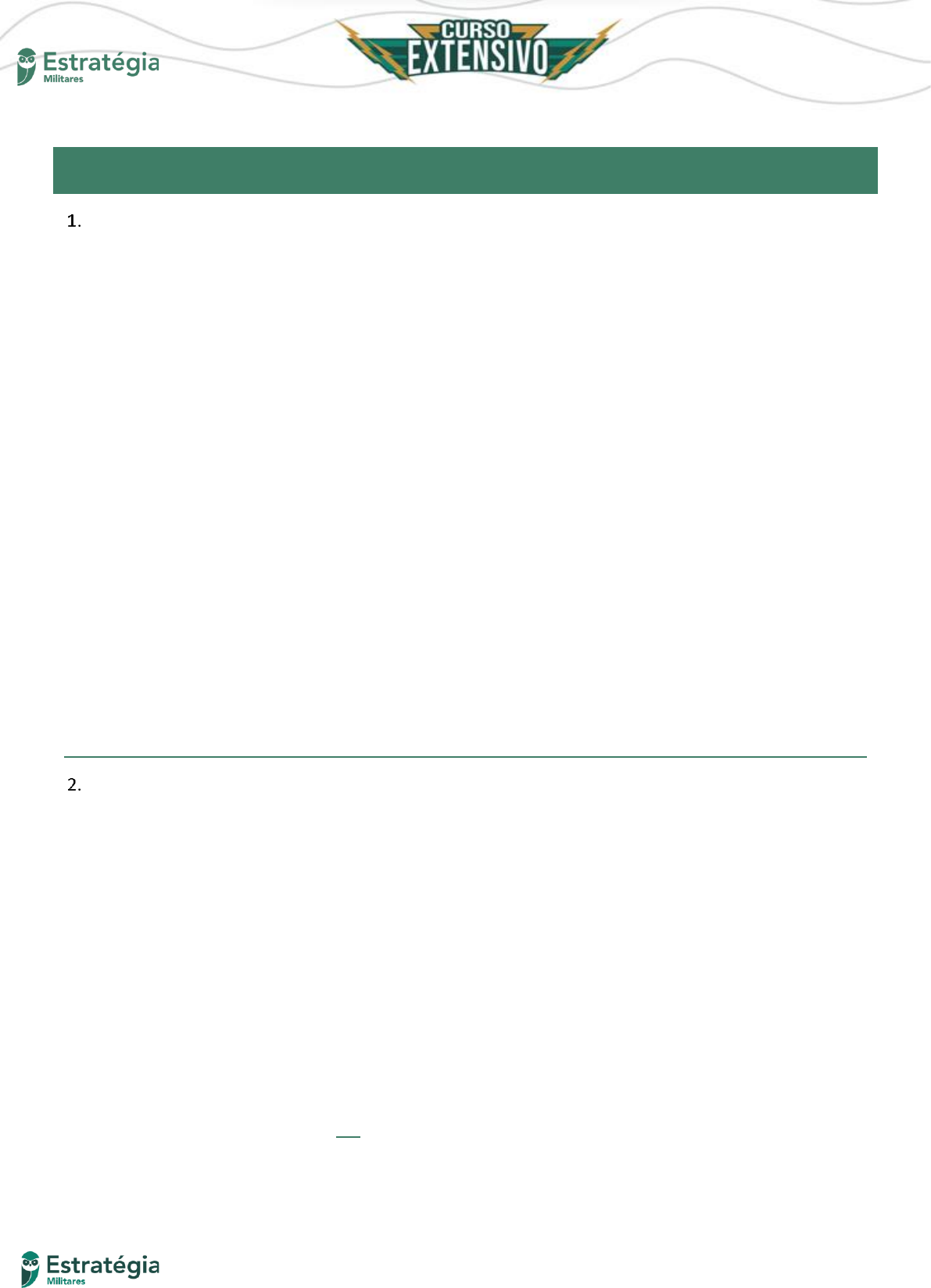 52 Prof. Ismael Santos AULA 09 – POLINÔMIOS 5.0 – Lista de Questões Comentadas – Nível 2 (EEAR-2000) Dada a equação 𝒙𝟑 − 𝟏𝟎𝒙𝟐 − 𝟐𝒙 + 𝟐𝟎 = 𝟎, e sendo a, b e c as suas reízes, o valor da soma 𝒂𝟐𝒃𝒄 + 𝒂𝒃𝟐𝒄 + 𝒂𝒃𝒄² é: a) 𝟐𝟎𝟎 b) −𝟐𝟎𝟎 c) 𝟒𝟎𝟎 d) −𝟒𝟎𝟎 Comentário: Fatorando a expressão, temos: 𝑎2𝑏𝑐 + 𝑎𝑏2𝑐 + 𝑎𝑏𝑐2 = 𝑎𝑏𝑐(𝑎 + 𝑏 + 𝑐). Por Girard, 𝑎𝑏𝑐 = −(20) e 𝑎 + 𝑏 + 𝑐 = −(−10) = 10. Logo, 𝑎𝑏𝑐(𝑎 + 𝑏 + 𝑐) = −20.10 = −200 Gabarito: B (EEAR-2001) Para que o polinômio 𝟐𝒙𝟑 +𝒎𝒙+ 𝒏𝒙 + 𝟔 seja divisível por (𝒙 + 𝟏) 𝒆 (𝒙 − 𝟑), então os valores de m e n devem ser, respectivamente, iguais a: a) −𝟕 𝒆 − 𝟑 b) −𝟔 𝒆 − 𝟏𝟎 c) −𝟔 𝒆 − 𝟐 d) −𝟐 𝒆 − 𝟔 Comentário: Para que o polinômio seja divisível por (𝑥 + 1) 𝑒 (𝑥 − 3), 𝑟1 =-1 e 𝑟2 =3 devem ser duas de suas raízes. Por Girard, podemos descobrir qual será a terceira raiz desse polinômio de grau 3: 𝑟1𝑟2𝑟3 = −6 2 = −3 → (−1)(3)𝑟3 = −3 → 𝑟3 = 1 Logo, as raízes são -1, 1 e 3. Dessa forma, pelas outras relações de Girard: 53 Prof. Ismael Santos AULA 09 – POLINÔMIOS 𝑟1 + 𝑟2 + 𝑟3 = −𝑚 2 𝑒 𝑟1𝑟2 + 𝑟1𝑟3 + 𝑟2𝑟3 = 𝑛 2 Portanto, 𝑚 = −6 𝑒 𝑛 = −2. Gabarito: C (EEAR-2001) Qualquer raiz racional da equação 𝒙𝟑 + 𝟑𝒙𝟐 − 𝟑𝒙 + 𝟗 = 𝟎 é inteira. O menor grau da equação polinomial de coeficientes reais, que admite as raízes 𝟑, 𝟐 + 𝒊 𝒆 − 𝒊,é 𝟓. Toda equação polinomial da forma 𝒂𝒙𝟒 + 𝒃𝒙𝟑 + 𝒄𝒙𝟐 + 𝒅𝒙 + 𝒆 = 𝟎 de coeficientes reais e 𝒂 ≠ 𝟎, necessariamente possui uma raiz real. São verdadeiras as afirmações: a) I, II e III. b) I e II. c) II e III. d) I e III. Comentário: I. Pelo Teorema das Raízes Racionais, temos que as possíveis candidatas a raízes racionais são: 9, −9, 3, −3, 1, −1. Portanto, inteiras. II. Como os coeficientes são reais, vale o Teorema da Raízes Conjugadas, o qual afirma que se um número complexo é raiz da equação o seu conjugado também será. Logo, teremos as raízes 3, 2 − 𝑖, 2 + 𝑖, −𝑖 𝑒 + 𝑖. Assim, há 5 raízes de modo que o menor grau desse polinômio é 5. III. Como o grau do polinômio de coeficientes reais é 4, poderíamos ter 𝑎 + 𝑏𝑖, 𝑎 − 𝑏𝑖, 𝑐 + 𝑑𝑖 𝑒 𝑐 − 𝑑𝑖, com b≠ 0 𝑒 𝑑 ≠ 0 como raízes. Logo, não se faz necessário ter uma raiz real. Gabarito: B (EEAR-2001) Uma das raízes da equação 𝒙𝟑 − 𝟏𝟐𝒙𝟐 + 𝟒𝟒𝒙 − 𝟒𝟖 = 𝟎 é a soma das outras duas. A maior raiz dessa equação é: a) 𝟕 b) 𝟔 c) 𝟒 d) 𝟐 54 Prof. Ismael Santos AULA 09 – POLINÔMIOS Comentário: Sejam 𝑎, 𝑏 𝑒 𝑐 as raízes dessa equação, com 𝑐 > 𝑏 > 𝑎. Assim, 𝑐 = 𝑎 + 𝑏. Por Girard, temos que 𝑖) 𝑎 + 𝑏 + 𝑐 = 12 𝑖𝑖) 𝑎𝑏 + 𝑎𝑐 + 𝑏𝑐 = 44 𝑖𝑖𝑖) 𝑎𝑏𝑐 = 48 De 𝑖), 2𝑐 = 12 → 𝑐 = 6. Gabarito: B (EEAR-2001) Os valores reais de a e b tais que os polinômios 𝑷(𝒙) = 𝒙𝟑 − 𝟐𝒂𝒙𝟐 + (𝟑𝒂 + 𝒃)𝒙 − 𝟑𝒃 e 𝑸(𝒙) = 𝒙𝟑 − (𝒂 + 𝟐𝒃)𝒙 + 𝟐𝒂 sejam divisíveis por 𝒙 + 𝟏 são dois números a) Inteiros positivos. b) Inteiros negativos. c) Reais, sendo um racional e outro irracional. d) Inteiros, sendo um positivo e outro negativo. Comentário: Para que os polinômios sejam divisíveis por 𝑥 + 1, temos que -1 deve ser raiz de ambos os polinômios. Assim, 𝑃(−1) = 𝑄(−1) = 0. 𝑃(−1) = −1 − 2𝑎 − 3𝑎 − 𝑏 − 3𝑏 = −1 − 5𝑎 − 4𝑏 = 0 𝑄(−1) = −1 + 𝑎 + 2𝑏 + 2𝑎 = −1 + 3𝑎 + 2𝑏 = 0 Resolvendo o sistema, 𝑎 = 3 𝑒 𝑏 = −4. Gabarito: D (EEAR-2002) É verdadeira a afirmação: “A equação 𝒙𝟖 − 𝟏𝟑𝒙𝟒 + 𝟑𝟔 = 𝟎 a) Admite 𝟒 raízes reais irracionais”. b) Admite 𝟒 raízes reais racionais positivas”. c) Não admite raízes reais”. d) Admite 𝟒 raízes reais inteiras”.