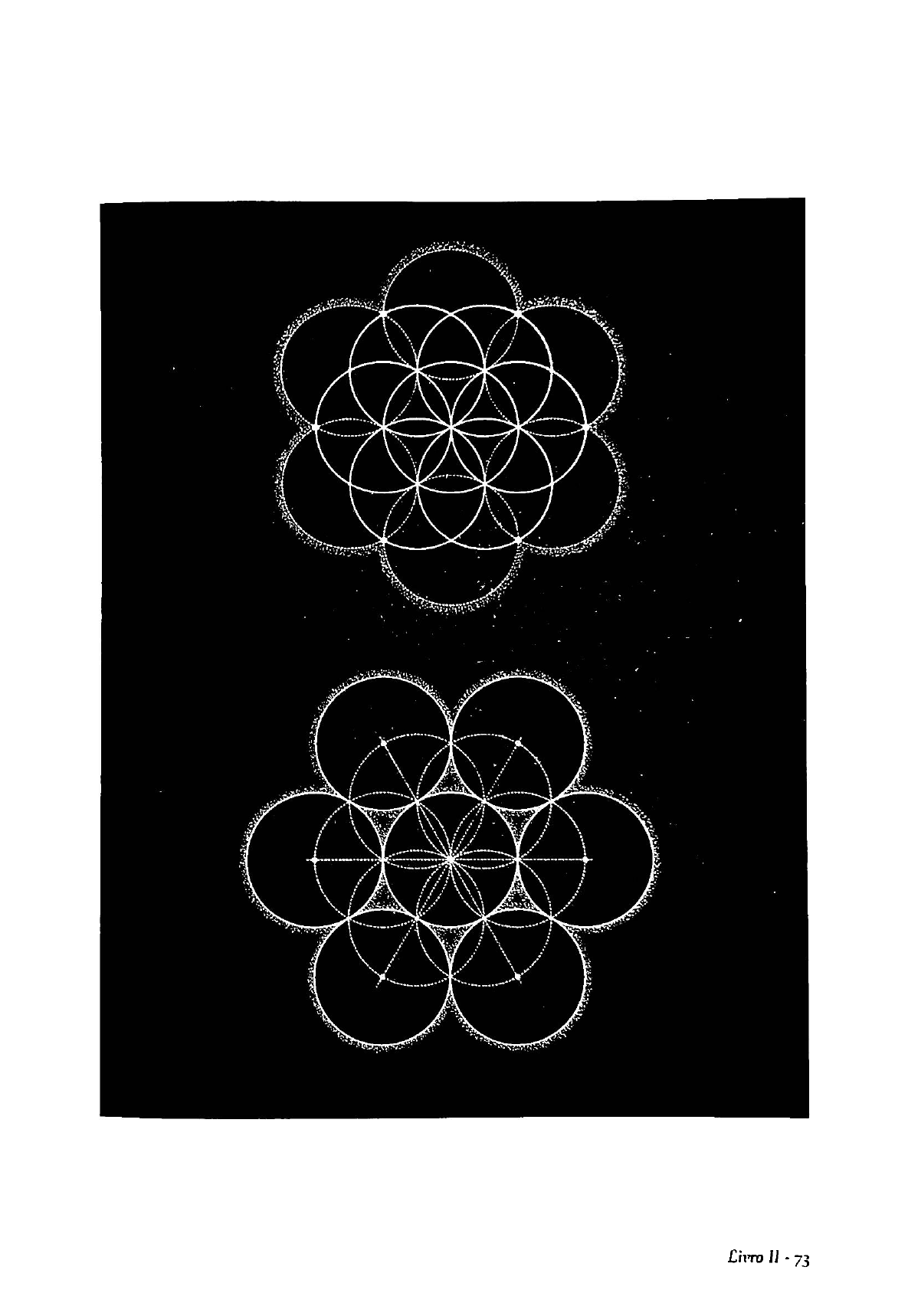 Livro II - 73 DOZE EM TORNO DE UM Como desenhar um dodecágono Assim como o um produz o seis, também o seis produz o doze. Aqui, os braços de uma estrela de seis pontas estendem-se da flor para cruzar as margens externas dos seis círculos. De uma bela maneira, consegue-se uma perfeita divi são global do espaço em doze partes (imagem ao lado). O polígono de doze lados é chamado dodecágono, que significa, literalmente, "doze faces". O dodecágono também é formado a partir de seis quadrados e seis triângulos equiláteros ajustados harmoniosamente em torno de um hexágono - consegue vê-los todos na imagem ao lado? Além disso, essa forma se divide em seus fatores - três, quatro e seis - como quatro triângulos, três quadrados e dois hexágonos (linha inferior, imagem ao lado). Abaixo está a versão tridimensional da mesma história. Uma bola natural mente acomoda doze outras ao redor de si, de modo que cada uma delas toque a bola central e quatro vizinhas. Pode-se observar esse tipo de disposição em maçãs e laranjas em qualquer banca de um mercado. Essa forma é chamada cuboctaedro e está intimamente relacionada ao tetraedro e ao cubo que vimos na página 69. A maioria dos cristais cresce ao longo dessas linhas. Em três dimensões, o doze é o número que se encaixa em torno do um, da mesma maneira que o seis se encaixa em torno do um em duas dimensões. O Novo Testamento, por exemplo, é uma história de um professor cercado por doze discípulos. -4 - Quojni nt"!