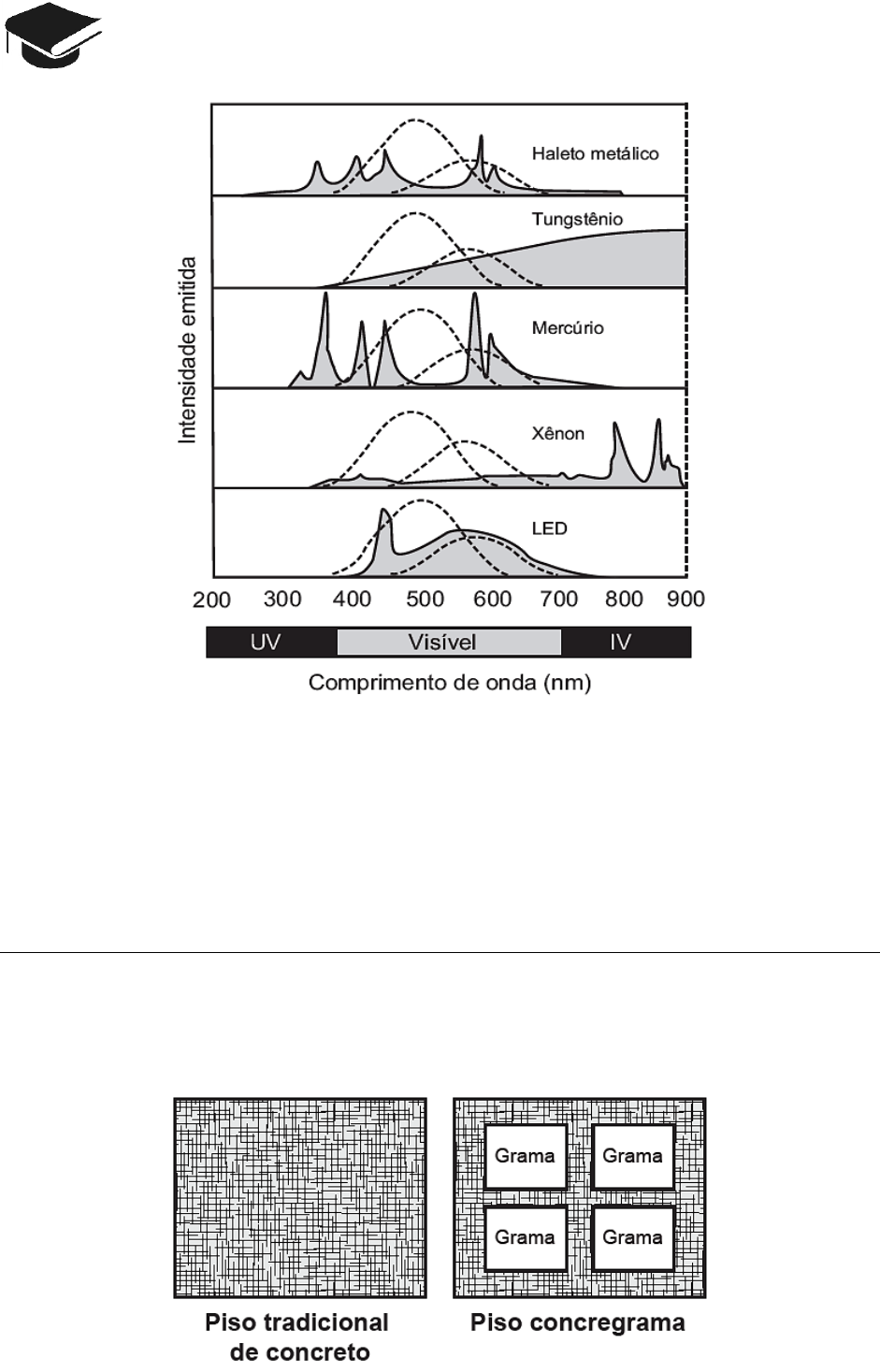 CADERNO FÍSICA ENEM 2009 a 2018 88 novocadernoenem@gmail.com (Disponível em: http://zeiss-campus.magnet.fsu.edu. Acesso em: 8 maio 2017 - adaptado) Qual tipo de lâmpada melhor atende ao desejo do arquiteto? A) Haleto metálico. B) Tungstênio. C) Mercúrio. D) Xênon. E) LED. Questão 283 (2017.1) Para se adequar às normas ambientais atuais, as construtoras precisam prever em suas obras a questão do uso de materiais de modo a minimizar os impactos causados no local. Entre esses materiais está o chamado concregrama ou pisograma, que é um tipo de revestimento composto por peças de concreto com áreas vazadas, preenchidas com solo gramado. As figuras apresentam essas duas formas de piso feito de concreto. (PONTES, K. L. F. Estudo de caso de um protótipo experimental […]. Disponível em: http://monografias.poli.ufrj.br. Acesso em: 9 maio 2017 - adaptado)