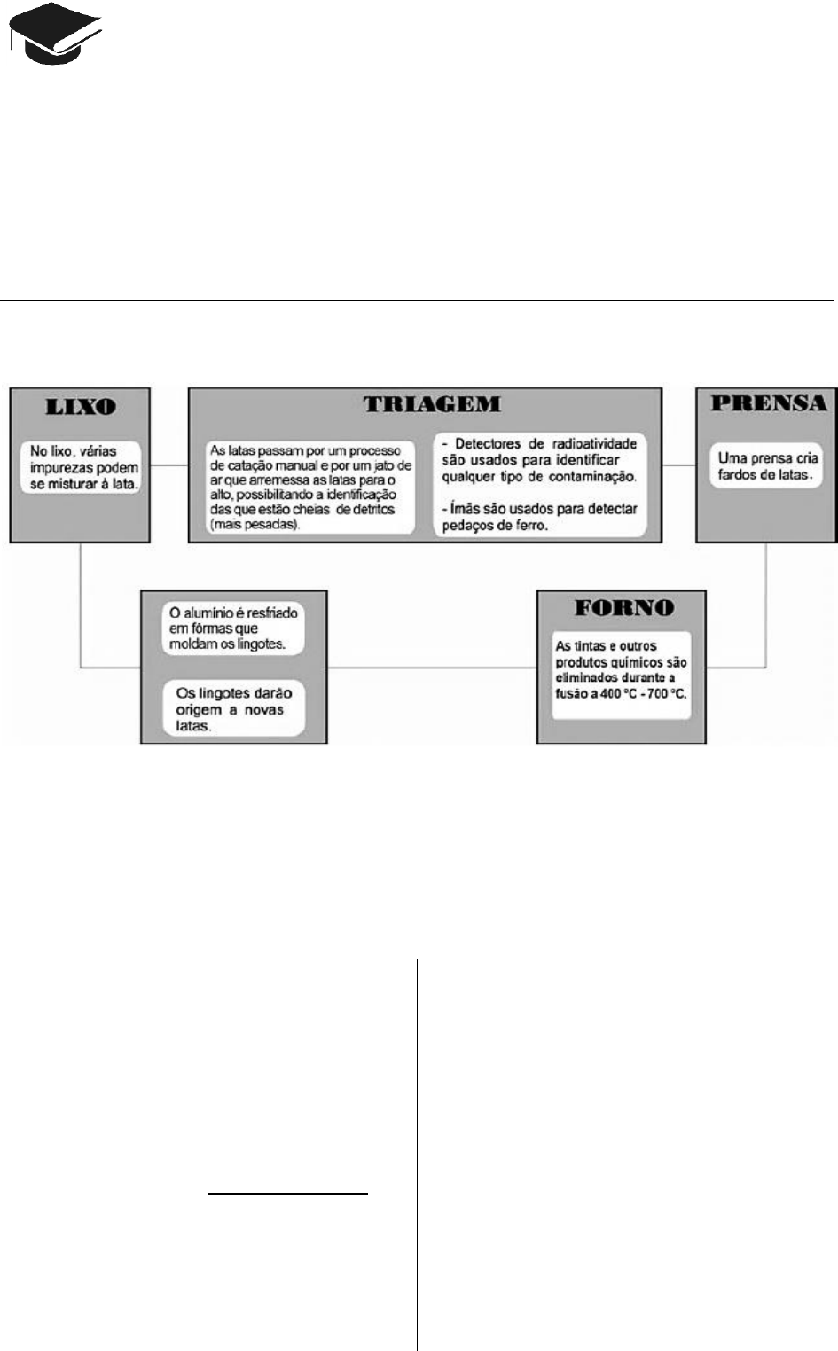 CADERNO QUÍMICA ENEM 2009 a 2018 16 novocadernoenem@gmail.com A alteração do equilíbrio anterior, relacionada ao vazamento do refrigerante nas condições descritas, tem como consequência a: A) liberação de CO2 para o ambiente. B) elevação da temperatura do recipiente. C) elevação da pressão interna no recipiente. D) elevação da concentração de CO2 no líquido. E) formação de uma quantidade significativa de H2O. Questão 41 (2010.2) O Brasil é um dos países que obtêm melhores resultados na reciclagem de latinhas de alumínio. O es- quema a seguir representa as várias etapas desse processo: A temperatura do forno em que o alumínio é fundido é útil também porque: A) sublima outros metais presentes na lata. B) evapora substâncias radioativas remanescentes. C) impede que o alumínio seja eliminado em altas temperaturas. D) desmagnetiza as latas que passaram pelo processo de triagem. E) queima os resíduos de tinta e outras substâncias presentes na lata. Questão 42 (2010.2) Fator de emissão (carbon footprint) é um termo utilizado para expressar a quantidade de gases que contribuem para o aquecimento global, emitidos por uma fonte ou processo industrial específico. Pode-se pensar na quantidade de gases emitidos por uma indústria, uma cidade ou mesmo por uma pessoa. Para o gás CO2, a relação pode ser escrita: Fator de emissão de CO2 = Massa de CO2 emitida Quantidade de material O termo “quantidade de material” pode ser, por exemplo, a massa de material produzido em uma indústria ou a quantidade de gasolina con- sumida por um carro em um determinado perío- do. No caso da produção do cimento, o primeiro passo é a obtenção do óxido de cálcio, a partir do aquecimento do calcário em altas temperatu- ras, de acordo com a reação: CaCO3(s) → CaO(s) + CO2(g) Uma vez processada essa reação, outros com- postos inorgânicos são adicionados ao óxido de cálcio, tendo o cimento formado 62% de CaO em sua composição. Dados: Massas molares em g/mol: CO2 = 44; CaCO3 = 100; CaO = 56. (TREPTOW, R. S. Journal of Chemical Education. v. 87 nº 2, fev. 2010 - adaptado)
