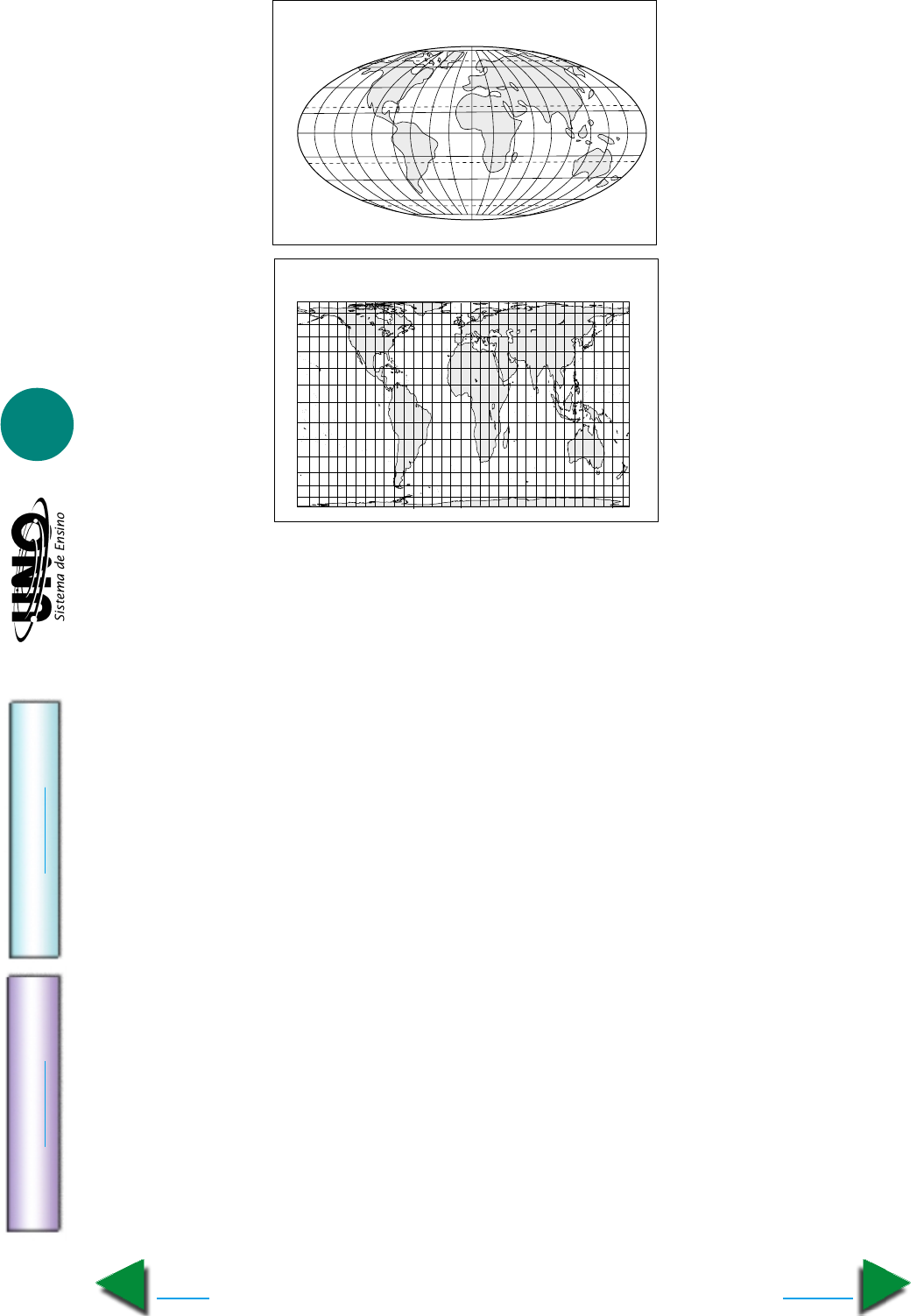 GEOGRAFIA - Espaço geográfico: conceitos e representações IM PR IM IR Voltar GA BA RI TO Avançar 2 3. PUC-RJ Responder à questão com base nos mapas abaixo. Sobre os mapas acima, é correto afirmar que: a) os dois são de mesma escala e representam o mesmo espaço real, pertencendo à catego- ria conforme. b) o mapa 1 é equivalente e cônico, o mapa 2 é cilíndrico eqüidistante, porém a escala do 1 é maior do que a do 2. c) os dois são de Mercator, pois caracterizam o Eurocentrismo, que põe em destaque a Europa. d) a escala do mapa 1 é maior do que a do mapa 2, pois o detalhamento é menor. e) o mapa 1 é afilático, projeção conhecida de Mollweide, e o mapa 2 é de Peters, cilíndri- co equivalente. 4. U. Caxias do Sul-RS Responda à questão com base nas afirmativas abaixo sobre as dife- rentes projeções cartográficas. I. A projeção cilíndrica de Mercator é bastante utilizada. Além de preservar o cinturão equatorial, conserva o contorno dos continentes. II. A projeção cônica é utilizada para representar principalmente as zonas temperadas, pois, nessas latitudes, a deformação resultante é menor. III. A projeção de Peters é pouco utilizada, pois, apesar de manter as áreas dos continen- tes, implica a deformação dos seus contornos. Das afirmações acima, a) apenas a I está correta. b) apenas a I e a II estão corretas. c) apenas a I e a III estão corretas. d) apenas a II e a III estão corretas. e) a I, a II e a III estão corretas. 80º 80º 60º 60º 40º 40º 20º 20º 0º Mapa 1 Mapa 2 160º 160º 15º 15º 45º 45º 75º 75º 0º 120º 120º80º 80º40º 40º0º GEOGRAFIA - Espaço geográfico: conceitos e representações IM PR IM IR Voltar GA BA RI TO Avançar 3 5. U. E. Maringá-PR Assinale o que for correto sobre o planeta Terra e a sua representação cartográfica, recorrendo às figuras, quando necessário. 01) Na figura 1, o satélite imageador, percorrendo a órbita S, poderá registrar imagens de todos os pontos do planeta, sem alteração da sua órbita, devido ao movimento de rotação da Terra. 02) Pelo fato de os movimentos de rotação da Lua e de sua translação ao redor da Terra terem a mesma duração, esse satélite apresenta sempre a mesma face voltada para o nosso planeta. 04) O Plenilúnio corresponde à fase em que a Lua se encontra entre o Sol e a Terra. Nessa fase, podem ocorrer os eclipses lunares, que resultam na projeção do cone de sombra da Lua sobre a Terra. 08) Com base no que sabemos sobre a inclinação do eixo terrestre, em combinação como o movimento de translação da Terra, apenas em dois dias no ano – um dia no mês de março e outro no mês de setembro – os dois hemisférios terrestres podem receber, em teoria, a mesma quantidade de energia solar. Esses dias correspondem aos equinócios, sendo a duração do dia igual à duração da noite. 16) A projeção I, na figura 2, que corresponde à cilíndrica de Mercator, tende a deformar as áreas localizadas nas altas latitudes, fazendo que essas áreas pareçam maiores do que são. 32) A projeção II, na figura 2, é do tipo zimutal, sendo que, na ilustração, o plano tem o seu ponto central tangente ao pólo. Nesse tipo de representação, as áreas próximas ao ponto de tangência sofrem menor deformação, mas essa deformação cresce à medida que aumenta a distância do ponto central. 64) A projeção III, na figura 2, corresponde à projeção denominada cônica. Nela, os para- lelos convergem para um ponto central e as latitudes são representadas por linhas concêntricas. Esse tipo de projeção não gera deformações aparentes. Dê como resposta, a soma das alternativas corretas. 6. UFCE A compreensão e o uso das coordenadas geográficas são de importância funda- mental na cartografia. A esse respeito, responda: a) O que são coordenadas geográficas? b) Qual a sua utilização no estudo do espaço geográfico? ecife a S uiab b S aima S igura 1 proje proje ã ll proje ã lll igura 2