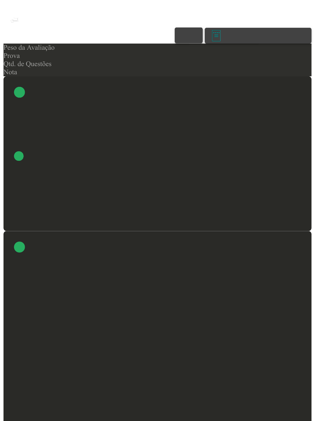 Prova Impressa GABARITO | Avaliação da Disciplina (Cod.:761016) Peso da Avaliação 10,00 Prova 78256582 Qtd. de Questões 20 Nota 8,00 A avaliação na educação escolar deve ter uma postura diagnóstica, pois, é objetivo da avaliação fornecer subsídios para uma prática pedagógica que conduza o aluno a avançar no progresso da aquisição do conhecimento. Neste sentido, é característica da avaliação diagnóstica na educação escolar: Assinale a alternativa correta. A A postura investigativa e reflexiva. B A classificação das aprendizagens e não aprendizagens. C A ação individual e a competição entre os alunos. D A disciplina e diretividade do professor. A programação neurolinguística (PNL) faz com que todos tenham uma predominância sensorial, ou seja, interpreta-se o mundo de forma mais visual, auditiva ou sinestésica. Embora todos tenham os sistemas visual, auditivo e sinestésico, é comum que um deles seja mais desenvolvido que os outros e que isso influencie na forma de aprender sobre os mais diversos temas. Diante disso, analise e associe os itens que seguem: I – Estilo de aprendizagem visual. II – Estilo de aprendizagem auditiva.III – Estilo de aprendizagem sinestésica. ( ) As pessoas com este estilo de aprendizagem fazem uso de imagens para obter e reter as informações. ( ) As pessoas com este estilo de aprendizagem captam melhor as informações fazendo ou executando. ( ) As pessoas com este estilo de aprendizagem captam e retêm melhor as informações ouvindo. Assinale a alternativa que apresenta a sequência correta de respostas: A III – I – II. B II – III – I. C I – II – III. VOLTAR A+ Alterar modo de visualização 1 2 Avaliação da Disciplina https://ava2.uniasselvi.com.br/subject/grades-and-tests/answer-book/e... 1 of 9 17/03/2024, 18:15 D I – III – II. Embora se note preocupação com relações sociais, a ênfase dada nesta abordagem e na capacidade do aluno de integrar informações e processá-las. A preocupação é direcionada às estruturas do pensamento e da inteligência. Qual abordagem está presente na afirmativa? Assinale a alternativa correta. A Sociocultural. B Comportamentalista. C Humanista. D Cognitivista. Aprendizagem é o desafio principal da educação escolar. É papel do professor articular o ensino à aprendizagem. Ao longo da atuação, percalços na aprendizagem vêm a tona, o que torna mais importante ainda a intervenção docente. No que se refere à origem dos problemas de aprendizagem, podemos afirmar que: Assinale a alternativa correta. A Os problemas de aprendizagem estão associados, em sua maioria, à desestrutura familiar. B os problemas de aprendizagem são decorrentes de disfunção cerebral que torna os sujeitos improdutivos. C A principal causa das dificuldades de aprendizagem diz respeito à capacidade intelectual dos sujeitos, que impede que o conhecimento seja ensinado. D Tanto os problemas externos (como troca de professores) quanto os problemas internos (capacidade intelectual) podem causar problemas de aprendizagem. Comunicação é o processo de transmissão de informação de uma pessoa para outra e compartilhada por ambas. Nesse sentido, assinale V para verdadeiro e F para falso acerca dos elementos que compõem o processo de comunicação: ( ) Emissor ou fonte: é a pessoa, coisa ou processo para o qual a mensagem é enviada. ( ) Mensagem: é o uso de SMS e mensagens de Whatsapp. 3 4 5 Avaliação da Disciplina https://ava2.uniasselvi.com.br/subject/grades-and-tests/answer-book/e... 2 of 9 17/03/2024, 18:15 ( ) Canal: meio físico ou virtual situado entre emissor e receptor. ( ) Destino ou destinatário: é a pessoa, coisa ou processo que emite a mensagem. Assinale a alternativa que apresenta a sequência correta de respostas: A V – F – V – F. B V – F – F – F. C F – V – V – F. D F – F – V – F. As teorias de aprendizagem buscam reconhecer a dinâmica envolvida nos atos de ensinar e aprender. Cada teoria foi elaborada num tempo histórico, influenciada pelos paradigmas vigentes. De acordo com o enfoque das teorias de aprendizagem citadas relacionadas abaixo, os blocos: I. Comportamentalista.II. Interacionista. ( ) A aprendizagem consiste em gravar respostas corretas e eliminar as incorretas. ( ) A aprendizagem é definida pela aquisição de novas respostas ou reações. ( ) O professor é considerado transmissor de conhecimentos ao aluno e administra as condições de transmissão do conteúdo. ( ) A aprendizagem acontece quando o indivíduo processa a informação, compreende e dá significado a ela. ( ) As mais recentes teorias e de grande influência no processo institucional são as de Piaget e Vygostsky. A sequência está correta em: A I, I, I, II, II. B I, I, II, I, II. C II, II, I, I, II. D I, II, I, II, II. O fracasso escolar possui causas variadas que podem se relacionar a elementos econômicos, ideológicos ou pedagógicos. Cada um desses elementos apresenta uma lista de fatores que os possibilita. Analisando o fracasso escolar, do ponto de vista pedagógico, podemos dizer que um professor que busca sua superação 6 7 Avaliação da Disciplina https://ava2.uniasselvi.com.br/subject/grades-and-tests/answer-book/e... 3 of 9 17/03/2024, 18:15 A Defende a mudança do currículo da escola, para garantir que todos possam aprender, minimamente, o que está colocado neste documento. B Ensina a todos os alunos da mesma maneira e ao mesmo tempo porque todos têm direito de apreender os conteúdos na mesma profundidade. C Sugere que a escola enturme os alunos de acordo com seus conhecimentos e com seu desenvolvimento, para favorecer a didática. D Diferencia o ensino de modo que cada estudante vivencie situações que o levem à aprendizagem. Separar os sujeitos diferentes não é sinônimo de promoção de igualdade. Igualdade aqui entendida como igualdade de oportunidades e não de tornar todos iguais. O importante é a busca pela articulação das