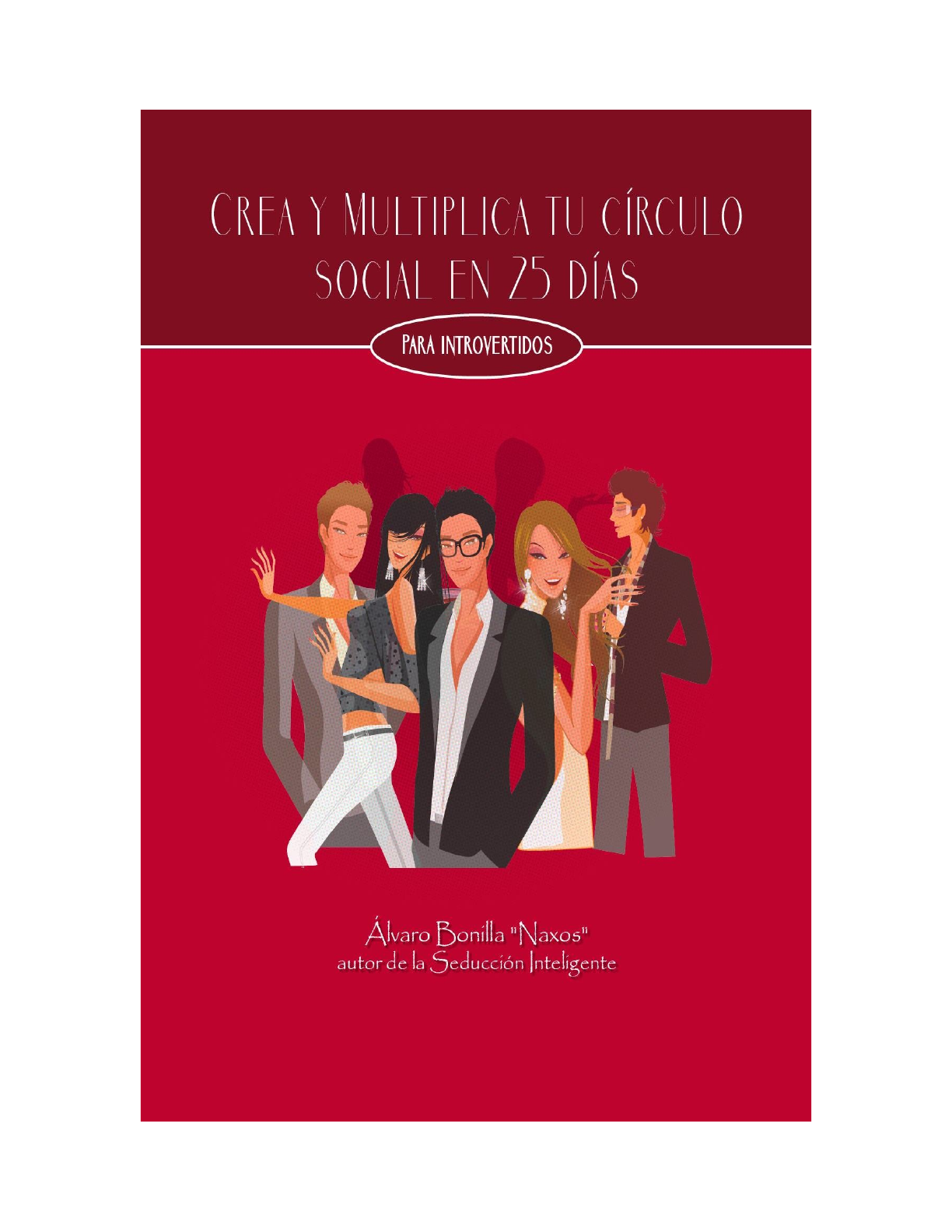 2 CREA Y MULTIPLICA TU CÍRCULO SOCIAL EN 25 DÍAS! ! ! ! ! ! ! ! ! ! ! CREA Y MULTIPLICA TU CÍRCULO SOCIAL EN 25 DÍAS Para introvertidos y tímidos ! ! ! ! ! ! ! ! ! ! ! ! ! ÁLVARO BONILLA “NAXOS” Autor de “La Seducción Inteligente” ! LA SEDUCCIÓN INTELIGENTE http://seduccioninteligente.org 3 ÁLVARO BONILLA “NAXOS”! ! ! ! ! ! ! ! ! ! Copyright © 2015 Por Álvaro Bonilla Ballesteros “Naxos”. Todos los derechos reservados. Ninguna porción de este libro puede ser reproducido en ninguna forma –mecánicamente, electrónicamente o por alguna otra forma, incluyendo fotocopia, grabación o por cualquier medio de almacenamiento y reproducción- sin la autorización expresa del autor. ! Para el diseño de la portada y página final del libro conté con el apoyo de tres integrantes de mi grupo de Facebook Vida Extraordinaria. El ganador ha ido a la portada, el segundo lugar ha ido a la página final. Y también debo un reconocimiento a Luis Noel Cárdenas "Ziete Eter" Lic. en Diseño Gráfico ! Diseño portada: Iván Eduardo Rodriguez Email: bizarrosdyp@yahoo.es ! Diseño Contraportada: Luis Gabriel Lancheros. Email: luisgabriel.lancheros@hotmail.com ! ! ! ! ! ! ! ! ! LA ESTRATEGIA DE LA SEDUCCIÓN http://naxoseduccion.blogspot.com 4 CREA Y MULTIPLICA TU CÍRCULO SOCIAL EN 25 DÍAS! ! ! ! ! Prólogo ! Como sabrás soy una persona introvertida, en general prefiero pasármela sólo aunque gracias a este sistema he amplificado mi vida social y le he encontrado el gusto a socializar. Ser una persona social no es parte de mi naturaleza, no es parte de lo que naturalmente me fluye, si me preguntas 9 de cada 10 veces preferiría quedarme en casa haciendo lo que me gusta, incluso trabajando, pero solo. O quizás preferiría salir a tomar una cerveza con un amigo, máximo dos. ! Mi estado natural es estar conmigo mismo, y vaya que he aprendido a disfrutarlo. Antes me culpaba mucho y era paradójico, porque me sentía solo pero a la vez me costaba mucho socializar. Hoy cuento con un círculo social amplio y lo mejor de todo es que he aprendido a gestionarlo, con mis reglas, y partiendo de que ellos sepan cómo soy, sin fingir que soy el más social o el más extrovertido. ! Tengo una vida personal e íntima satisfactoria, me siento pleno conmigo mismo ¿Es eso un delito? No, aprendí a aceptarme completamente y a amar ser así. ! Cuando decidí emprender este proyecto de los 25 días y trabajarlo con mis clientes es porque me di cuenta que para ellos lo más difícil es socializar, que no tienen círculos sociales y por ello se ven abocados a cosas como hablar con desconocidos en la calle, importunarlos como vendedores de enciclopedias. Cuando veía ello y la ansiedad en sus ojos de hacer cosas semejantes decidí crear este programa, que ha tenido éxito con todas las personas que lo han hecho. ! Decidí entonces crear un sistema simple basado en lo que en algún momento me ayudó a mi y fue comprender el concepto de “Gestión de los círculos sociales”, en el cual administro mis relaciones según mis intereses, prioridades, plazos y tiempos. Eso es lo que comparto con mis clientes. Al principio la idea me resultó demasiado controladora, pues me parecía que se basaba en una aproximación no LA SEDUCCIÓN INTELIGENTE http://seduccioninteligente.org 5 ÁLVARO BONILLA “NAXOS” natural a las relaciones. Establecer un calendario para “llamar a Patricia” o “salir con Fabián” me parecía muy raro. Quizá forzado. ! Al principio me resistí a la idea, como un verdadero introvertido. Sin embargo luego descubrí que tras ella había una creencia limitante y un temor al cambio. Descubrí que de una forma natural, como debía de ser supuestamente, no había conseguido ningún resultado. Y también descubrí que hoy día tenemos un gran poder en la sistematización, estructuración y micro gerencia aplicada a todo lo que hacemos. ¿Por qué no usar la tecnología o las listas o los procesos a favor de lo que hacemos y queremos y darle con ello mucho más control, estructura y capacidad de ver resultados? ! Qué importaba la forma si iba a tener un buen resultado. Cuando puse a prueba el sistema y descubrí que conectaba más, que tenía dosis extra y significativas de diversión, intimidad, placer y complicidad, que crecían mis contactos profesionales, que conocía a más mujeres, que conocía a más socios potenciales, que era mejor vendedor de mis ideas, que podía tener más y mejores ideas, que podía ver a otras personas que habían pasado por lo mismo que yo, descubría maestros y maestras, aprendía me di cuenta que el sistema era tremendamente efectivo y potente. ! Hoy día tengo eso y mucho más, cuando me abrí al cambio y a la posibilidad de aprender de otros, la posibilidad fue genial. Y manejo lo mejor de ambos mundos a mi estilo. Sigo conservando mis valiosos espacios sólo, hay días donde no quiero saber de los demás, pero a base de disciplinar mis hábitos, motivarme –y en ocasiones obligarme- logré ampliar mi mundo. Logré cosas tan fascinantes como viajar por Europa sin pagar un euro en hoteles, quedándome en casas de amigos, o por ejemplo, formar un grupo de amigos para jugar juegos de mesa (cosa que me encantaba y terminaba siempre jugando solo), tener grupos Master Mind para gestionar mis negocios y tener información estratégica que no te encuentras en los libros. Logré conectar con mujeres maravillosas, de todas las edades, profesiones y que me enseñaron mucho. ! Sólo recibí beneficios y mis clientes me han dado un impresionante feedback de este método, así que te animo a dar el siguiente paso, tu mente quizá querrá LA ESTRATEGIA DE LA SEDUCCIÓN http://naxoseduccion.blogspot.com 6 CREA Y MULTIPLICA TU CÍRCULO SOCIAL EN 25 DÍAS convencerte de seguir como estás, pero la clave del éxito en todo lo que te propongas está en la adquisición de nuevos hábitos, y para cultivar una vida social estimulante deberás crear este nuevo hábito. 
