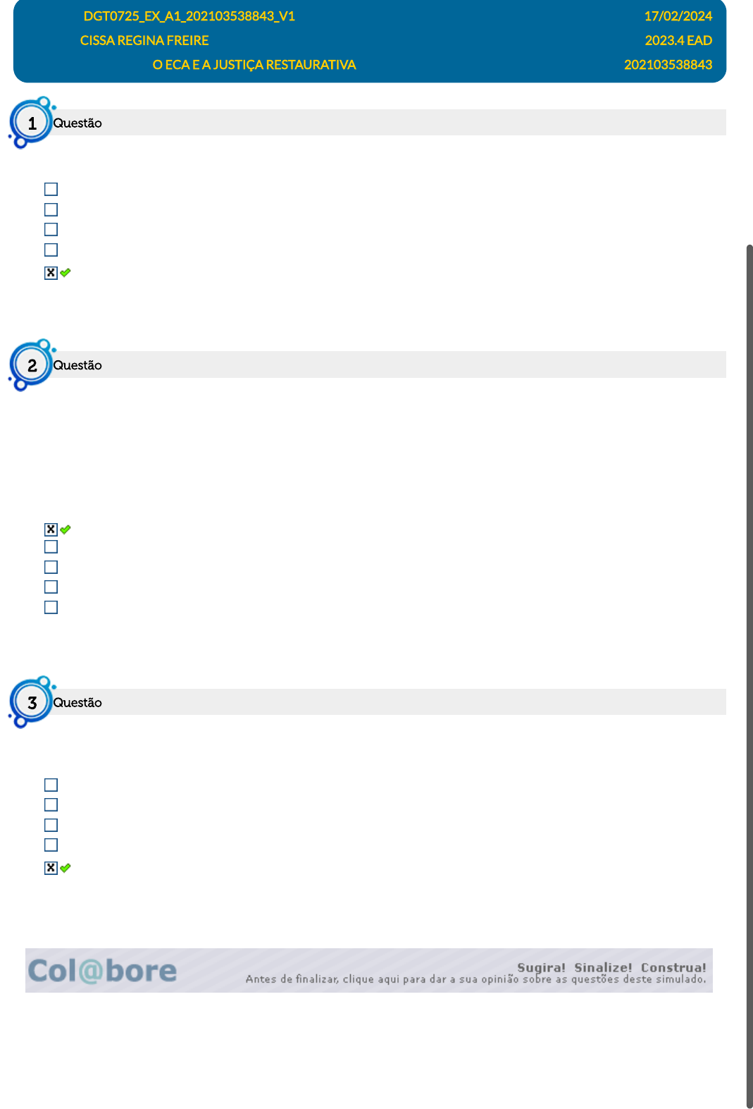 Disciplina: DGT0725 - O ECA E A JUSTIÇA RESTAURATIVA 202103538843