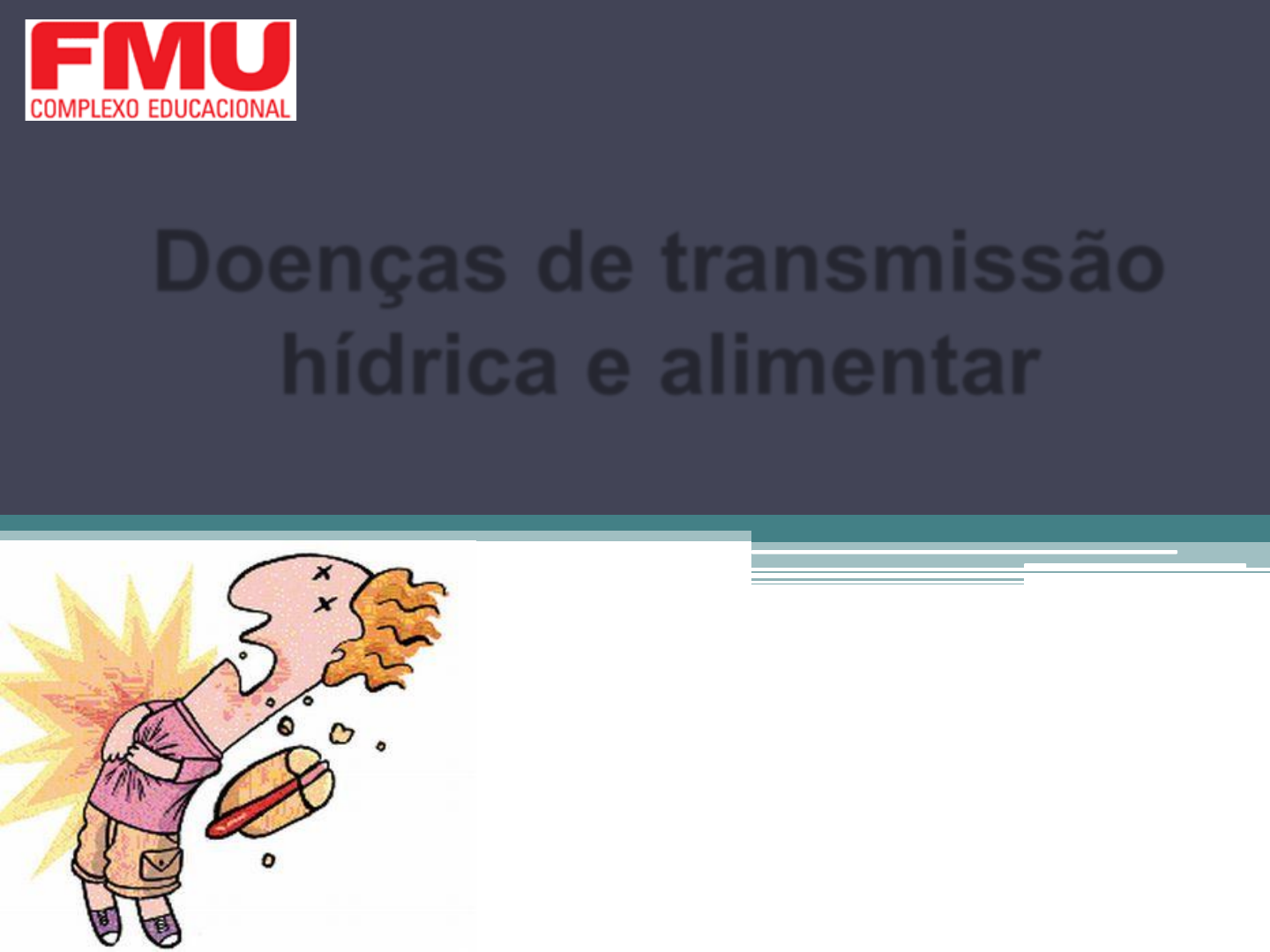 Doenças de transmissão hídrica e alimentar 2024 http://www.google.com.br/url?sa=i&rct=j&q=&esrc=s&frm=1&source=images&cd=&cad=rja&docid=MeHb-VB9JE-fKM&tbnid=KhNRuLYXHPrQRM:&ved=0CAUQjRw&url=http://silvana-matos.blogspot.com/2010/07/as-doencas-transmitidas-por-alimentos.html&ei=Wls2UaKsHYuu8ASp0oGwAQ&bvm=bv.43148975,d.dmQ&psig=AFQjCNGxCMaVeUEdnE4tHn3Dd2LQSBD_iQ&ust=1362603208106338 Doenças de transmissão hídrica e alimentar “No mundo existem apenas três grupos de pessoas: • As que já tiveram uma doença transmitida por alimentos (DTA), • As que estão tendo e • As que vão ter”. Doenças de transmissão hídrica e alimentar Nem sempre o alimento contaminado tem alterações em suas características sensoriais. http://www.google.com.br/url?sa=i&rct=j&q=&esrc=s&frm=1&source=images&cd=&cad=rja&docid=KI-c570-di1-eM&tbnid=ZgG33cZachlknM:&ved=&url=http://buffetimperialalagoas.com/servicos-2/almoco/&ei=-BRrUeK-O7K40AGW8oH4Dw&bvm=bv.45175338,d.dmQ&psig=AFQjCNGujCAJLbnTk8aH3ctjRksHBcpNOQ&ust=1366058617330593 Síndrome ou doença originada pela ingestão de alimentos e/ou água contaminados por micro- organismos, toxinas e ou outros agentes químicos ou físicos. Doenças de transmissão hídrica e alimentar Principais doenças transmitidas através da água a seres humanos • Verminoses; • Cólera; • Diarréia dos viajantes; • Febre tifóide; • Hepatite A; • Leptospirose; • Poliomielite. Principais agentes causadores da doença diarreica aguda • Vírus - rotavírus e norovírus; • Parasitoses - Cryptosporidium e Giardia; • Bactérias - Bacillus cereus, Clostridium perfringens, Escherichia coli patogênica (vários tipos), Salmonella spp., Shigella spp., Staphylococcus aureus, etc. Surto Ocorrência de dois ou mais casos que ingeriram alimento (s) em comum e tiveram as mesmas manifestações clínicas. Grande variedade de microrganismos podem contaminar os alimentos Fatores envolvidos CONTAMINAÇÃO TEMPO TEMPERATURA Outros fatores: umidade, oxigênio, pH, luz, etc... 65 ZONA DE PERIGO: ENTRE 5º E 63ºc Diferenciando... • Infecções ▫ Ex.: Salmonella spp., Shigella spp., Yersinia enterocolitica e Campylobacter jejuni • Toxinfecções ▫ Ex.: Escherichia coli enterotoxigênica, Vibrio cholerae, Vibrio parahaemolyticus, Clostridium perfringens e Bacillus cereus (cepa diarreica) • Intoxicações ▫ Ex.: Staphylococcus aureus, Bacillus cereus (cepa emética) e Clostridium botulinum MICOTOXINAS • Produtos do metabolismo secundário de fungos. • Importantes contaminantes de alimentos e rações animais. • Efeitos tóxicos agudos e crônicos no homem e em animais. Toxinfecção alimentar Muitos casos não são diagnosticados ou notificados Manifestações clínicas são geralmente inespecíficas • Problema de saúde pública mais abrangente no mundo atual. • Causa impacto econômico negativo - perdas econômicas para as indústrias, para o turismo e para a sociedade. Toxinfecção alimentar Bactérias causadoras de DTAs Infecciosas : ex. Salmonella enteritidis Produtoras de toxinas: ex. Clostridium botulinum Salmonelose Salmonella spp. • Anaeróbia facultativa • Crescimento ótimo: 37º C ▫ T – 5 a 47º C. ▫ pH - 4,0 a 9,0 ▫ Sobrevive a congelamento e após alguns processos térmicos. Período de incubação • De 8 a 36 horas Principais alimentos veiculadores • Ovos • Maioneses • Queijos • Carnes • Frutas e vegetais (adubos orgânicos) Grupos de risco Manifestações clínicas • Febre, diarreia, dores abdominais, vômitos, desidratação, sepse e morte. Prevenção • Medidas de controle no preparo de alimentos (destruição da bactéria pelo calor). Prevenção • Medidas de controle de manipuladores de alimentos. Botulismo BOTULISMO • Intoxicação aguda pela neurotoxina do Clostridium botulinum. • Caracterizada por paralisia flácida da musculatura, geralmente de evolução fatal. ▫ Bloqueio da liberação de acetilcolina • Latim – botulus - salsicha. • C. botulinum – bastonete, anaeróbio estrito, Gram-positivo. • Toxina – liberada durante a autólise da bactéria, termo sensível (100 oC - 10 min). Potência: • 800 milhões de vezes mais potente que cianureto. • 300 milhões de vezes mais potente que veneno de cascavel. Principais alimentos veiculadores • Conservas caseiras (palmito, etc). • Embutidos Patogenia • Porta de entrada – via oral - absorção da toxina • PI x quantidade ingerida – 18 h/2 sem. • Bloqueio do impulso nervoso • Paralisia total ou parcial dos músculos de locomoção, mastigação e deglutição. Manifestações clínicas • Ausência de febre • Decúbito, protusão da língua e midríase • Visão dupla • Incontinência urinária • Dificuldade respiratória e morte por asfixia • Evolução favorável – 7 a 15 dias – recuperação é lenta. Prevenção • Não consumir alimentos enlatados cuja embalagem esteja danificada, com a tampa estufada ou enferrujada. • Não consumir alimentos industrializados que apresentem líquido ou vidro turvo. Prevenção • Ferver por 10 minutos todos os alimentos enlatados antes do consumo, especialmente o palmito, que é o principal causador do botulismo em adultos. • Preparar os alimentos caseiros com um rigoroso cuidado de higiene. Staphylococcus aureus • Reservatórios homens e animais domésticos •Indivíduos saudáveis albergam S. aureus •Podem ser recuperados de feridas cutâneas infectadas (braços e mãos) MANIPULADORES DE ALIMENTOS SÃO A PRINCIPAL FONTE DE CONTAMINAÇÃO Epidemiologia HOMEM Feridas infectadas, acne, queimaduras nas mãos Trato respiratório (boca, nariz, garganta) MÃOS Tosse, espirros ALIMENTO Armazenamento inadequado TOXINA INTOXICAÇÃO ESTAFILOCÓCICA CONTAMINAÇÃO ARMAZENAMENTO INADEQUADO MULTIPLICAÇÃO MICROBIANA PRODUÇÃO ENTEROTOXINAS INGESTÃO TOXINA Principais alimentos incriminados em surtos •Produtos lácteos – mastite estafilocóccica •Salada de bat