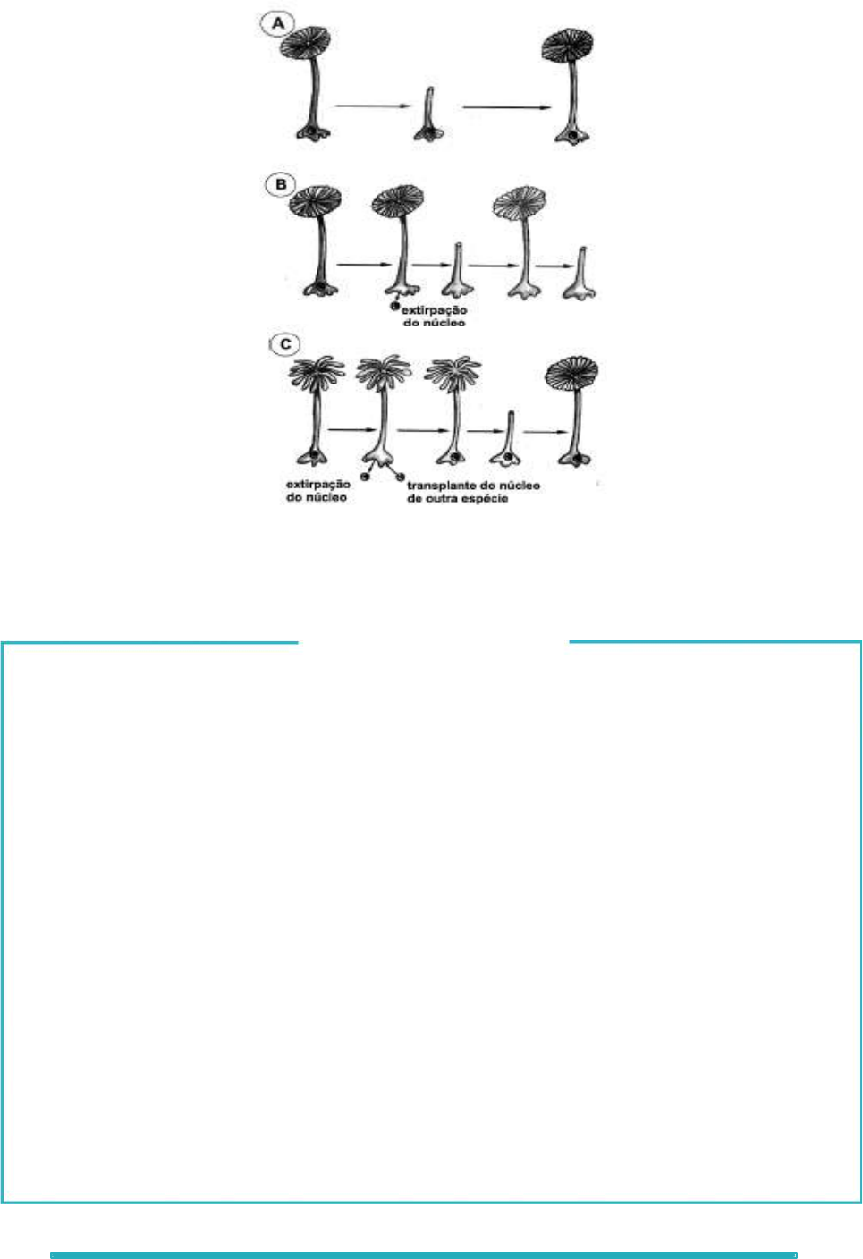 37 36. (Uema) A Acetabularia é uma alga marinha, unicelular, com cerca de 5 cm de altura, cuja estrutura é formada por um “chapéu” (ou umbela) e uma haste (ou pé), onde se localiza o núcleo. Analise as experiências de microdissecção realizadas com essa alga, demonstradas nos esquemas abaixo. SOARES, José Luis. Biologia. São Paulo: Scipione, v.único, 1997, p.63. Com base nas experiências apresentadas, explique os resultados observados, destacando o papel do núcleo celular. Resolução e Respostas Definitivas