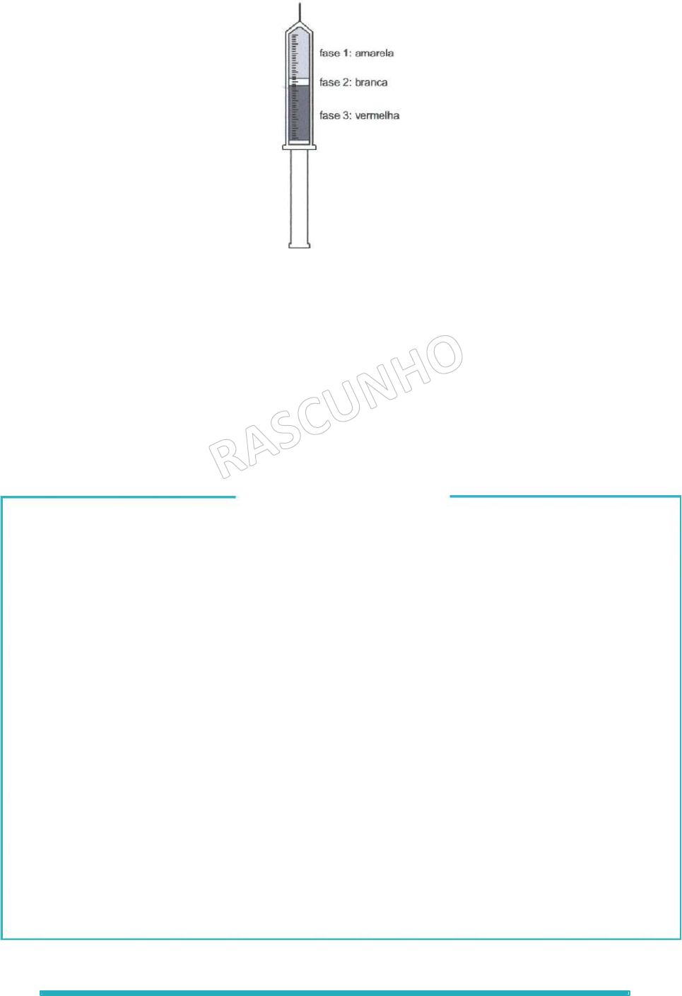 60 52. (Unesp) Uma seringa descartável, contendo 10 mL de sangue humano recém-colhido com anticoagulante, foi mantida na posição vertical, com a agulha voltada para cima. Passadas várias horas, o conteúdo da seringa sedimentou e fracionou-se em três fases distintas, representadas na figura. Comprimindo-se o êmbolo da seringa, foram descartadas as fases 1 e 2. O conteúdo da fase 3 foi misturado a água destilada, transferido para um tubo e submetido à centrifugação. a) Que elementos do tecido sanguíneo seriam encontrados nas fases 1, 2 e 3? b) Após centrifugação da fase 3, que elementos celulares seriam encontrados no precipitado? Justifique. Resolução e Respostas Definitivas