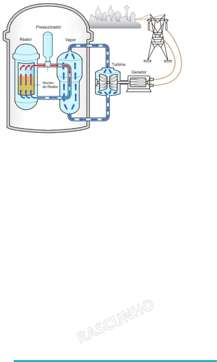 120 Os dois isótopos mais abundantes de urânio possuem massas atômicas 235 e 238, com abundâncias naturais de 0,72% e 99,27%, respectivamente. O isótopo 235U é essencial para a operação de usinas nucleares. Um reator nuclear consome cerca de 27 toneladas (1 t = 1.000 kg) de urânio anualmente e produz a mesma quantidade de energia proveniente da queima de 2,5 milhões de toneladas de carvão mineral. Todavia, usinas nucleares produzem resíduos radioativos que demandam condições especiais de estocagem. Um dos subprodutos do processamento de combustível nuclear é o césio-137 (..0,3𝐶𝑠). Esse isótopo, com meia-vida de aproximadamente 30 anos, decai para formar o bário-137 (.10,3𝐵𝑎), que por sua vez decai com a emissão de um fóton. Com base nessas informações, forneça respostas concisas para as questões que seguem. a) Qual é a sequência das transformações de energia que ocorrem na usina nuclear? b) Qual é o tempo necessário para que uma determinada quantidade de césio-137 decaia para 1/16 (6,25%) de sua quantidade inicial? Justifique a sua resposta. c) Qual é o tipo de decaimento (alfa, beta ou gama) do césio-137 em sua transformação em bário-137? Justifique a sua resposta. d) Classifique a transformação 235𝑈 + 𝑛 �⎯� 0!!𝐵𝑎 + +)𝐾𝑟 + 2𝑛 como fusão ou fissão nuclear. Justifique a sua resposta. e) Explique, considerando partículas subatômicas, o que diferencia transformações nucleares de reações que envolvem ligações químicas. f) Calcule, considerando a abundância isotópica natural, a massa de 235U presente em 1,5 t de um minério que contém urânio em uma concentração total de 0,10%, em massa.