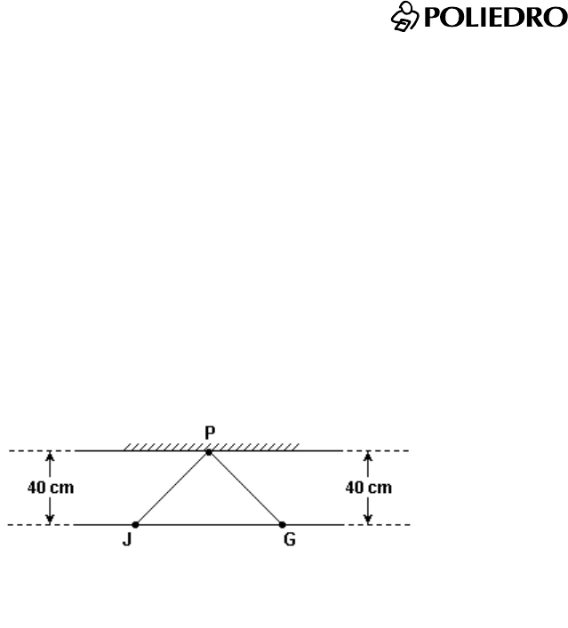 3 9. (Ufrj) Em um trecho em declive, de 20 km de extensão, de uma estrada federal, a velocidade máxima permitida para veículos pesados é de 70 km/h e para veículos leves é de 80 km/h. Suponha que um caminhão pesado e um automóvel iniciem o trecho em declive simultaneamente e que mantenham velocidades iguais às máximas estabelecidas. Calcule a distância entre os dois veículos no instante em que o automóvel completa o trecho em declive. 10. (Uerj) Um juiz, que está na posição J da figura a seguir, apita uma falta num instante t. Um goleiro, na posição G, leva um intervalo de tempo ∆t2=t1 - t0 para ouvir o som do apito, propagado ao longo do segmento JG. Decorrido um intervalo de tempo ∆t =t2 -t1, o goleiro ouve o eco dessa onda sonora, através de sua reflexão num ponto P da parede. Considerando que a velocidade do som no ar é 340 m/s e que a distância entre o goleiro e o juiz é de 60 m, determine o valor, em minutos, de: a) ∆t1; b) ∆t2. 4 Gabarito: Resposta da questão 1: [D] Cálculo da distância correspondente a um ano-luz, usando a simbologia aportuguesada (al): As distâncias dadas são: A diferença de distâncias é: Resposta da questão 2: [B] Dados: VA = 14 m/s; VB = 54 km/h = 15 m/s. Como a velocidade de A é menor que a de B, A não conseguirá ultrapassar B. Resposta da questão 3: [E] I. Errada. É desnecessário efetuar cálculos, pois 1 ano-luz é a distância que a luz percorre em 1 ano, no vácuo. Em todo caso, iremos usá-los nos itens seguintes: d = v t Þ d = (3´105 km/s) (2,5´106 anos´3´107 s/ano) Þ 2,25´1019 km. II. Correta. Veja os cálculos efetuados no item anterior. III. Correta. Resposta da questão 4: [A] Seja P o ponto de encontro desses dois automóveis, como indicado na figura. Do instante mostrado até o encontro, que ocorreu no ponto P, passaram-se 30 min ou 0,5 h, a distância percorrida pelo automóvel M é: DM = vM Dt = 60 (0,5) = 30 km. Nesse mesmo intervalo de tempo, o automóvel N percorreu, então: DN = 50 – 20 = 30 km. Assim: vN = Þ vN = 40 km/h. Resposta da questão 5: [A] Resolução Primeiro trecho V = DS/Dt v = (L/9)/t1 = L/(9t1) onde L é o comprimento total do trajeto Então t1 = L/(9v) Segundo trecho V = DS/Dt 2v = (8L/9)/t2 v = 4L/(9t2) t2 = 4L/(9v) Para todo o trecho Vmédia = L/(t1+t2) = L/[5L/(9v)] = 9v/5 Resposta da questão 6: [D] Resposta da questão 7: [A] Resposta da questão 8: [D] Resposta da questão 9: 2,5 km Resposta da questão 10: a) ∆t1 ≈ 0,18s b) ∆t2 ≈ 0,16 × 104s 8 7 15 12m1al c t 3 10 3 10 s 1al 9 10 m 1al 9 10 km s Δ= = ´ ´ ´ Þ = ´ Þ = ´ 9 9 1 2D 4 10 al; D 10,5 10 al.= ´ = ´ ( ) 9 92 1 9 12 22 D D D 10,5 4 10 D 6,5 10 al D 6,5 10 9 10 D 5,9 10 km. Δ Δ Δ Δ = - = - Þ = ´ Þ = ´ ´ ´ Þ @ ´ ND 20 t 0,5 = D ® ® ®