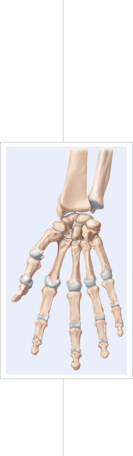 Como se mencionó en el Capítulo 7, las dos divisiones principales del sis- tema esquelético son el esqueleto axial y el apendicular. Como usted apren- dió en ese capítulo, la función general del esqueleto axial es la protección de los órganos internos; la función fundamental del esqueleto apendicular, el foco de atención de este capítulo, es el movimiento. El esqueleto apen- dicular incluye los huesos que forman los miembros superiores e inferio- res, así como los huesos de las dos cinturas que fijan los miembros al esqueleto axial. Los huesos del esqueleto apendicular están conectados entre sí y con los músculos esqueléticos, lo que le permite realizar activi- dades como caminar, escribir, utilizar una computadora, bailar, nadar y tocar un instrumento musical. 255 SISTEMA ESQUELÉTICO: ESQUELETO APENDICULAR8 EL ESQUELETO APENDICULAR Y LA HOMEOSTASIS Los huesos del esqueleto apendicular con- tribuyen a la homeostasis al actuar como puntos de fijación y palanca para los músculos, lo que ayuda al movimiento corporal; al proveer sostén y protección a órganos internos, como los órganos reproductores, y al almacenar y liberar calcio. ¿Alguna vez pensó cuál es la causa de la rodilla del corredor?? 8.1 CINTURA ESCAPULAR (HOMBRO) O B J E T I V O • Identificar los huesos de la cintura escapular (hombro), sus funciones y sus principales reparos anatómicos. El cuerpo humano tiene dos cinturas escapulares que fijan los hue- sos de los miembros superiores al esqueleto axial (Figura 8.1). Cada una de las cinturas escapulares está formada por una clavícula y una escápula. La clavícula es el hueso anterior y se articula con el manu- brio del esternón en la articulación esternoclavicular. La escápula se articula con la clavícula en la articulación acromioclavicular y con el húmero en la articulación glenohumeral (hombro). Las cinturas esca- pulares no se articulan con la columna vertebral y son mantenidas en su posición y estabilizadas por un grupo de músculos grandes que se extienden desde la columna vertebral y las costillas hasta la escápula. Los huesos de la cintura escapular se analizan en los Paneles 8.A y 8.B. P R E G U N T A S D E R E V I S I Ó N 1. ¿Cuál es la función de la cintura escapular? 256 CAPÍTULO 8 • SISTEMA ESQUELÉTICO: ESQUELETO APENDICULAR La clavícula es el hueso anterior de la cintura escapular, y la escápula es el hueso posterior. Cintura escapular: Clavícula Escápula CLAVÍCULA Articulación esternoclavicular Esternón Articulación acromioclavicular Articulación glenohumeral ESCÁPULA Costilla Húmero CLAVÍCULA ESCÁPULA Costilla Húmero Vértebra (a) Vista anterior de la cintura escapular (b) Vista posterior de la cintura escapular Figura 8.1 Cintura escapular (hombro) derecha. ¿Cuál es la función de la cintura escapular? PANEL 8.A 257 O B J E T I V O • Describir la localización y las características superficiales de la clavícula. Cada clavícula (llave), en forma de S y fina, se localiza horizontal- mente en la región anterior del tórax, por encima de la primera costi- lla (Figura 8.2). Es subcutánea (bajo la piel) y fácil de palpar en toda su longitud. El hueso tiene forma de S porque su zona medial es con- vexa por delante (se curva hacia usted cuando se la observa en posi- ción anatómica), y la mitad lateral es cóncava por delante (la curva se aleja de usted). Es más rugosa y más curva en los hombres. El extremo medial, denominado extremo esternal, es redondeado y se articula con el manubrio del esternón para formar la articulación esternoclavicular. El extremo lateral ancho y plano, extremo acro- mial, se articula con el acromion de la escápula para formar la articu- lación acromioclavicular (véase la Figura 8.1). El tubérculo conoideo en la superficie inferior del extremo lateral del hueso es un punto de inserción para el ligamento conoide, que fija la clavícula a la escápu- la. Como su nombre lo indica, la impresión del ligamento costoclavi- cular en la superficie inferior del extremo esternal es un punto de inserción para el ligamento costoclavicular (Figura 8.2b), que une la clavícula y la primera costilla. P R E G U N T A S D E R E V I S I Ó N ¿Qué articulaciones forma la clavícula con otros huesos? ¿Qué regiones de la clavícula participan en cada articulación? Figura 8.2 Clavícula derecha. ¿Qué parte de la clavícula es su punto más débil? Cintura escapular – Clavícula (Figura 8.2) La clavícula se articula medialmente con el manubrio del esternón y, lateralmente, con el acromion de la escápula. Vista Clavícula Clavícula Vista LATERAL Extremo acromial (a) Vista superior Tubérculo conoideo (b) Vista inferior MEDIAL Extremo esternal Impresión del ligamento costoclavicular POSTERIOR ANTERIOR ANTERIOR POSTERIOR CORRELACIÓN CLÍNICA | Fractura de clavícula La clavícula transmite fuerza mecánica del miembro superior al tronco. Si la fuerza transmitida a la clavícula es excesiva, como al caer sobre el brazo extendido, se puede producir una fractura de clavícula. Ésta también suele deberse a un golpe en la región superior de la pared anterior del tórax, por ejemplo, como consecuencia del impacto en un accidente automovilístico. La clavícula es uno de los huesos del cuerpo que se fractura más a menudo. Como la unión de las dos curvas de la clavícula es el punto más débil, la región medioclavicular es la localiza- ción más frecuente de las fracturas. Aun en ausencia de fractura, la compresión de la clavícula como resultado de accidentes automovilísti- cos –con el uso de cinturones de seguridad en bandolera– suele provocar daño del plexo braquial (la red de nervios que ingresa en el miembro superior), que transcurre entre la clavícula y la segunda costilla. Por lo general, la clavícula fracturada se trata con un vendaje en 8 para impe- dir que el brazo se mueva hacia afuera. PANEL 8.A PANEL 8.B 258 PANEL 8.B Cintura escapular – Escápula (Fi