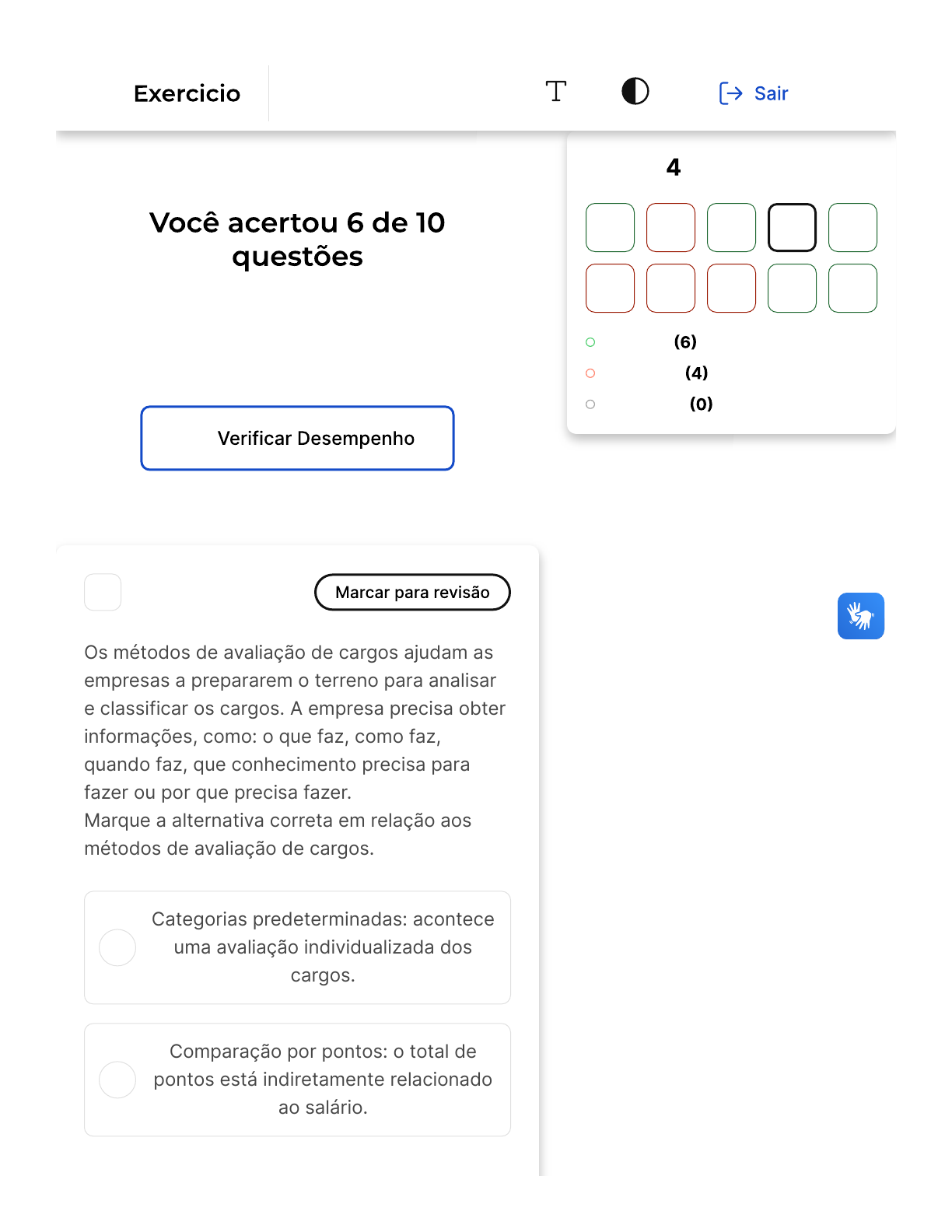 Verifique o seu desempenho e continue treinando! Você pode refazer o exercício quantas vezes quiser. A B 1 Os métodos de avaliação de cargos ajudam as empresas a prepararem o terreno para analisar e classificar os cargos. A empresa precisa obter informações, como: o que faz, como faz, quando faz, que conhecimento precisa para fazer ou por que precisa fazer. Marque a alternativa correta em relação aos métodos de avaliação de cargos. Categorias predeterminadas: acontece uma avaliação individualizada dos cargos. Comparação por pontos: o total de pontos está indiretamente relacionado ao salário. Questão de 10 Corretas Incorretas Em branco 1 2 3 4 5 6 7 8 9 10 Manutenção De Pessoas Firefox https://estacio.saladeavaliacoes.com.br/exercicio/66044b81139d33d91... 1 of 18 27/03/2024, 13:43 C D E Escalonamento: é o método mais simples. Comparação por fatores: sua teoria foi estabelecida por Merril R. Lott em 1926. Categorias usuais: fundamenta-se a partir da associação de cargos. Parabéns, você selecionou a alternativa correta. Confira o gabarito comentado! Firefox https://estacio.saladeavaliacoes.com.br/exercicio/66044b81139d33d91... 2 of 18 27/03/2024, 13:43 A O método de escalonamento é considerado o mais simples dentre os métodos de avaliação de cargos. Este método consiste em determinar um critério principal de comparação, como a complexidade, o nível de responsabilidade e a dificuldade de repor um profissional. Após a definição do critério, atribui-se uma nota para o mesmo, definindo o cargo com a maior e a menor nota. Em seguida, todos os demais cargos são elencados entre o limite máximo (cargo com maior nota) e mínimo (o com menor nota). Cada cargo será comparado com os demais a partir do critério escolhido. Este método é caracterizado pela sua simplicidade, pois não considera uma análise ou aspectos mais profundos dos cargos. 2 Sobre a política ou programa de qualidade de vida no trabalho �QVT� de uma empresa, marque a opção verdadeira. Como ciclos de gestão diferentes têm ideias diferentes, o documento deve adaptar-se de acordo com as mudanças no comando da empresa. Firefox https://estacio.saladeavaliacoes.com.br/exercicio/66044b81139d33d91... 3 of 18 27/03/2024, 13:43 B C D E Uma vez pronto, o documento precisa ser divulgado a um público específico definido pela empresa, geralmente uma equipe multifuncional que ajudou no projeto. Palestras, grupos de discussão e propagandas que mostrem os benefícios dos conceitos têm de ser direcionados aos líderes, uma vez que eles implementarão o programa no dia a dia com seus seguidores. Tal documento servirá de guia para a empresa fazer o passo a passo de implementação do programa de QVT, já que ele contém conceitos, princípios e diretrizes. O documento deve apresentar os conceitos, princípios, diretrizes e valores que guiam as práticas da gestão da empresa por meio do tripé indivíduo, trabalho e organização. Opa! A alternativa correta é a letra E. Confira o gabarito comentado! A alternativa correta é a E. O documento de política ou programa de qualidade de vida no trabalho �QVT� deve, de fato, apresentar os conceitos, princípios, diretrizes e valores que orientam as práticas de gestão da Firefox https://estacio.saladeavaliacoes.com.br/exercicio/66044b81139d33d91... 4 of 18 27/03/2024, 13:43 A B C D E empresa. Isso é feito por meio do tripé indivíduo, trabalho e organização. Este tripé representa a interação entre o indivíduo (seus valores, expectativas e necessidades), o trabalho (suas demandas e condições) e a organização (sua cultura, estrutura e políticas). Portanto, o documento de QVT deve refletir essa interação e orientar a implementação de práticas que promovam a qualidade de vida no trabalho. 3 Se uma empresa decide custear a assinatura mensal de uma plataforma de streaming (em que é possível ver vídeos, filmes, séries etc.), como esse benefício pode ser classificado? Objetivo e monetário. Exigência legal e supletiva. Natureza e assistencial. Natureza e espontânea. Objetivo e recreativo. Firefox https://estacio.saladeavaliacoes.com.br/exercicio/66044b81139d33d91... 5 of 18 27/03/2024, 13:43 Parabéns, você selecionou a alternativa correta. Confira o gabarito comentado! O benefício de uma assinatura mensal de uma plataforma de streaming, custeada pela empresa, pode ser classificado como "Objetivo e recreativo". Isso porque é um benefício direto e tangível (objetivo) que é oferecido com o intuito de proporcionar entretenimento e lazer (recreativo) para o funcionário. Portanto, a alternativa correta é a letra E. 4 As reivindicações trabalhistas também são conhecidas como conflitos trabalhistas coletivos ou individualizados. Quando envolvem empresas e sindicatos, esses conflitos são resolvidos por meio de negociações coletivas formalizadas por um documento específico. Indique a opção correta sobre as formas de se fazer tal documentação. Firefox https://estacio.saladeavaliacoes.com.br/exercicio/66044b81139d33d91... 6 of 18 27/03/2024, 13:43 A B C O acordo coletivo de trabalho acontece quando três ou mais empresas firmam um acordo específico com seu sindicato; dissídio coletivo, quando os sindicatos dos trabalhadores e das empresas acordam as condições mínimas para todos os profissionais daquela categoria. A convenção coletiva de trabalho acontece quando os sindicatos das empresas e dos trabalhadores não chegam a um acordo; acordo coletivo de trabalho, quando ambos acordam as condições para todos os profissionais daquela categoria. O dissídio coletivo ocorre quando as partes (os sindicatos das empresas e dos trabalhadores) não chegam a um acordo; então, as condições de trabalho são decididas por um juiz. Já a convenção coletiva de trabalho se dá quando as empresas convencionam com seus sindicatos as condições máximas de trabalho (valor teto de benefícios, por exemplo). Firefox https://e