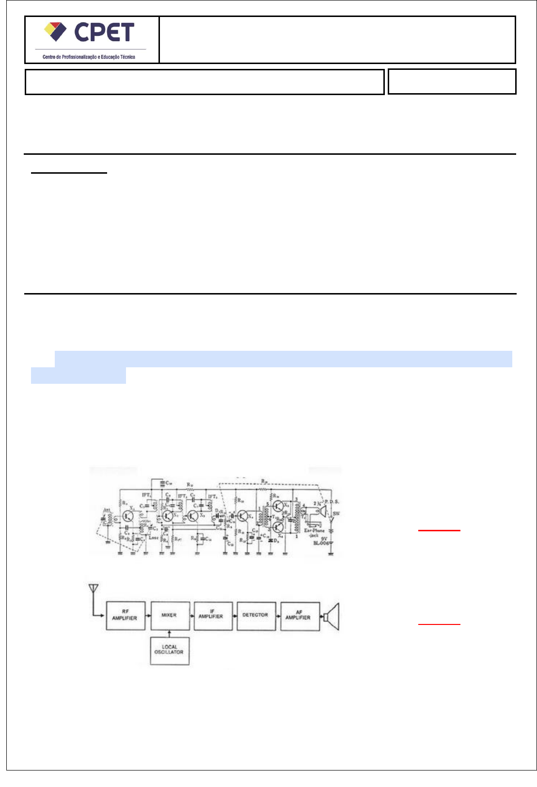 Atividade Prática Final INSTRUÇÕES: ❖ Esta Atividade contém questões totalizando 10 (dez) pontos; ❖ Você deve preencher dos dados no Cabeçalho para sua identificação: o Nome /CPF/Data ❖ As respostas devem ser digitadas abaixo de cada pergunta; ❖ Ao terminar salve o arquivo no formato .PDF ou .DOCX; ❖ Envio o arquivo pelo sistema no local indicado; ❖ Em caso de dúvidas consulte o seu Tutor. ❖ ATENÇÃO O NÃO PREENCHIMENTO DOS DADOS ACARRETARÁ NA ANULAÇÃO DA ATIVIDADE. Aluno(a): Ricardo Peralta Souza CPF: 021522410-88 Data:26/03/2024 Leitura e Interpretação de Diagramas Eletrônicos – RD (2024) Atividade Prática Questão 1: A leitura de diagramas em Eletrotécnica são divididos em 4 categorias, quais são ? Os diagramas em eletrotécnica são divididos em quatro categori- as: diagrama unifilar, diagrama multifilar, diagrama funcional e diagrama de interligação Questão 2: Defina o circuito da figura 1 em simples ou completo e informe o motivo, informe o nome do diagrama da figura 2 . Figura 1 Figura 2 Explicação: Circuito 1 esquema completo ,diagrama Multifilar Circuito 2 esquema Simples, diagrama em Blocos.